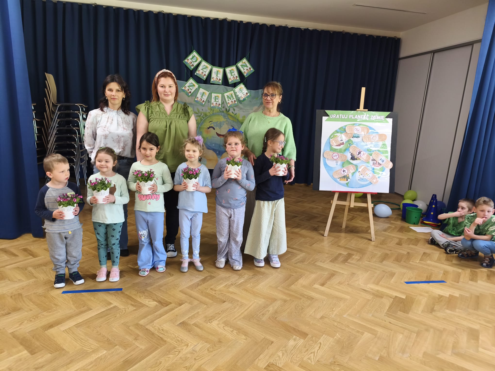 22 kwietnia, z okazji Międzynarodowego Dnia Ziemi, wszystkie grupy spotkały się na sali gimnastycznej, aby wspólnie obchodzić to wyjątkowe święto. W tym dniu dominowały kolory Ziemi: zielony i niebieski, symbolizujące naszą planetę i otaczającą nas przyrodę.