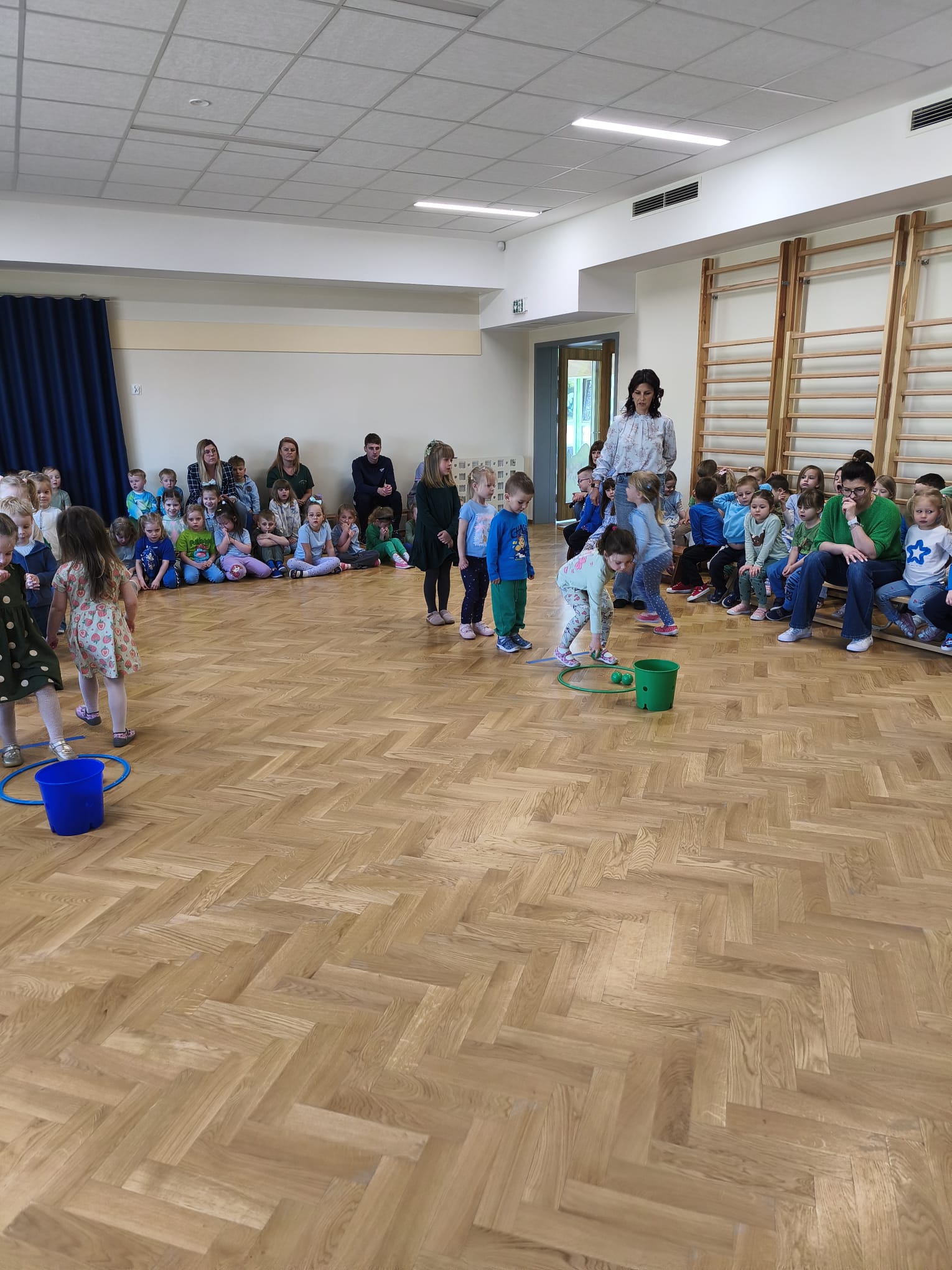 Każda grupa przedszkolna wzięła udział w sportowych konkurencjach, gorąco dopingując swoich zawodników. Mali sportowcy doskonale poradzili sobie z wyzwaniami, a cała zabawa przebiegała w atmosferze radości i entuzjazmu.