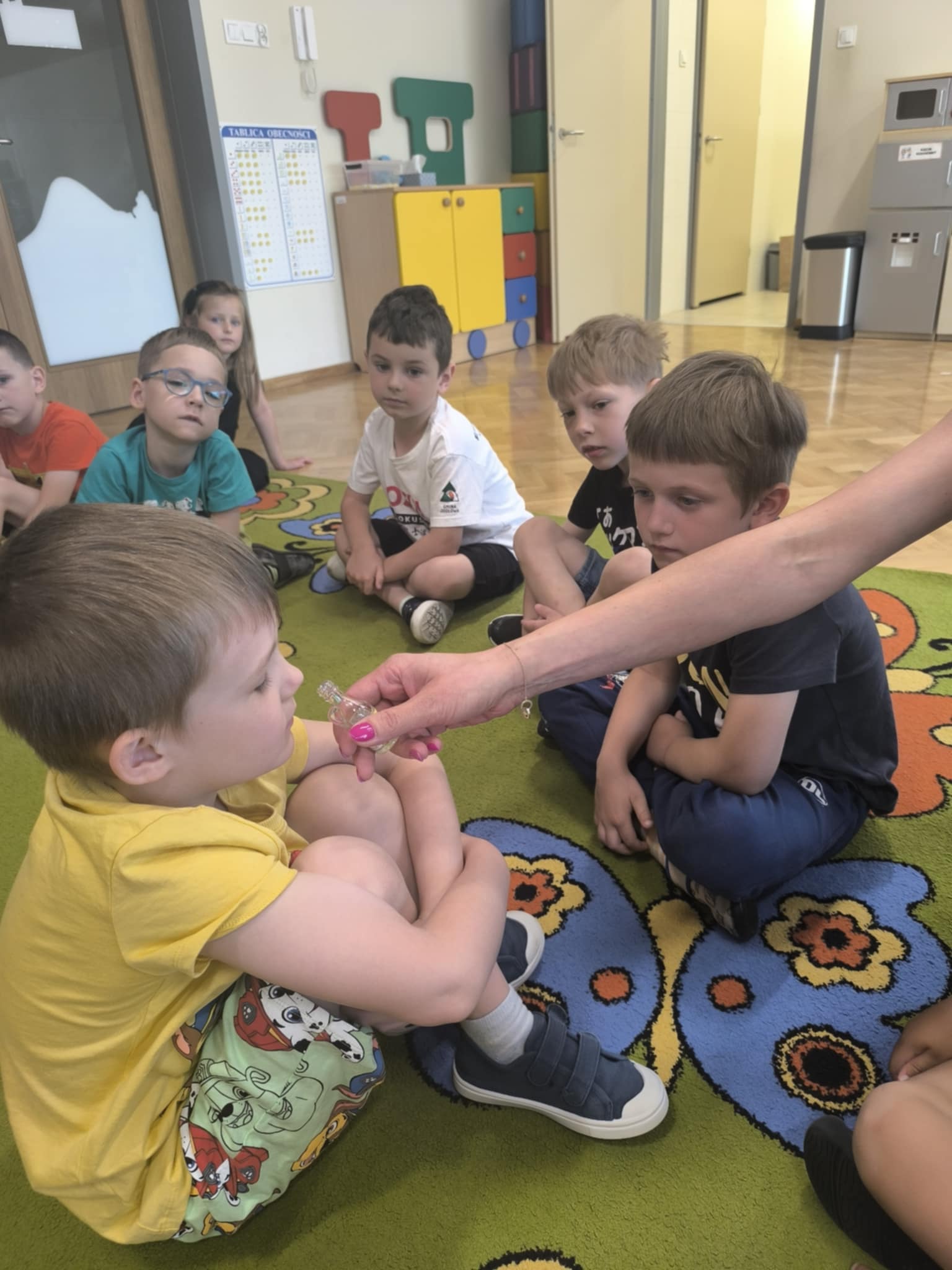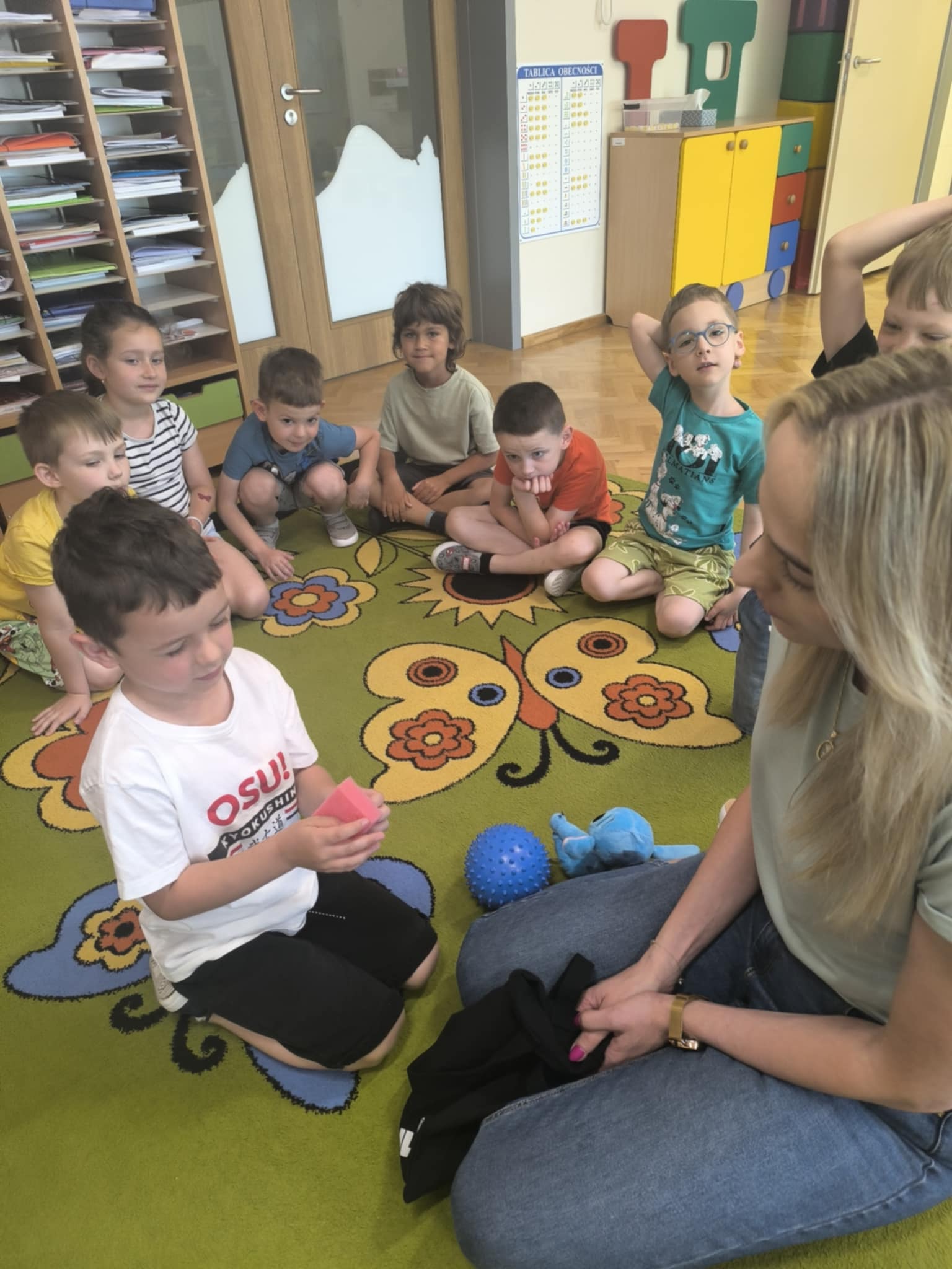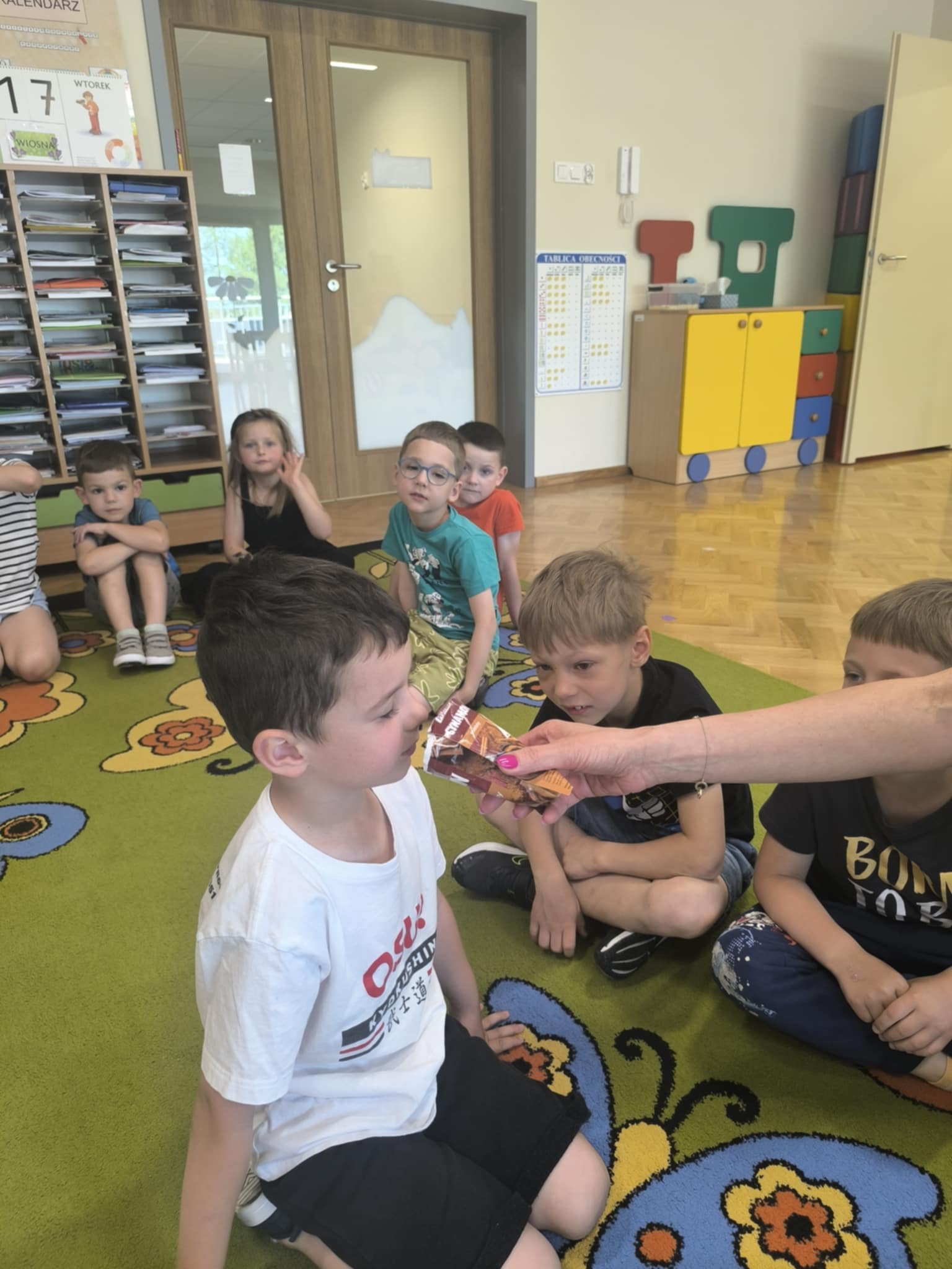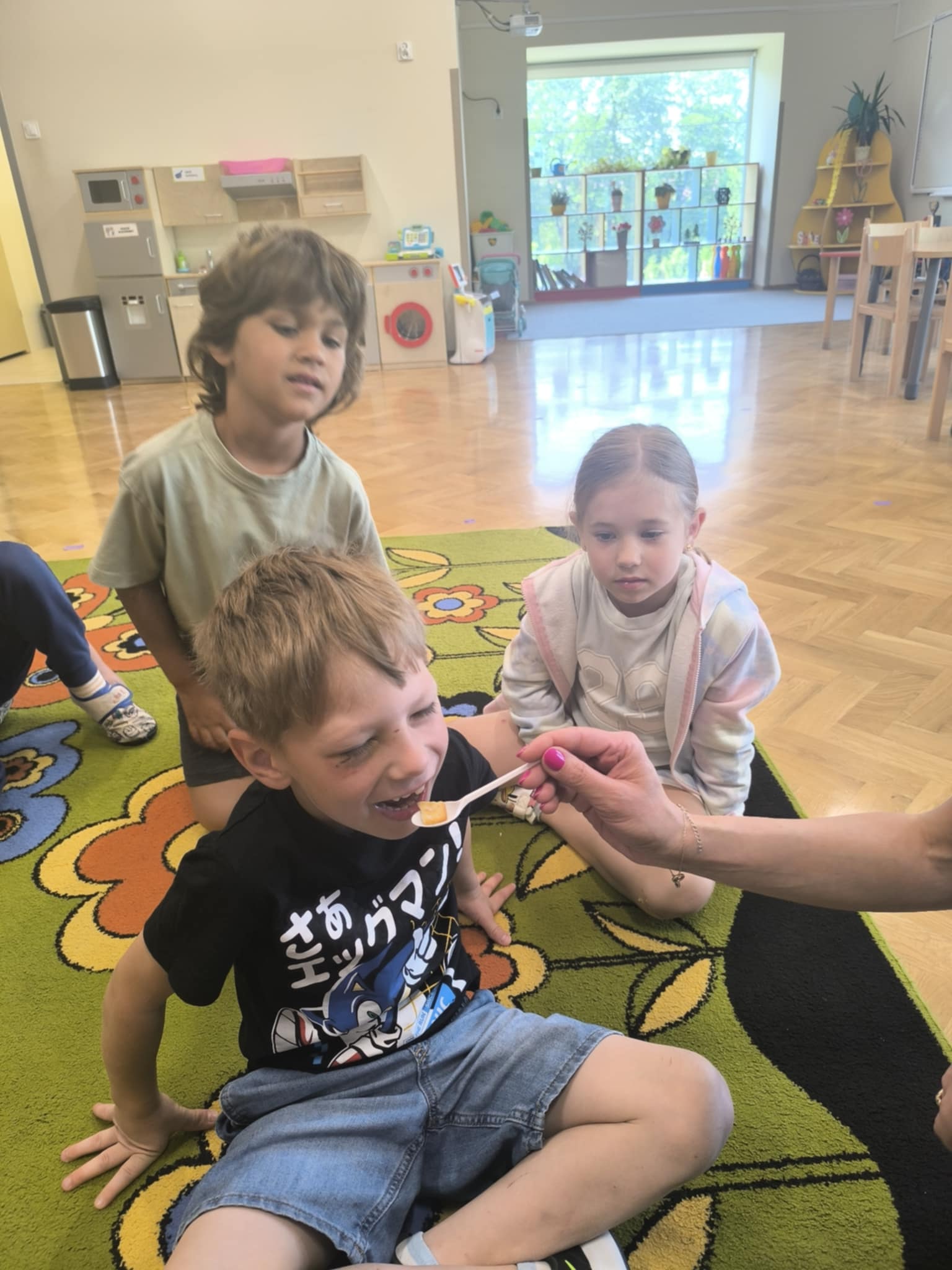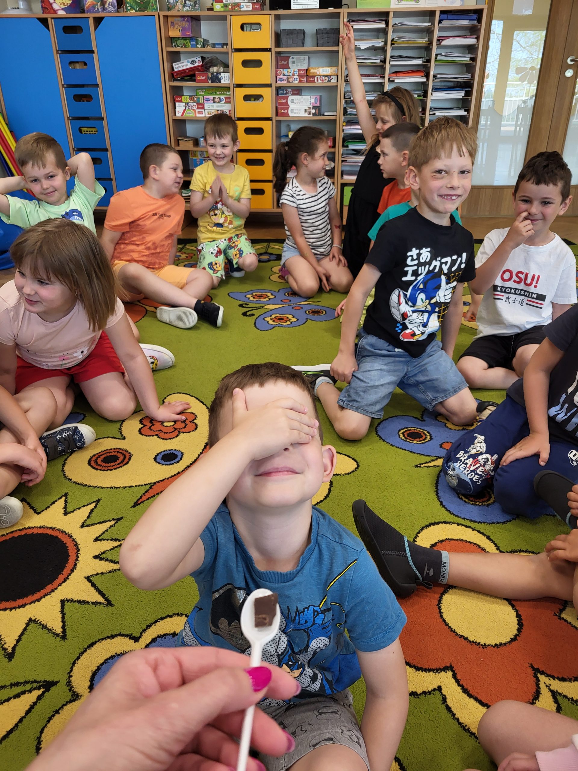 W dniu 18 czerwca w naszej grupie odbyły się zajęcia dotyczące zmysłów, które miały na celu rozwijanie świadomości i zrozumienie funkcjonowania poszczególnych zmysłów (wzrok, słuch, dotyk, smak, węch). Dzięki nim dzieci dowiedziały się, jak korzystać z tych zmysłów w codziennym życiu, jakie mają znaczenie dla postrzegania świata oraz jak je rozróżniać i interpretować. Przedszkolaki brały udział w różnorodnych aktywnościach rozwijających świadomość sensoryczną: za pomocą dotyku odgadywały jakie przedmioty zostały ukryte w worku, wsłuchiwały się w odgłosy zwierząt i je rozpoznawały, próbowały różnych produktów i określały jaki mają smak (słodki, słony, gorzki, ostry), wskazywały jakiego przedmiotu brakuje oraz odgadywały zapachy. Zajęcia te dostarczyły wiele radości, wspierały rozwój percepcji, koncentracji i umiejętności komunikacyjnych. To był dzień pełen kolorów, smaków, zapachów i uśmiechów.