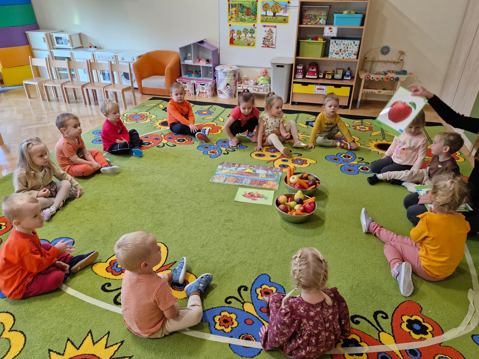 W ostatnim tygodniu września w grupie Jeżyków rozmawialiśmy o tym, jak ważne są owoce i warzywa w naszej codziennej diecie. Dowiedzieliśmy się, że są nie tylko pyszne, ale przede wszystkim pełne witamin, które wzmacniają nasze zdrowie i odporność. Korzystając
