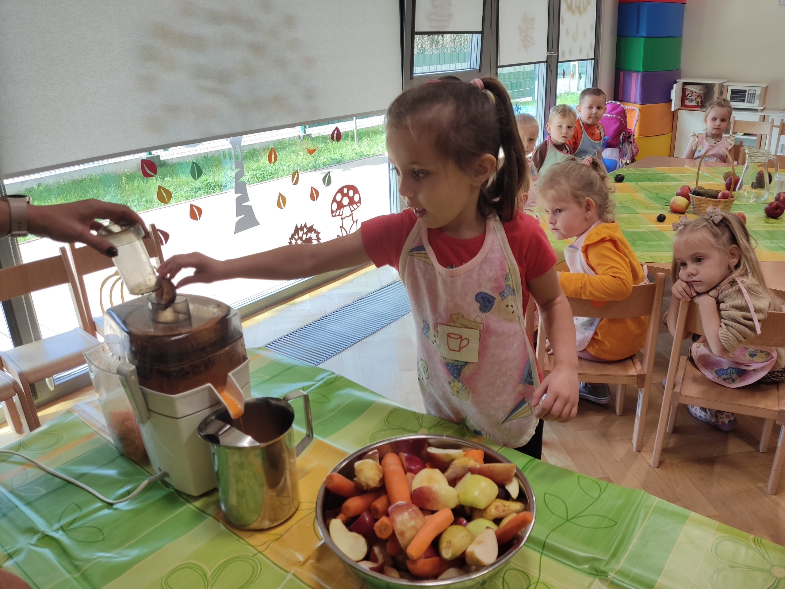 z zasadami higieny oraz bezpieczeństwa podczas korzystania z sokowirówki. A gdy już był gotowy – wszyscy z apetytem wypili swoje porcje,