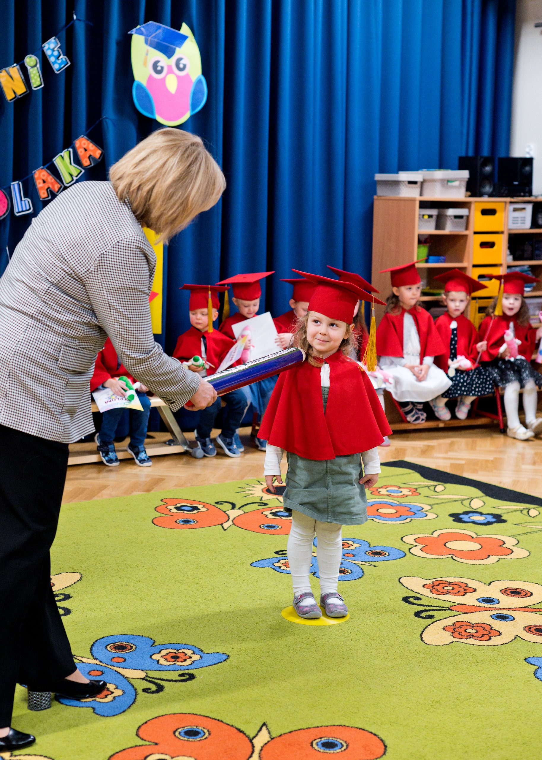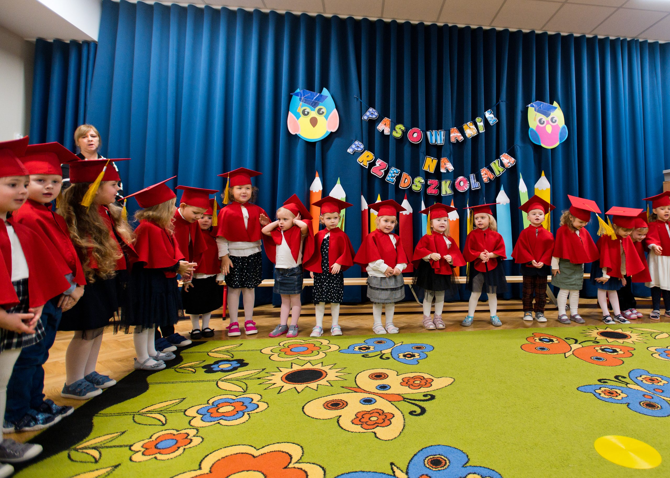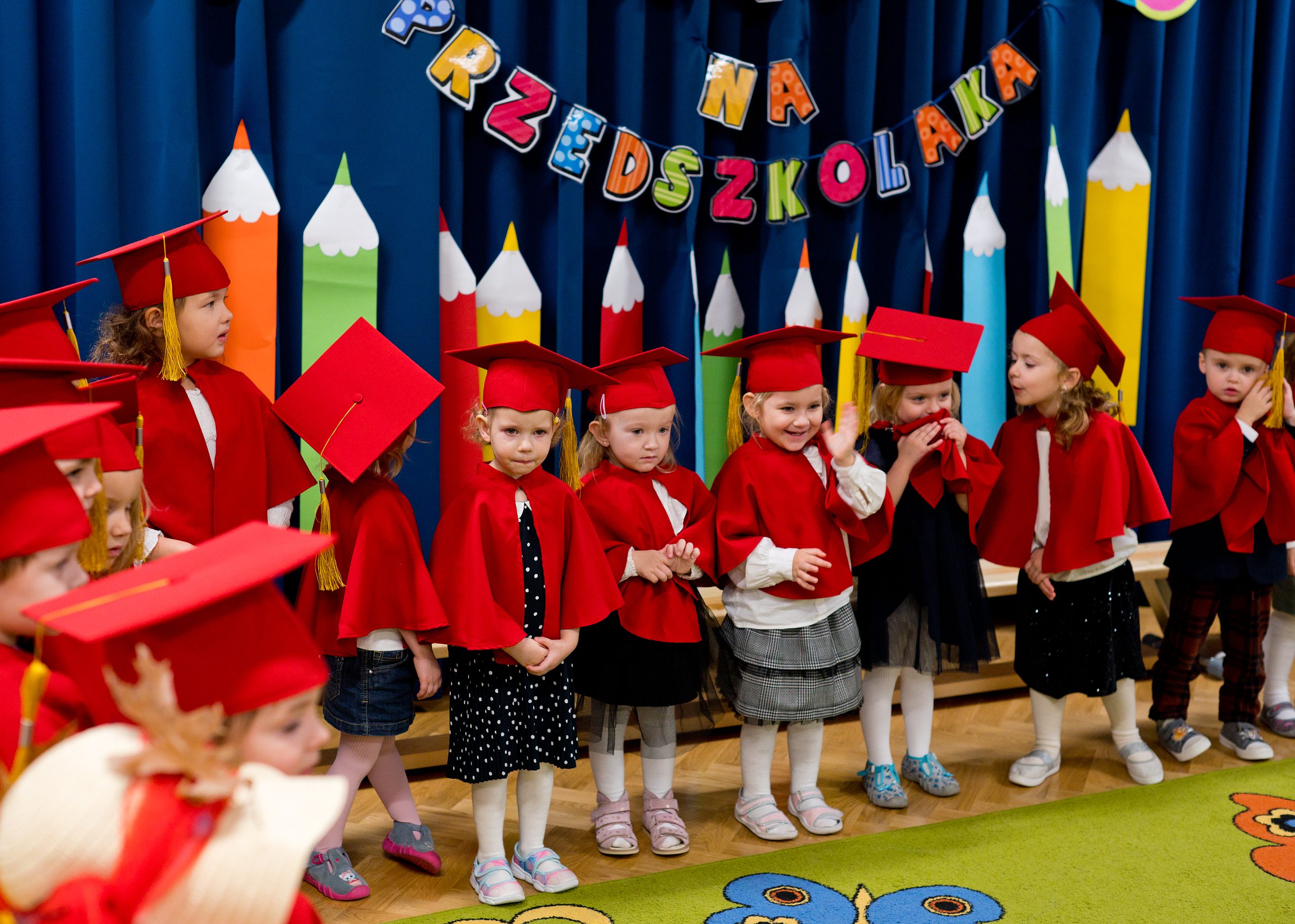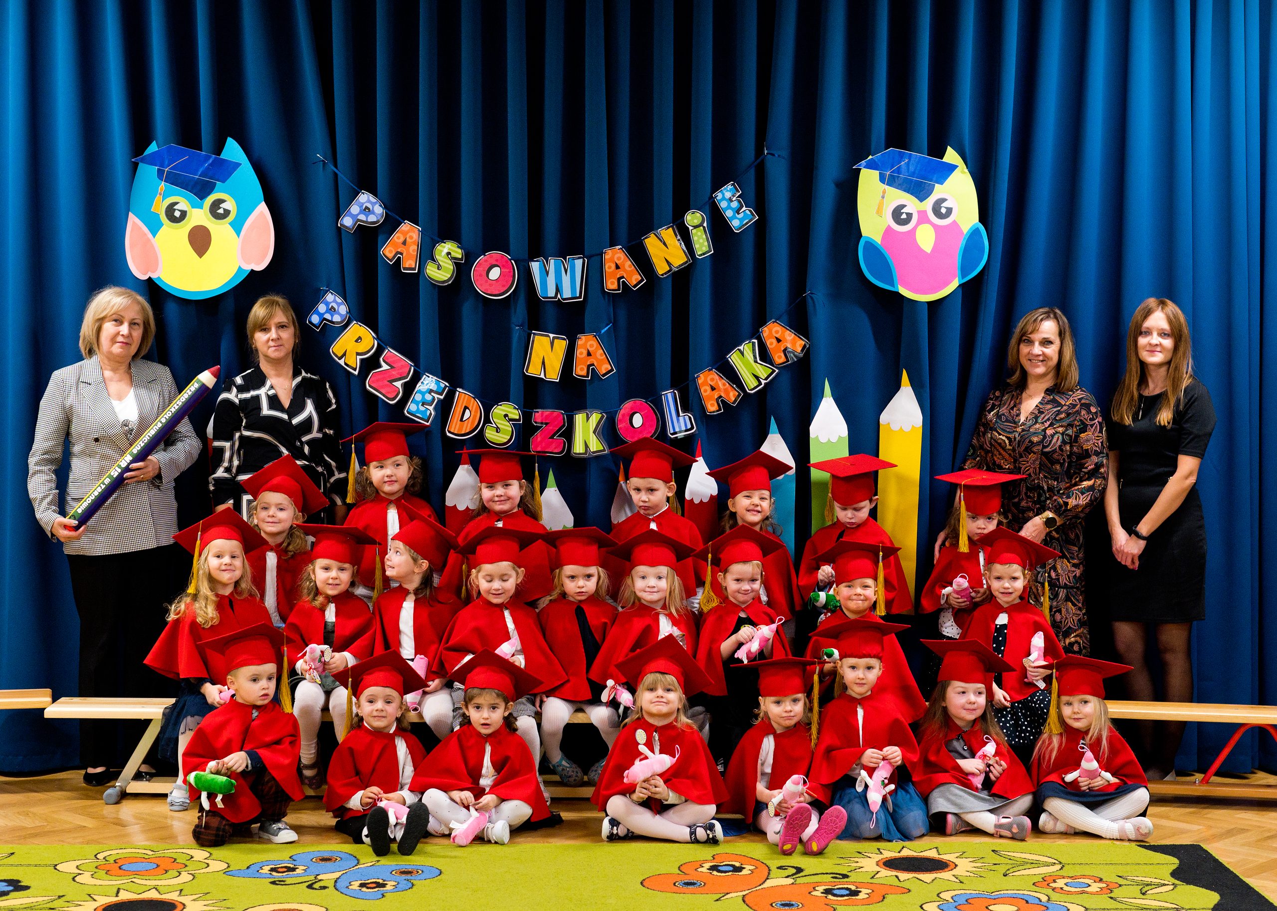 15 listopada w naszym przedszkolu odbyło się Uroczyste Pasowanie na Przedszkolaka. To pierwsza tak ważna uroczystość dla ,,Misiów”. O tego dnia stają się oficjalnie przedszkolakami. Uroczystość rozpoczęła się od powitania gości i przedstawienia krótkiej części artystycznej, w której dzieci zaprezentowały swoje umiejętności – dając tym samym dowód, jak dużo już potrafią. Misie złożyły również przysięgę – obiecały: zgodnie bawić się w przedszkolu, przychodzić każdego dnia z uśmiechem, słuchać pań i pomagać kolegom, a także być dzielnymi przedszkolakami. Następnie Pani Dyrektor za pomocą „magicznego ołówka” dokonała uroczystego „aktu pasowania”. Na pamiątkę tego ważnego wydarzenia każdy przedszkolak otrzymał dyplom i niespodziankę. Dla przedszkolaków było to wielkie przeżycie, a dla Rodziców powód do dumy i zadowolenia ze swoich pociech. To był niezapomniany dzień, pełen uśmiechu, zabawy i wzruszeń. Serdecznie gratulujemy Rodzicom i dziękujemy za przybycie.