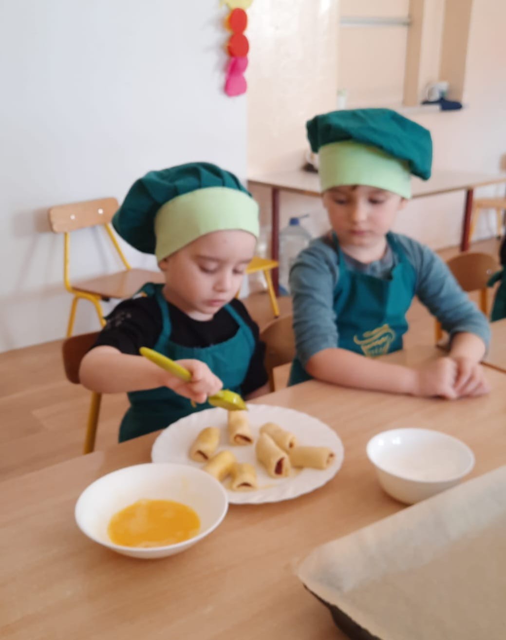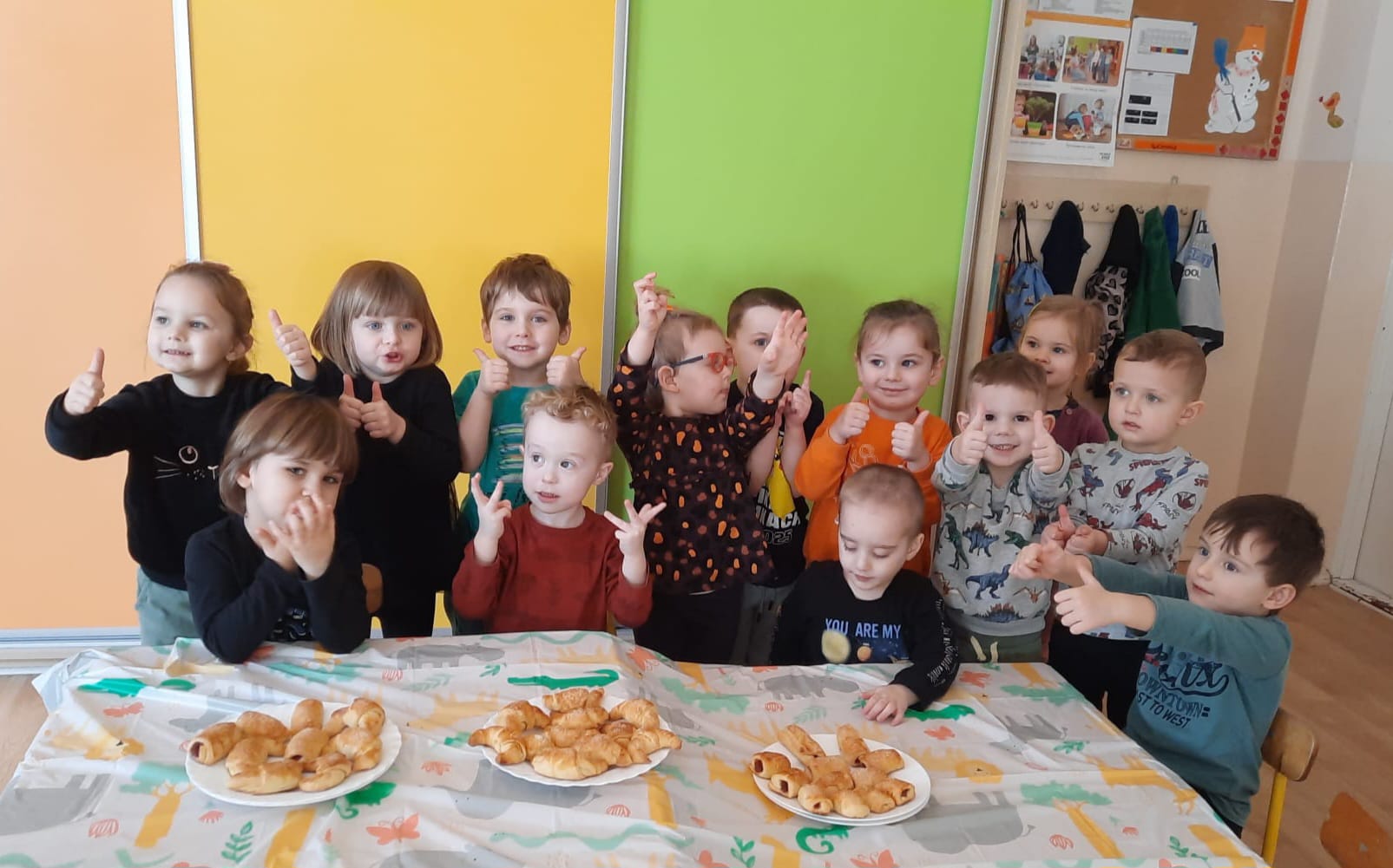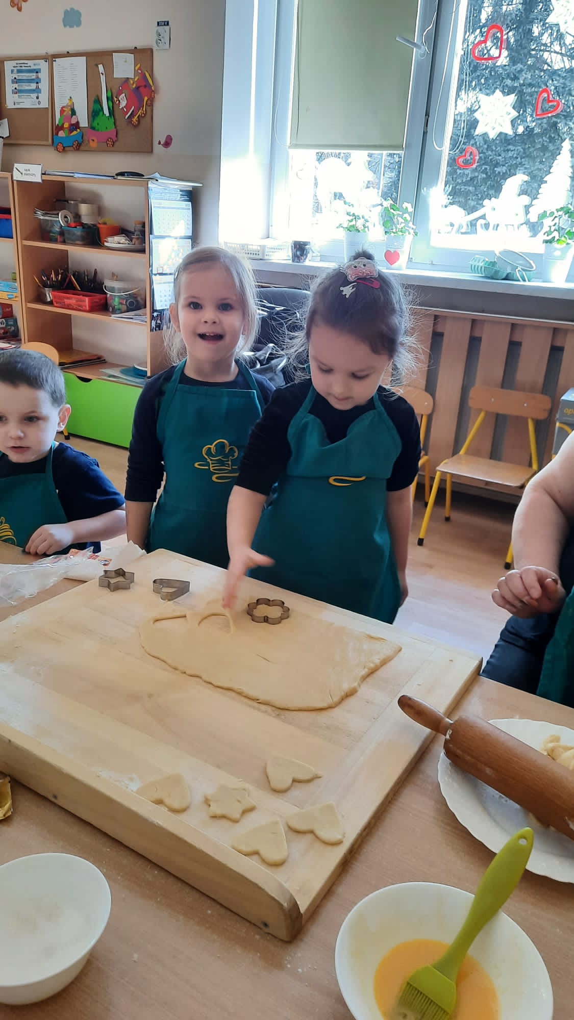 Kilka dni temu najmłodsze przedszkolaki postanowiły zostać cukiernikami i upiec ciasteczka. Przygotowania rozpoczęły się od poznania składników, które są potrzebne do zrobienia ciasta. Każdy przedszkolak miał szanse spróbować swoich sił kulinarnych, dzieci z radością pomagały paniom w przygotowaniu ciasteczek, dodając składniki i nadając im różne kształty, by w efekcie powstały upragnione ciastka. Wspólne pieczenie było przyjemna zabawą, a jeszcze przyjemniejsza była degustacja tego, co sami upiekliśmy.