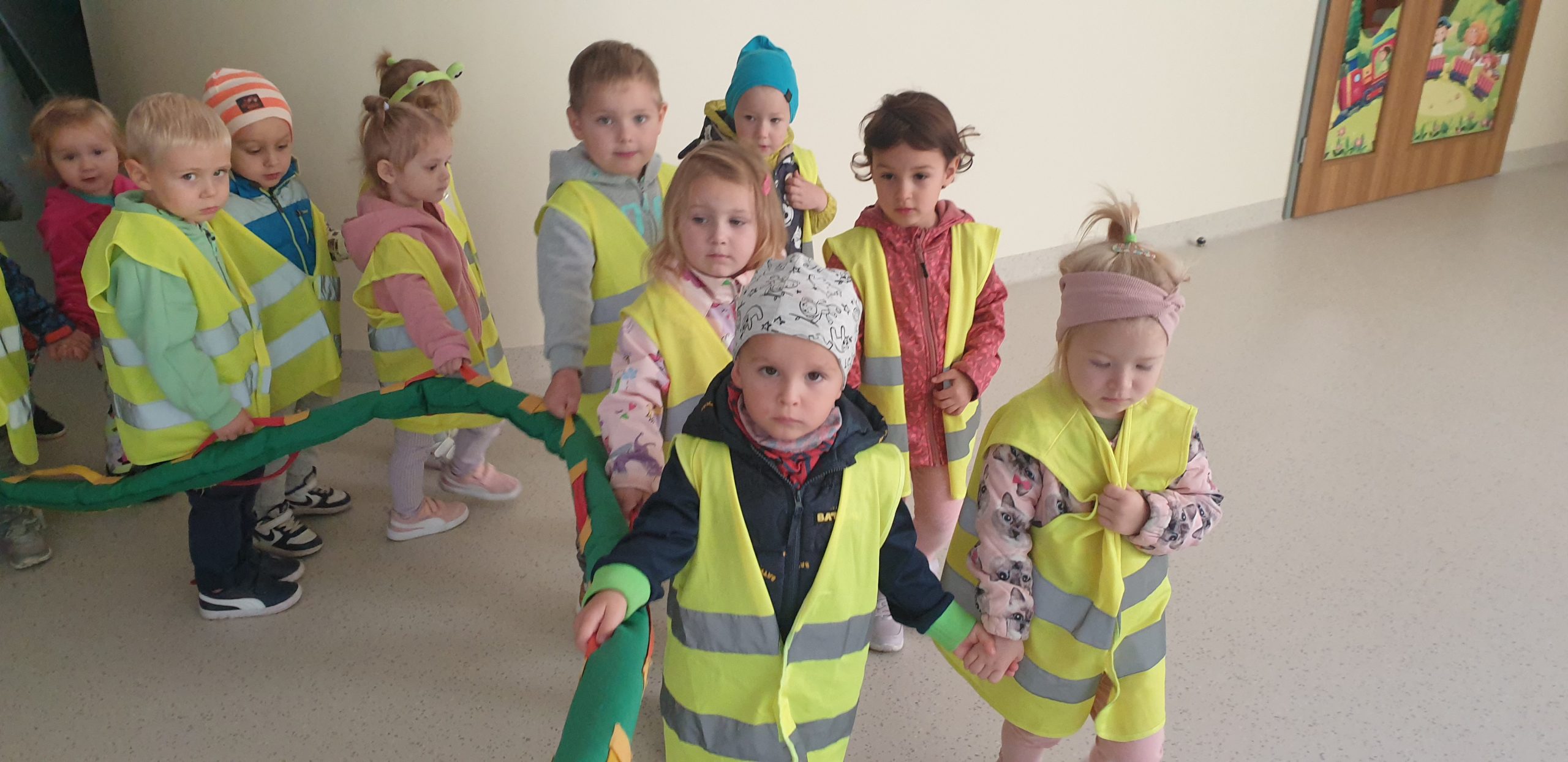 Nasze maluszki po wielu próbach spacerowania z wężem w parach na przedszkolnych korytarzach, były gotowe, aby wyjść na spacer w okolice przedszkola. Jesteśmy dumni z „Jeżyków”, żę tak dzielnie i przede wszystkim bezpiecznie spacerowały w promieniach jesiennego słoneczka 🙂