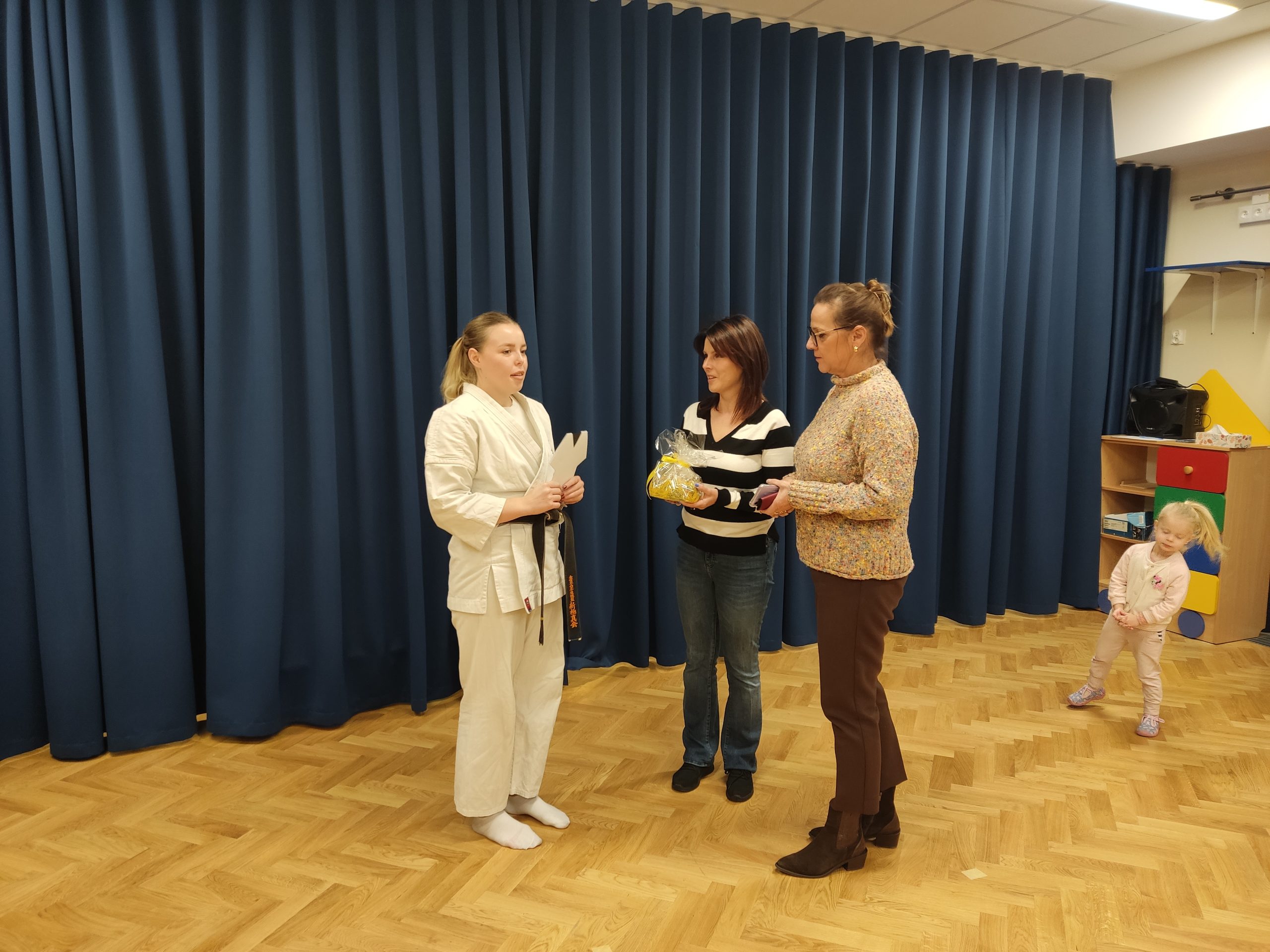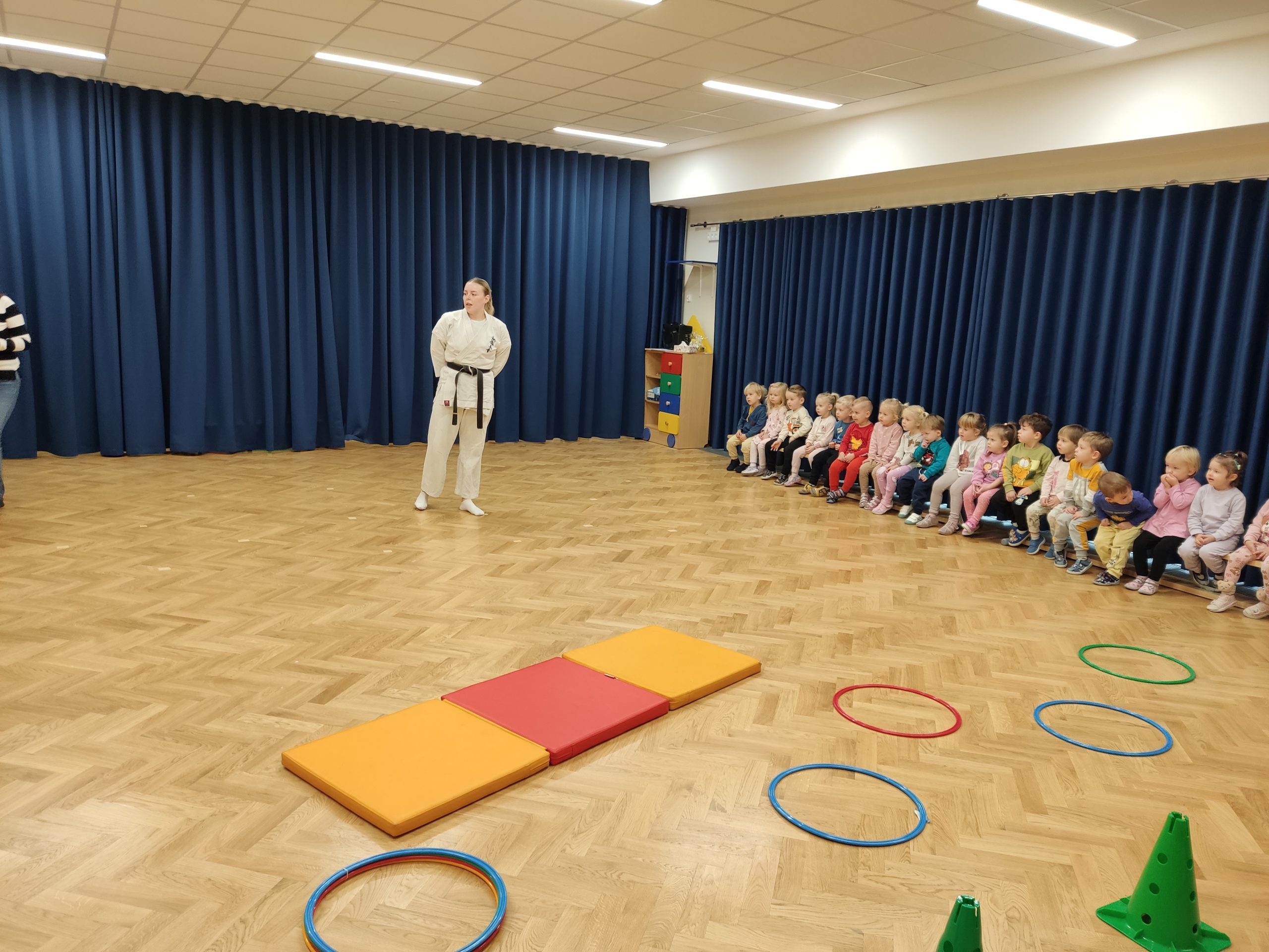 Dnia 15.11.2024 roku w przedszkolu odbył się pokaz karate w wykonaniu instruktorki sensei Darii Starzec 1 dan „Karate Kyokushin” z Tarnowskiego Klubu Sportowego. Od 2015 roku należy do ścisłej Kadry Narodowej, a do jej największych sukcesów można zaliczyć dwa brązowe medale zdobyte na Mistrzostwach Europy w Pradze (U-21) oraz Bytomiu (U-16).