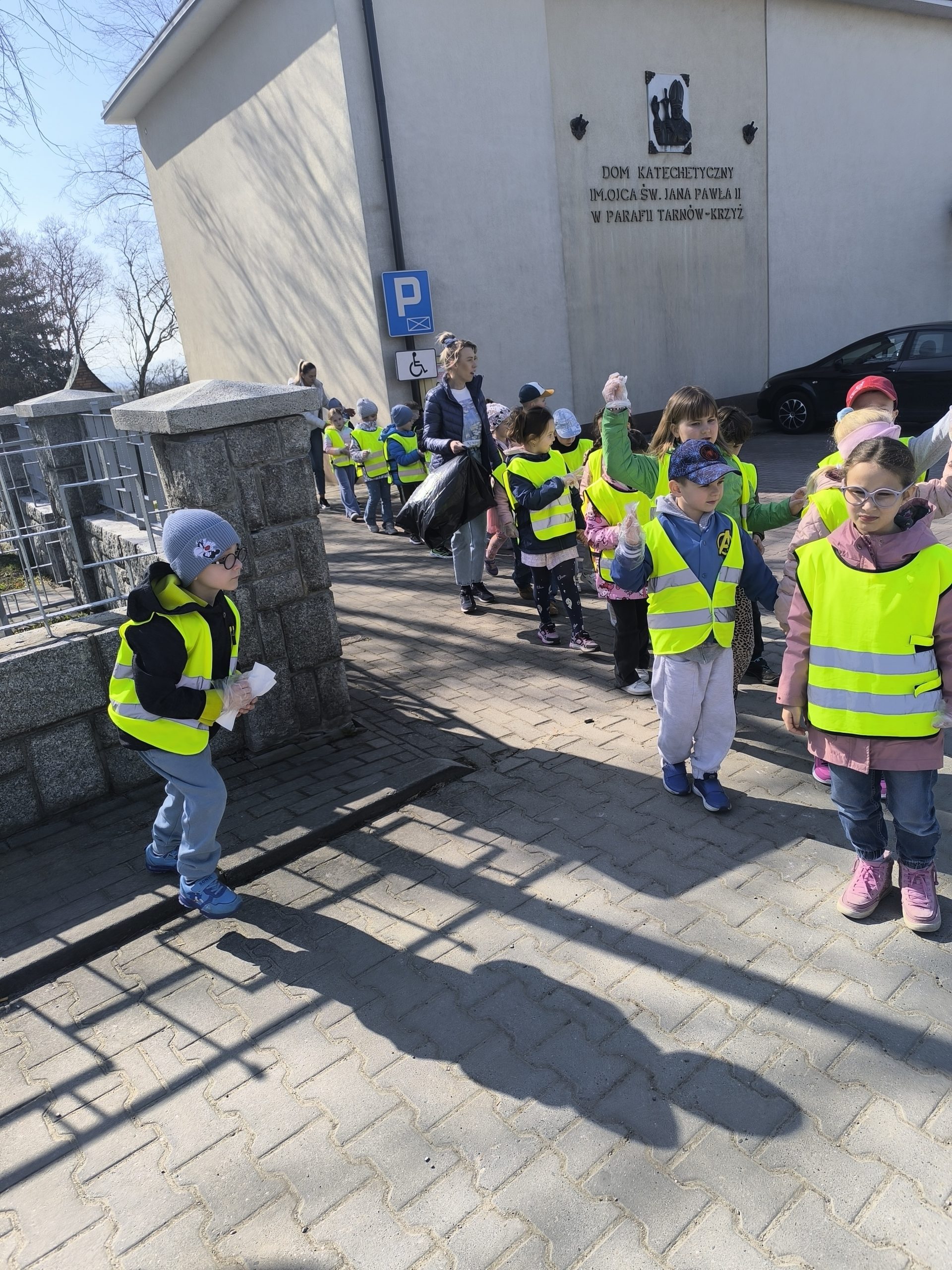 Dzieci z naszej grupy z zaangażowaniem włączyły się w akcję „Posprzątajmy razem Tarnów”. W ramach wspólnego działania przedszkolaki porządkowały okolice przedszkola, ucząc się troski o środowisko i odpowiedzialności za najbliższe otoczenie.