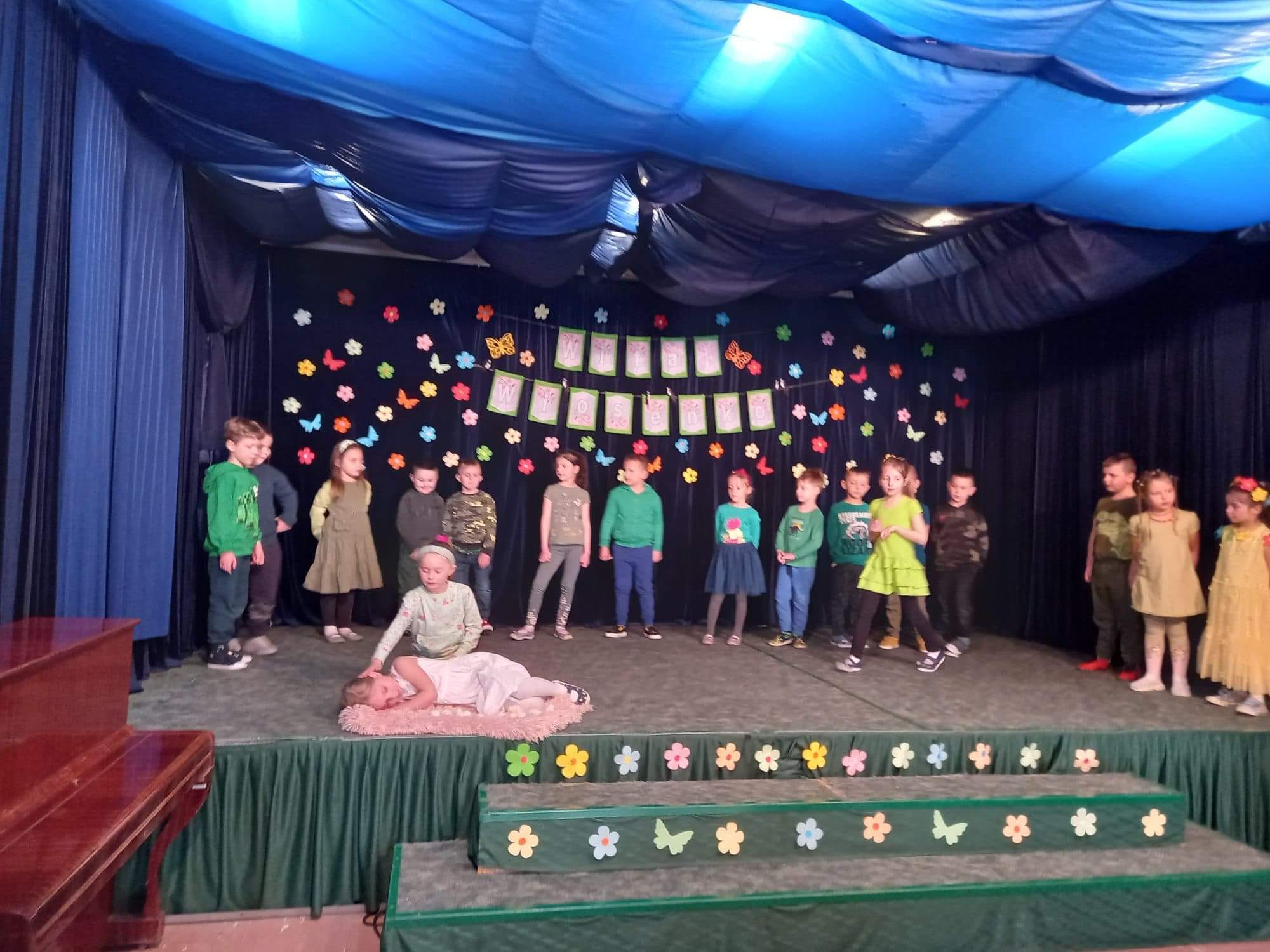 W poniedziałek 21.03.2022r ,,Zajączki” z radością świętowały powitanie Wiosny. Jest to doskonała okazja, aby uzmysłowić dzieciom bogactwo, które niesie ze sobą budząca się do życia przyroda. Dzieci przygotowały przedstawienie, pt. ,,Jak przedszkolaki zimę spać położyły i zaprosiły wiosnę”. Wszyscy, i duzi i mali cieszyli się z nadejścia wiosny. ,,Zielone zajączki” wesoło śpiewały i tańczyły, aby zachęcić wiosenkę do pozostania z nami.