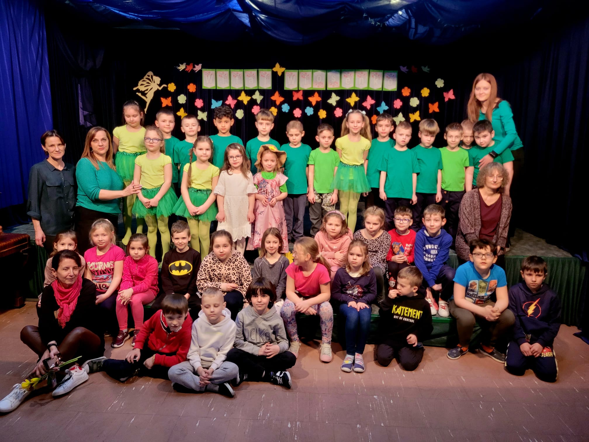 Z tej okazji dzieci z grupy Zajączków zaprezentowały wesołą inscenizację. Szukając sposobu by odnaleźć Wiosnę dzieci śpiewały piosenki, recytowały wiersze oraz zaprezentowały układ taneczny – czym mamy nadzieję obudziły kwiaty i drzewa, zazieleniły trawę i zaangażowały wszystkie ptaki, motylki, ślimaki do wspólnego szukania Wiosny. Nasi aktorzy spisali się na medal.