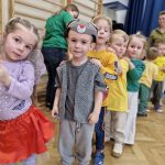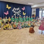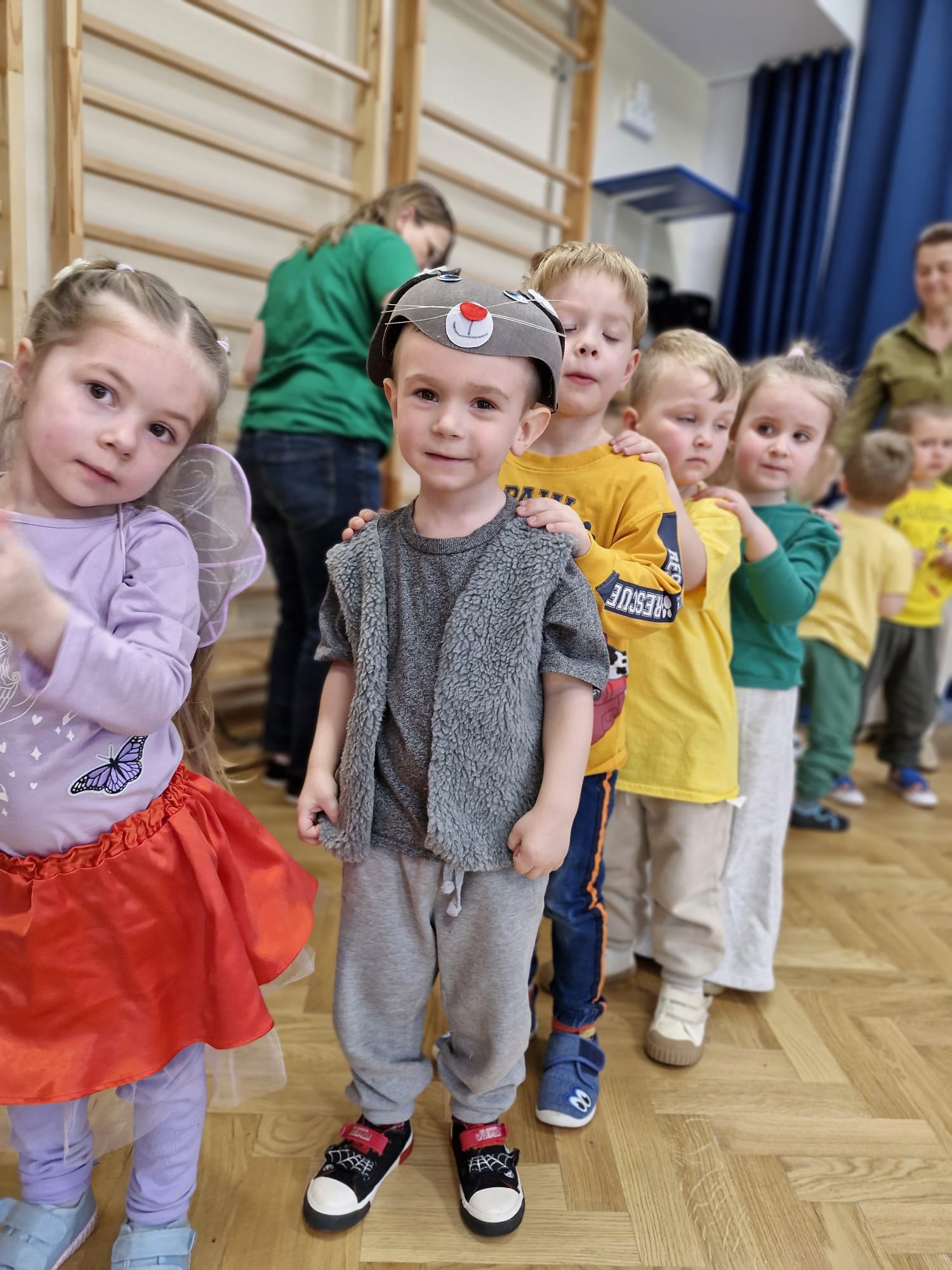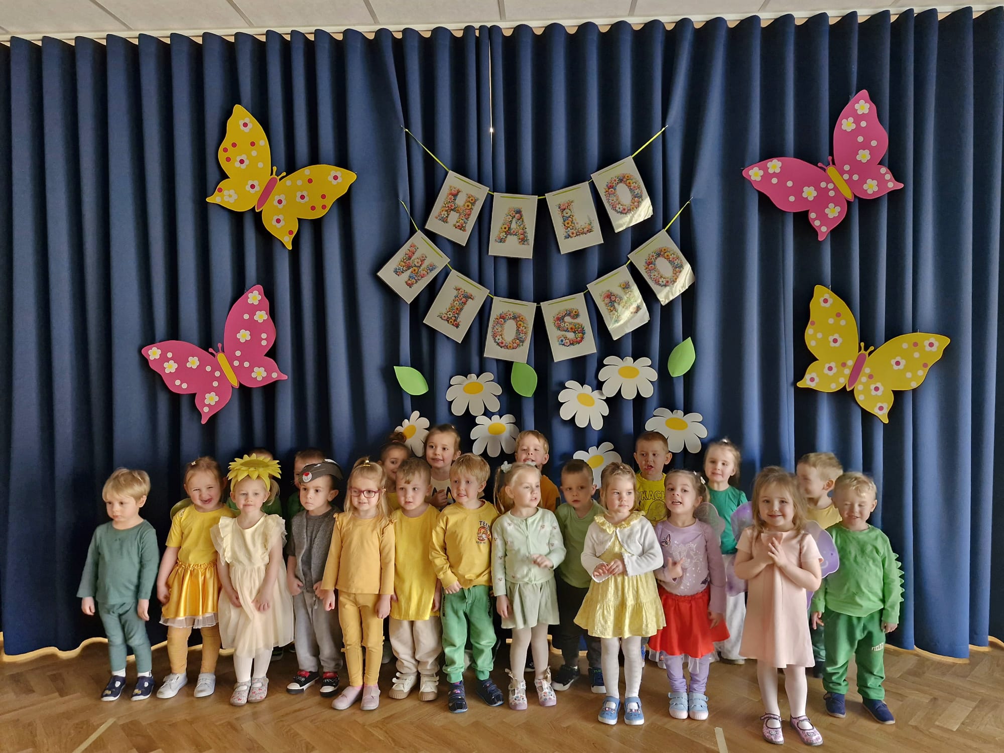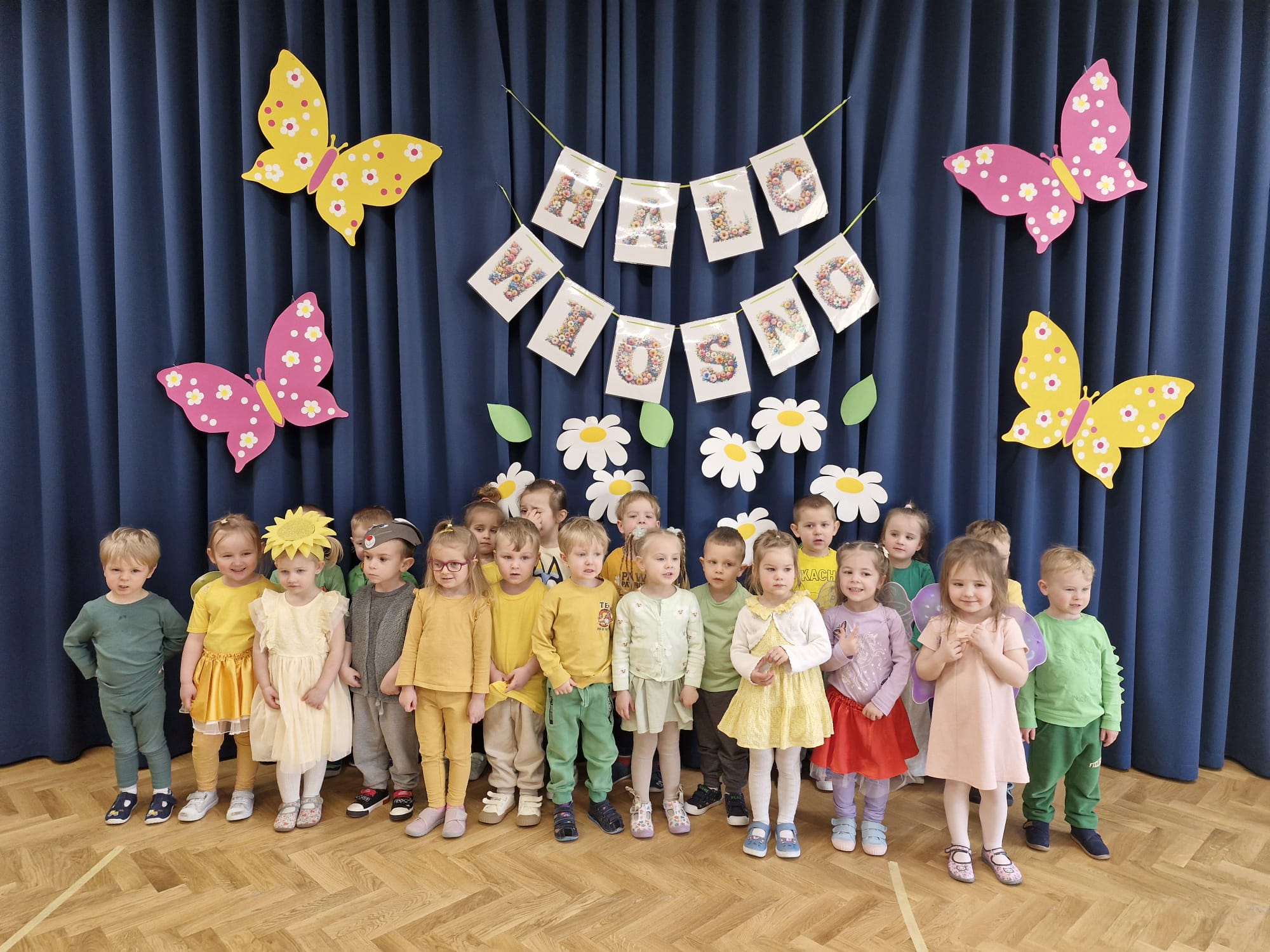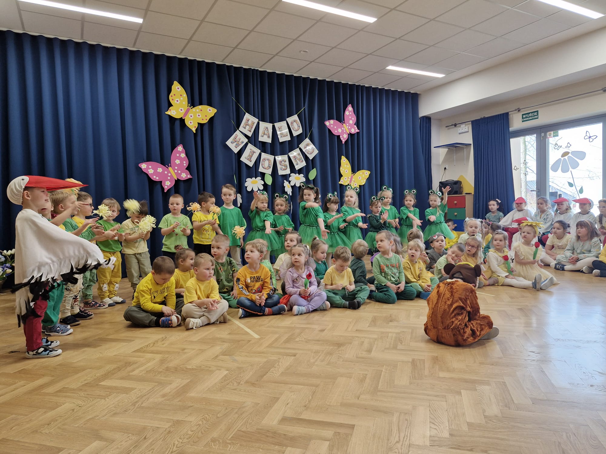Pierwszy dzień wiosny w naszym przedszkolu upłynął w radosnej i uroczystej atmosferze. 20 marca wszystkie grupy wzięły udział w obchodach „Powitania Wiosny”. Już od samego rana w sali widowiskowej panowała wyjątkowa atmosfera – zamieniła się ona w barwną łąkę pełną kwiatów, ptaków, żabek i motyli. Tego dnia obowiązywały wiosenne kolory, które dodatkowo podkreślały radosny charakter wydarzenia. Każda grupa zaprezentowała przygotowaną piosenkę oraz wierszyk o tematyce wiosennej, wzbudzając uśmiechy i zachwyt wśród wszystkich uczestników. Nie zabrakło również wspólnych zabaw i konkurencji sportowych oraz tańców, które pozwoliły dzieciom aktywnie przywitać nową porę roku. Występy przedszkolaków spotkały się z dużym zainteresowaniem i zostały nagrodzone gromkimi brawami. Była to doskonała okazja do integracji, rozwijania zainteresowań muzycznych i przyrodniczych oraz wspólnego przeżywania tego wyjątkowego dnia.