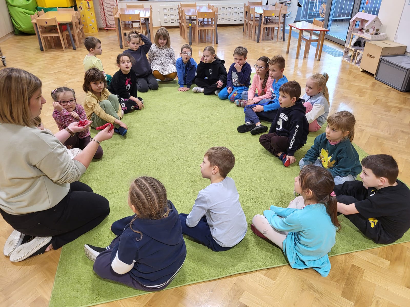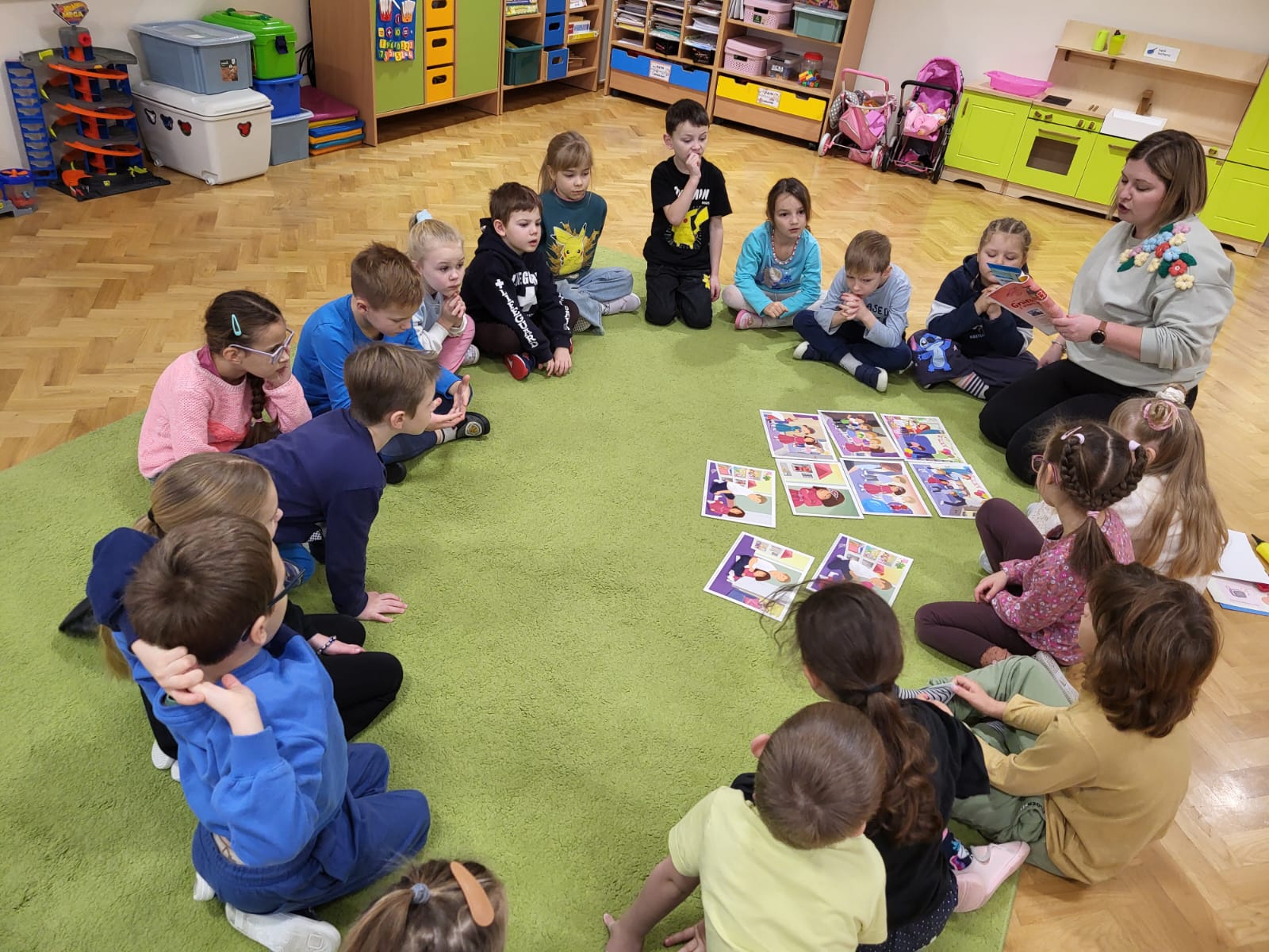 Przedszkolaki wysłuchały opowiadania o Martynce, która bardzo martwiła się i złościła, gdy jej ulubiona koleżanka nie przyszła na urodziny. Historia stała się okazją do rozmowy o tym, jak zachowujemy się, gdy jesteśmy źli, dlaczego czasem „zbieramy w sobie” trudne emocje i co może się wydarzyć, jeśli nie potrafimy ich uwolnić w bezpieczny sposób. Dzieci z zainteresowaniem analizowały zachowanie bohaterki i od razu zauważały podobieństwa do własnych doświadczeń.