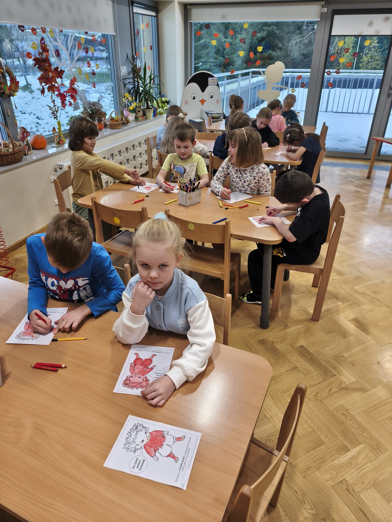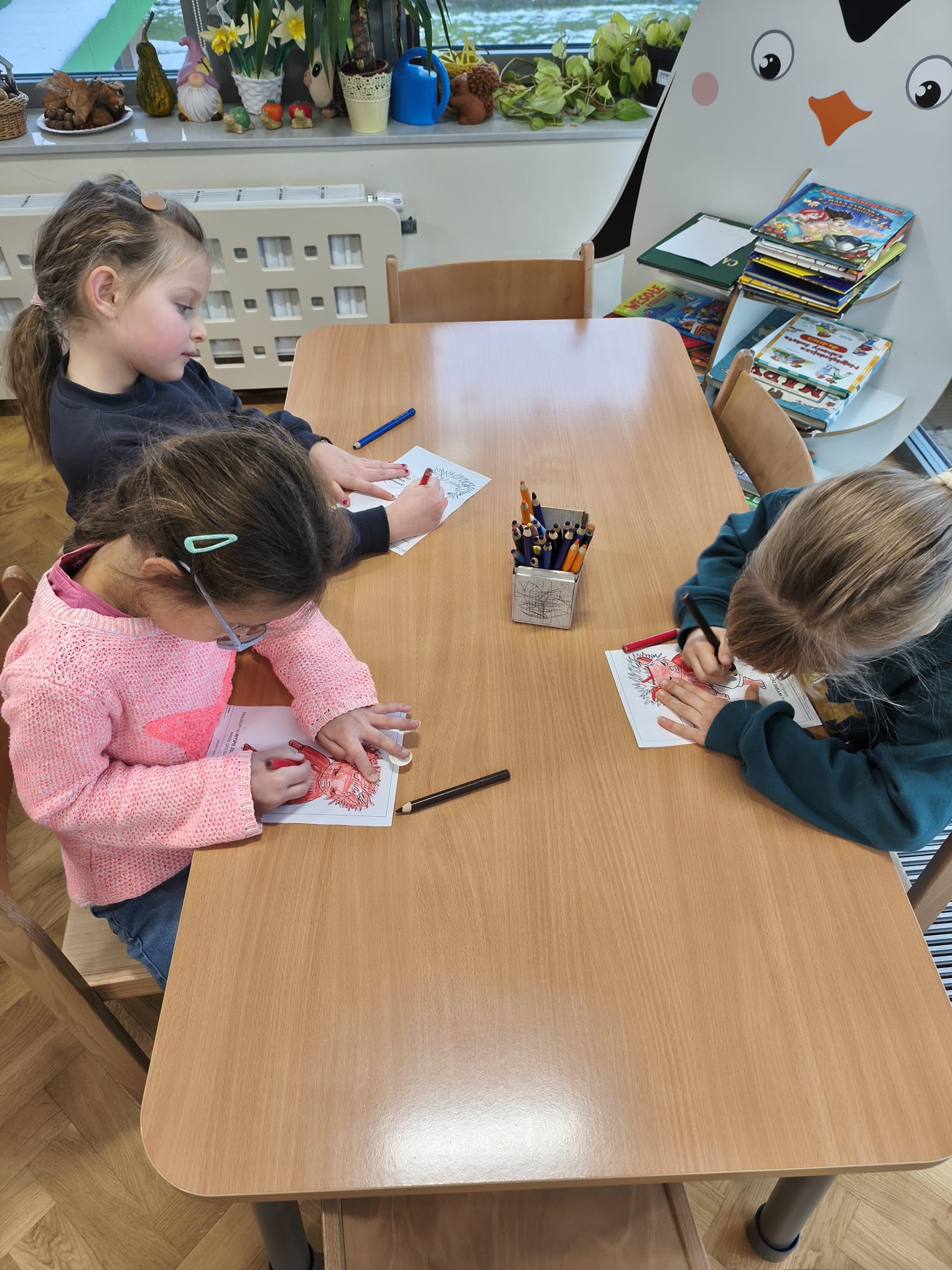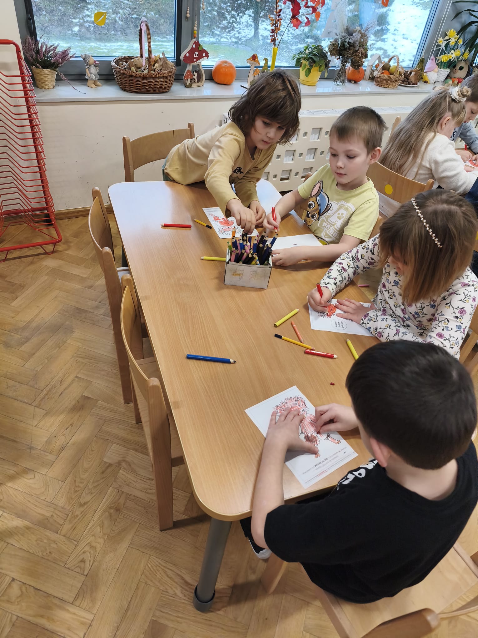 Nie zabrakło również części twórczej – dzieci z ogromnym zaangażowaniem kolorowały „Gniewka”, nadając mu wyjątkowy wygląd i jednocześnie oswajając temat trudnych emocji poprzez zabawę. Zajęcia były pełne śmiechu, ciekawych rozmów i wartościowych wniosków.