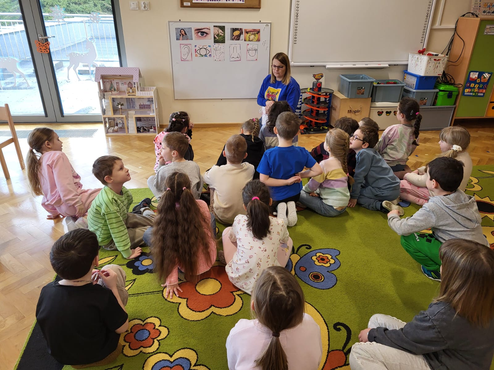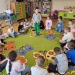 Dzieci aktywnie uczestniczyły w rozmowie, podczas której wymieniały zmysły oraz dopasowywały je do odpowiednich narządów (oczy – wzrok, uszy – słuch, nos – węch, język – smak, skóra – dotyk).