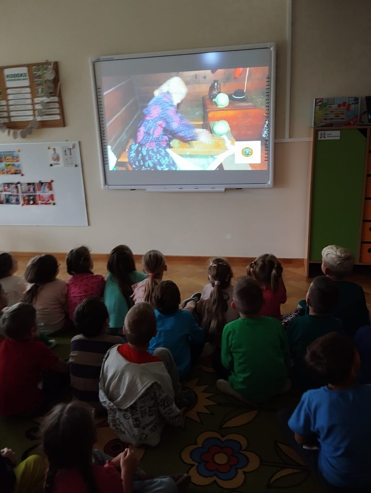 W dniu 29.10 w ramach projektu „Witaminki” podjęliśmy kapuściane wyzwanie razem z grupą V. Rozpoznawaliśmy kapustę białą, czerwoną i kapustę pekińską różnymi zmysłami. Poznaliśmy zdrowotne właściwości tych warzyw. Przedszkolaki dowiedziały się, że kalafior i brokuł to też odmiany kapusty. Spróbowały jak smakują. Mogły zobaczyć jak się kisi kapustę oglądając film edukacyjny. Z entuzjazmem próbowały liści kapusty, kapustę kiszoną oraz częstowały się gotową surówką podczas obiadu. Wysłuchaliśmy piosenki „Kapusta Kama”, podzieliliśmy się pomysłami na posiłki z wykorzystaniem warzyw kapustnych. Na zakończenie wykonaliśmy pracę plastyczną.