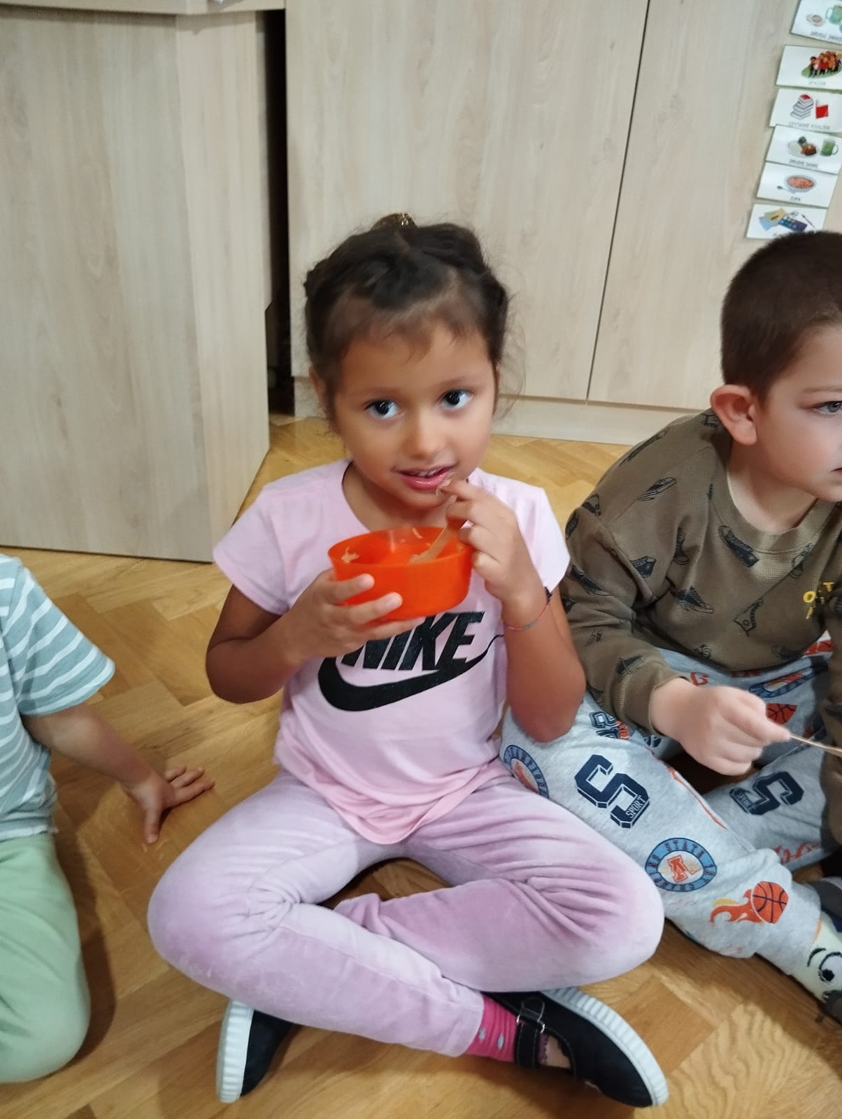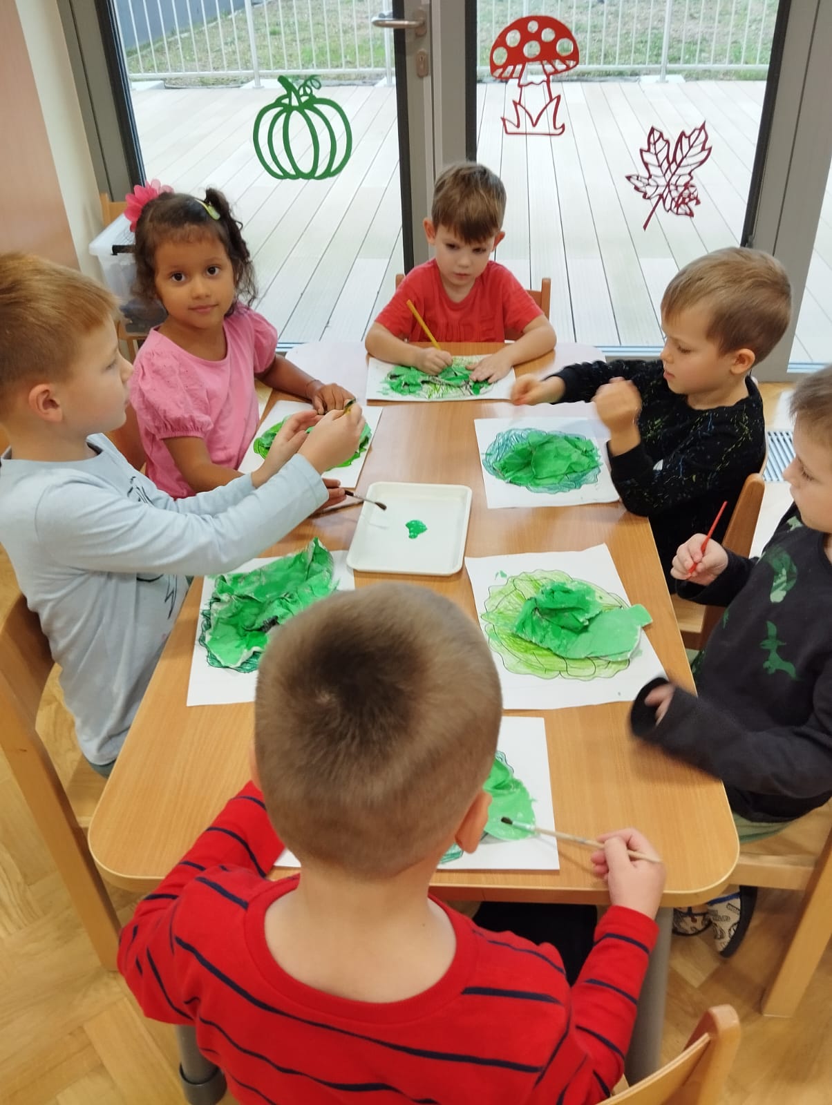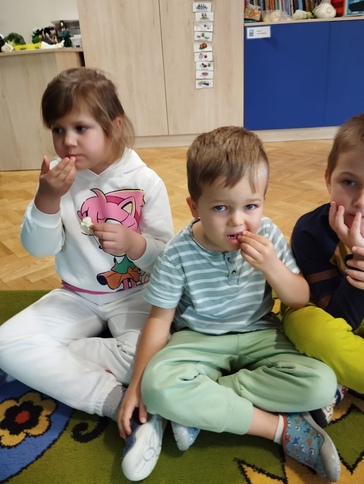 W dniu 29.10 w ramach projektu „Witaminki” podjęliśmy kapuściane wyzwanie razem z grupą VI. Rozpoznawaliśmy kapustę białą, czerwoną i kapustę pekińską różnymi zmysłami. Poznaliśmy zdrowotne właściwości tych warzyw. Przedszkolaki dowiedziały się, że kalafior i brokuł to też odmiany kapusty. Spróbowały jak smakują. Mogły zobaczyć jak się kisi kapustę oglądając film edukacyjny. Z entuzjazmem próbowały liści kapusty, kapustę kiszoną oraz częstowały się gotową surówką podczas obiadu. Wysłuchaliśmy piosenki „Kapusta Kama”, podzieliliśmy się pomysłami na posiłki z wykorzystaniem warzyw kapustnych. Na zakończenie wykonaliśmy pracę plastyczną.