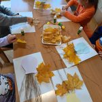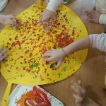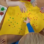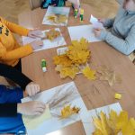 Ekopieczątki – do ich stworzenia wykorzystaliśmy plastikowe butelki, które zyskały drugie życie. Dzięki nim powstały piękne, kolorowe jesienne liście ozdobione fantazyjnymi, wzorami.