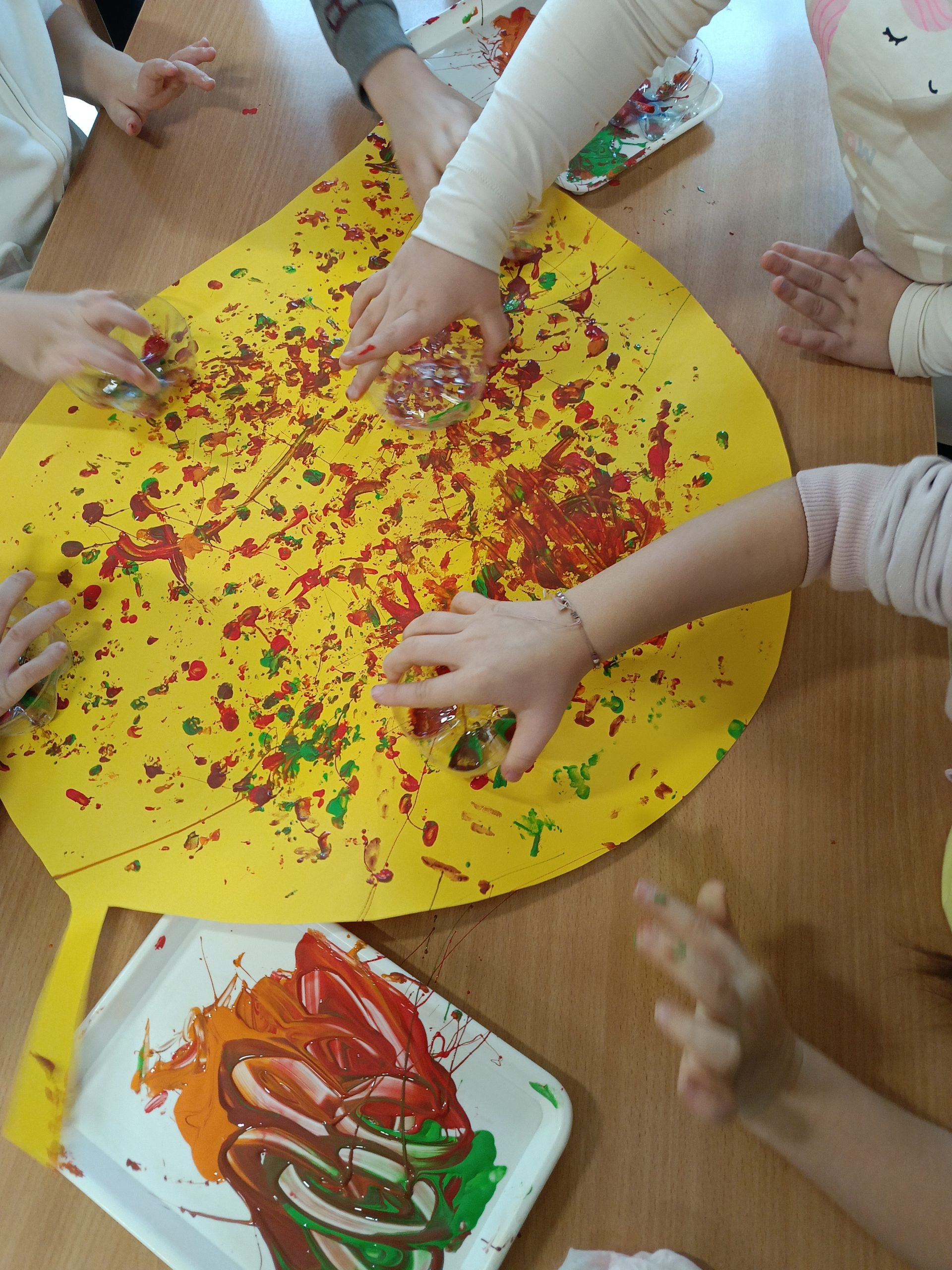 Ekopieczątki – do ich stworzenia wykorzystaliśmy plastikowe butelki, które zyskały drugie życie. Dzięki nim powstały piękne, kolorowe jesienne liście ozdobione fantazyjnymi, wzorami.