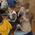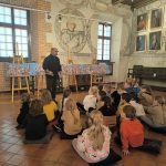 Podczas zajęć przedszkolaki mogły poczuć się jak prawdziwi krzykacze miejscy – samodzielnie ogłaszały obwieszczenia, posługując się tarabanem, co wywołało mnóstwo radości i śmiechu. Dzieci oglądały również stare monety, dowiadując się, jak wyglądały dawniej środki płatnicze. Dużym zainteresowaniem cieszyły się również stare skrzynie na drogocenne przedmioty oraz możliwość sprawdzenia, ile ważyły dawne kłódki.