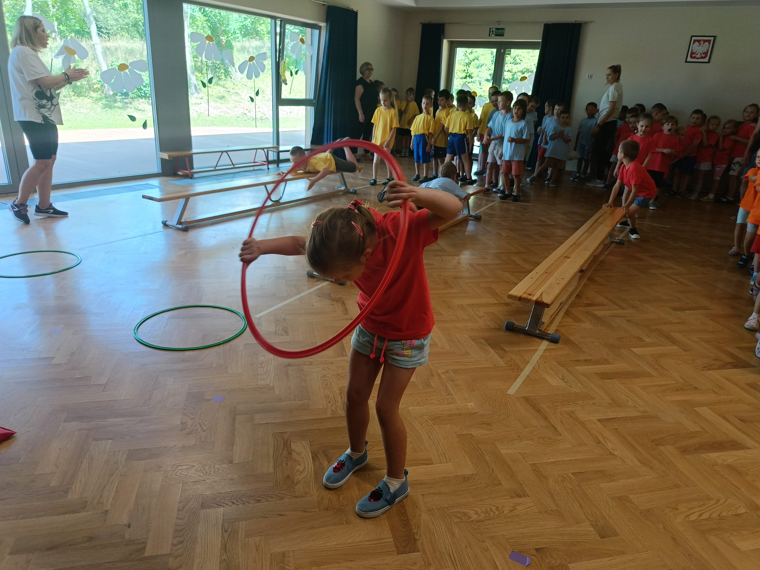 Nasze przedszkolaki z ogromnym entuzjazmem uczestniczyły w przygotowanych konkurencjach sportowych. Każda konkurencja była okazją do świetnej zabawy, ale również do rozwijania sprawności fizycznej, współpracy w grupie i zdrowej rywalizacji.