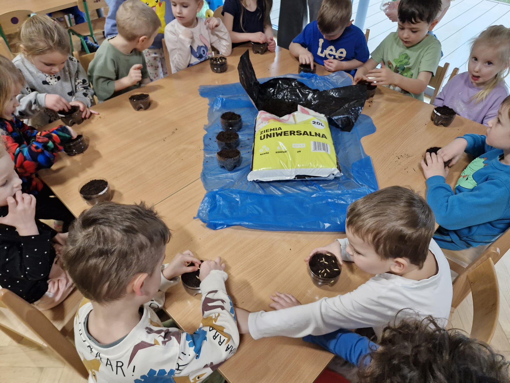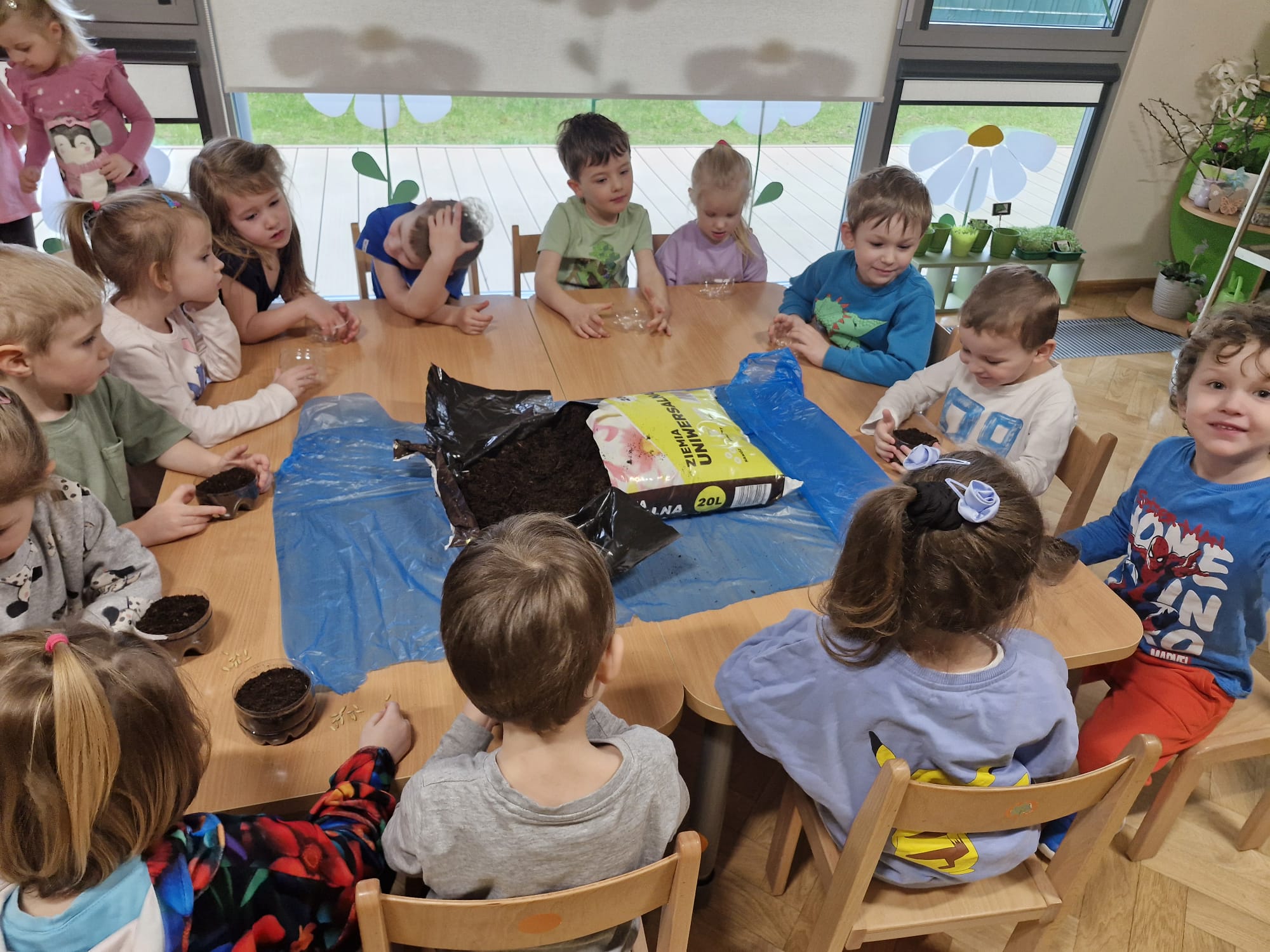 2 kwietnia nasze „Zajączki” siały owies wielkanocny, przygotowując się do świąt. Każde dziecko dostało swoją doniczkę, ziemię i nasiona, które z radością wsypywało i podlewało. Podczas zajęć rozmawialiśmy o tym, jak rośliny rosną i dlaczego warto o nie dbać. Dzieci z zaciekawieniem obserwowały, jak ich owies każdego dnia się zmienia.