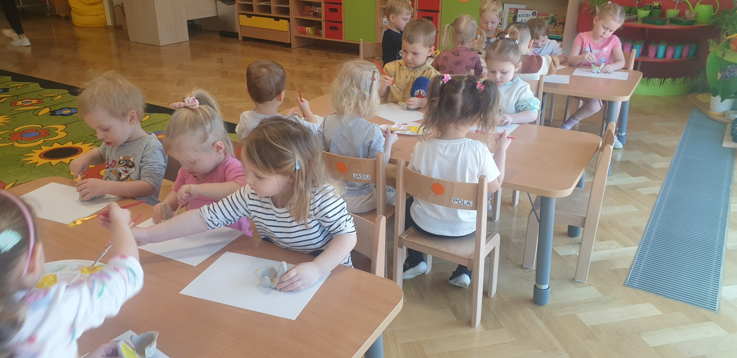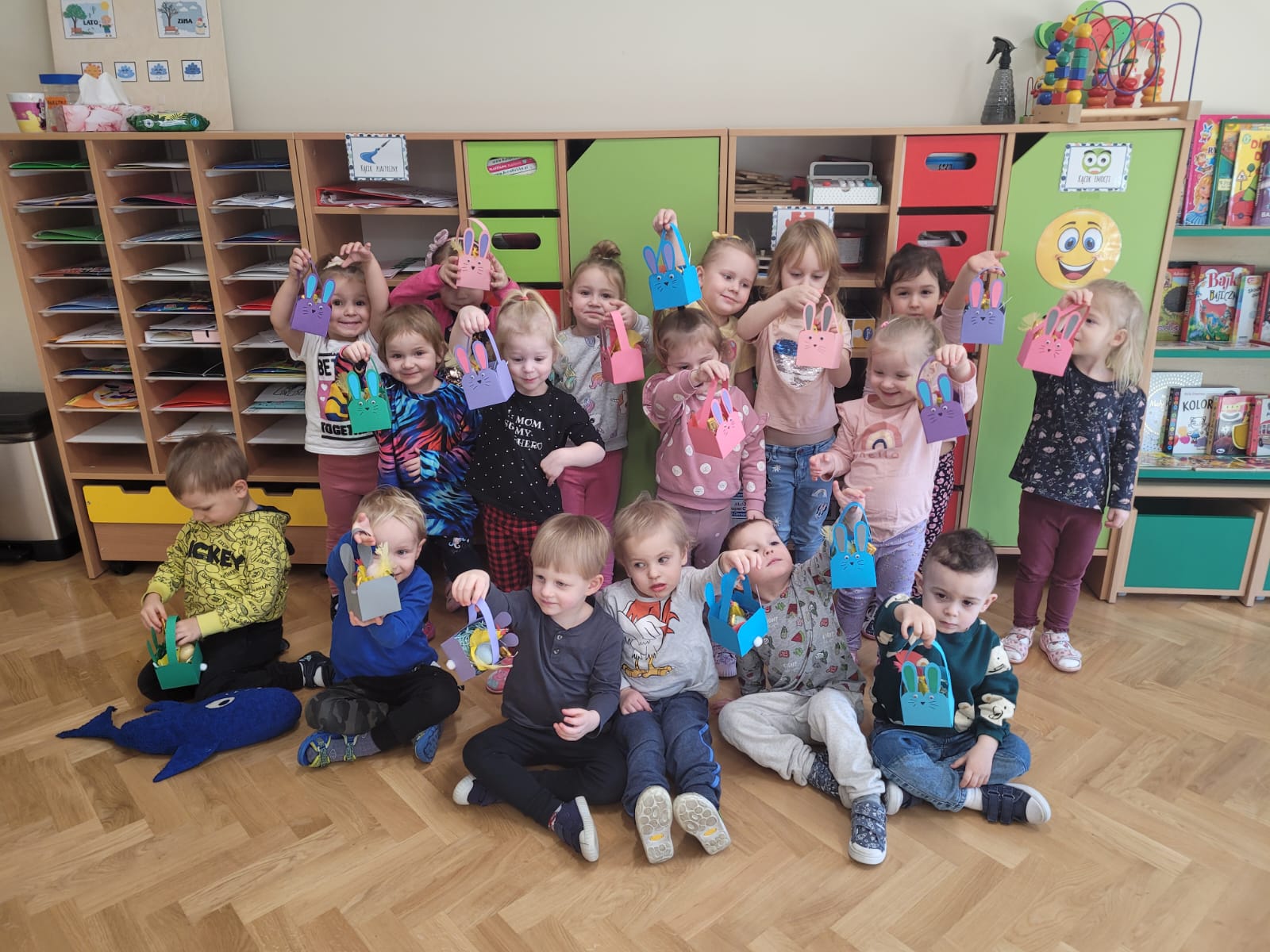 „Jeżyki” zaczęły przygotowania do świąt od poznania tradycji związanych z Wielkanocą, poznały zwyczaj malowania pisanek, dowiedziały się jakie produkty należy włożyć do koszyczka wielkanocnego, a także dowiedziały się jak bezpiecznie świętować śmingusa-dyngusa. Dzieci przygotowały także kurczaczki d swoich wielkanocnych koszyków!