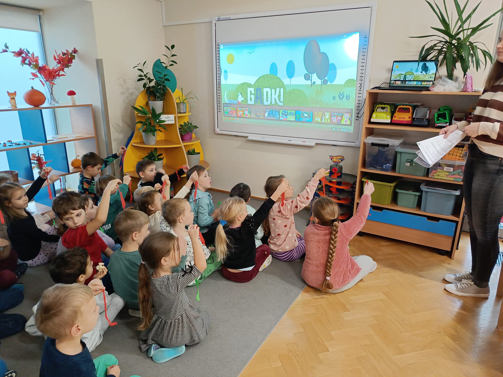 W ramach Ogólnopolskiej Kampanii Dzieciństwo Bez Przemocy, w grupie V zostały przeprowadzone zajęcia przez Panią psycholog pt. „Gadki z Gadkiem”. Celem zajęć było wspieranie dzieci w rozpoznawaniu trudnych i zagrażających sytuacji w życiu codziennym. Dzieci zapoznały się z Gadkiem i razem z nim poznały bezpieczne zasady oraz ćwiczyły sposoby reagowania w sytuacjach trudnych.