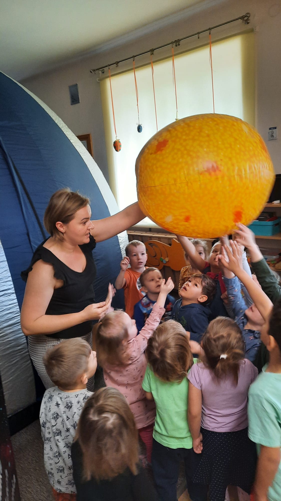 W czwartek 21 kwietnia, nasze przedszkole odwiedziło Mobilne Planetarium „Orbitek”. Przedszkolaki wyruszyły na podbój Kosmosu. Dzieci obejrzały prezentację multimedialną, poznały Układ Słoneczny, wygląd i kolejność poszczególnych planet, rozpoznawały gwiazdozbiory oraz poznały znaki zodiaku. Temat kosmosu cieszy się dużym zainteresowaniem wśród dzieci, dlatego też dzisiejsze zajęcia bardzo się wszystkim podobały.