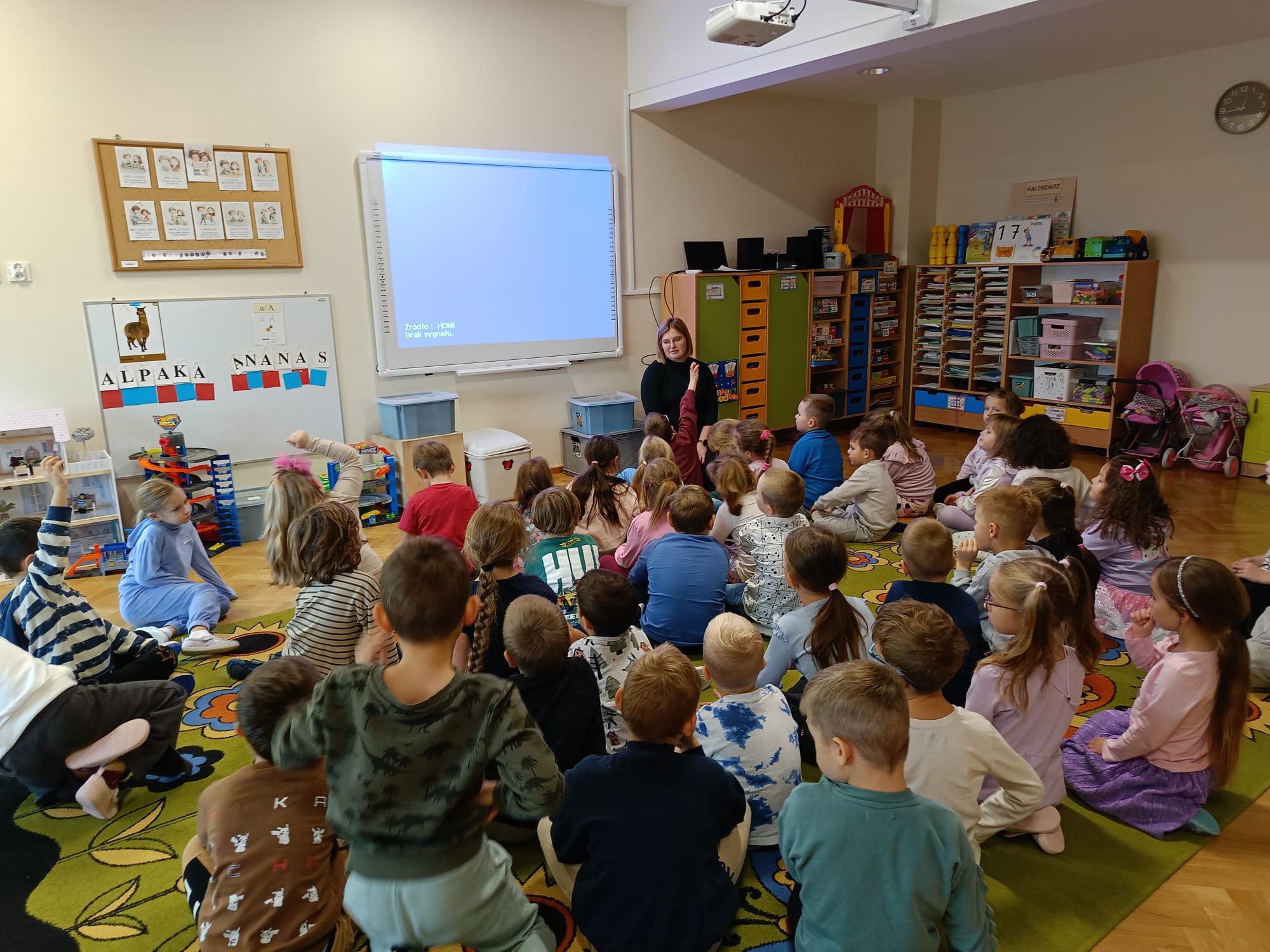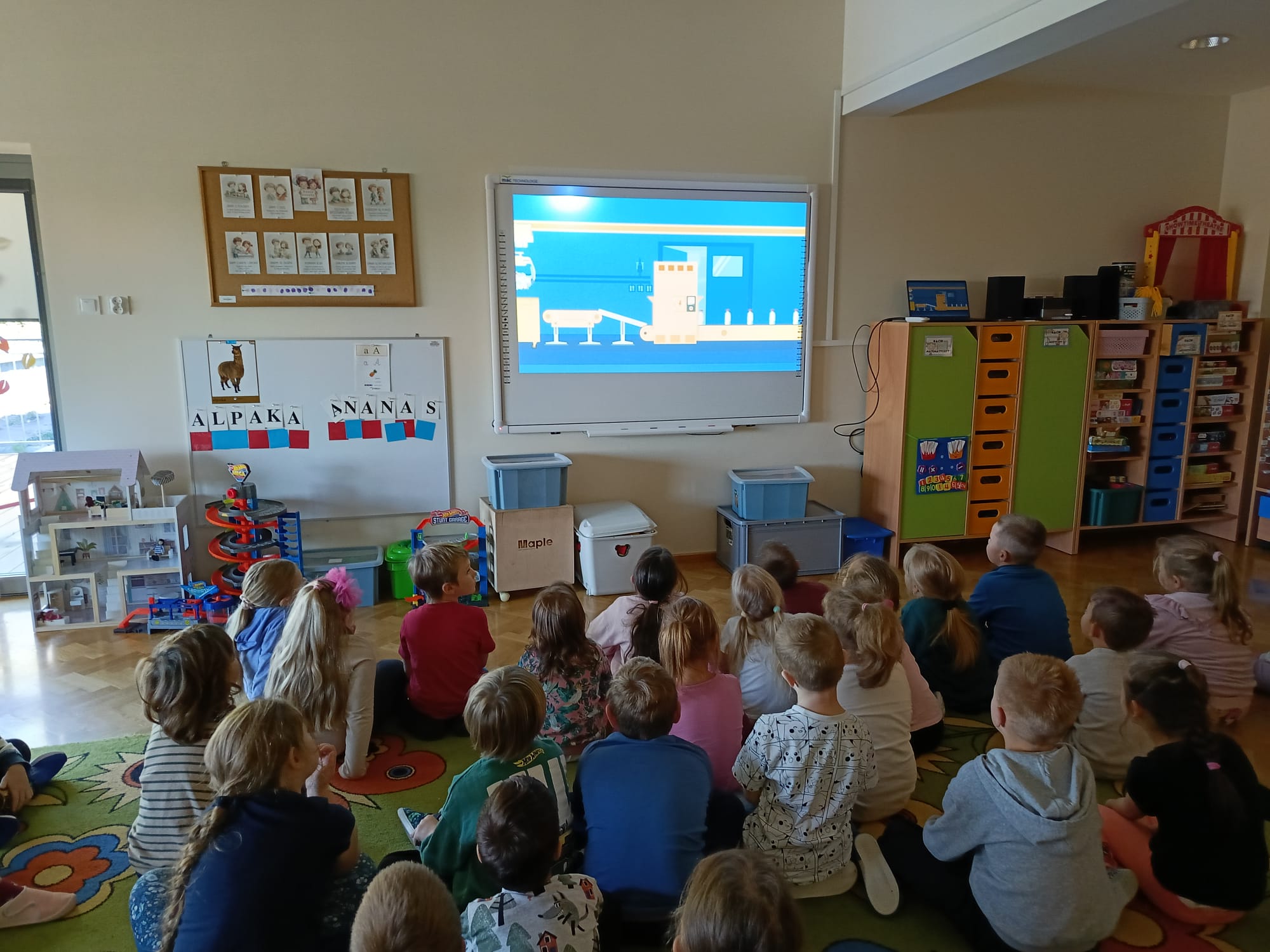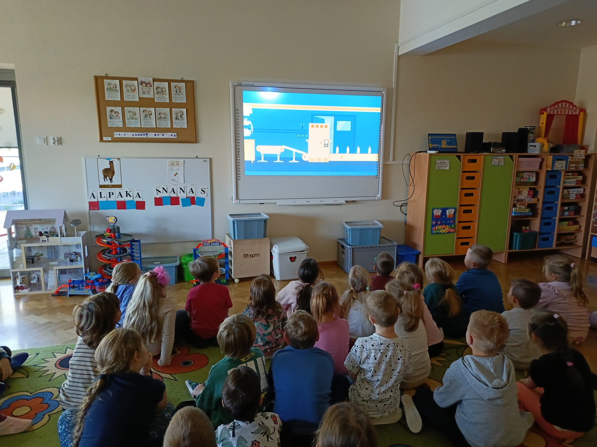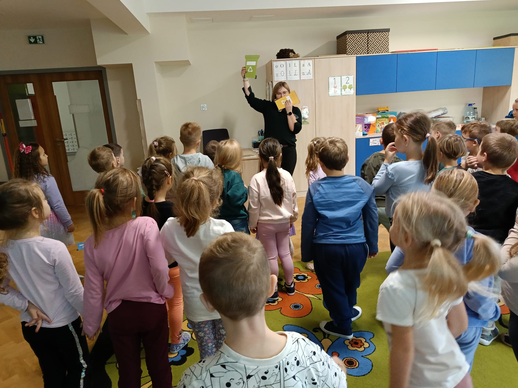 Podczas zajęć przedszkolaki obejrzały film edukacyjny „Segregacja śmieci dla dzieci”, a następnie wspólnie omówiły, jakie są rodzaje koszy i co można do nich wrzucać. Kolejnym etapem była gra multimedialna „Śmieciopolis”, dzięki której dzieci utrwaliły zdobytą wiedzę w atrakcyjny i nowoczesny sposób.