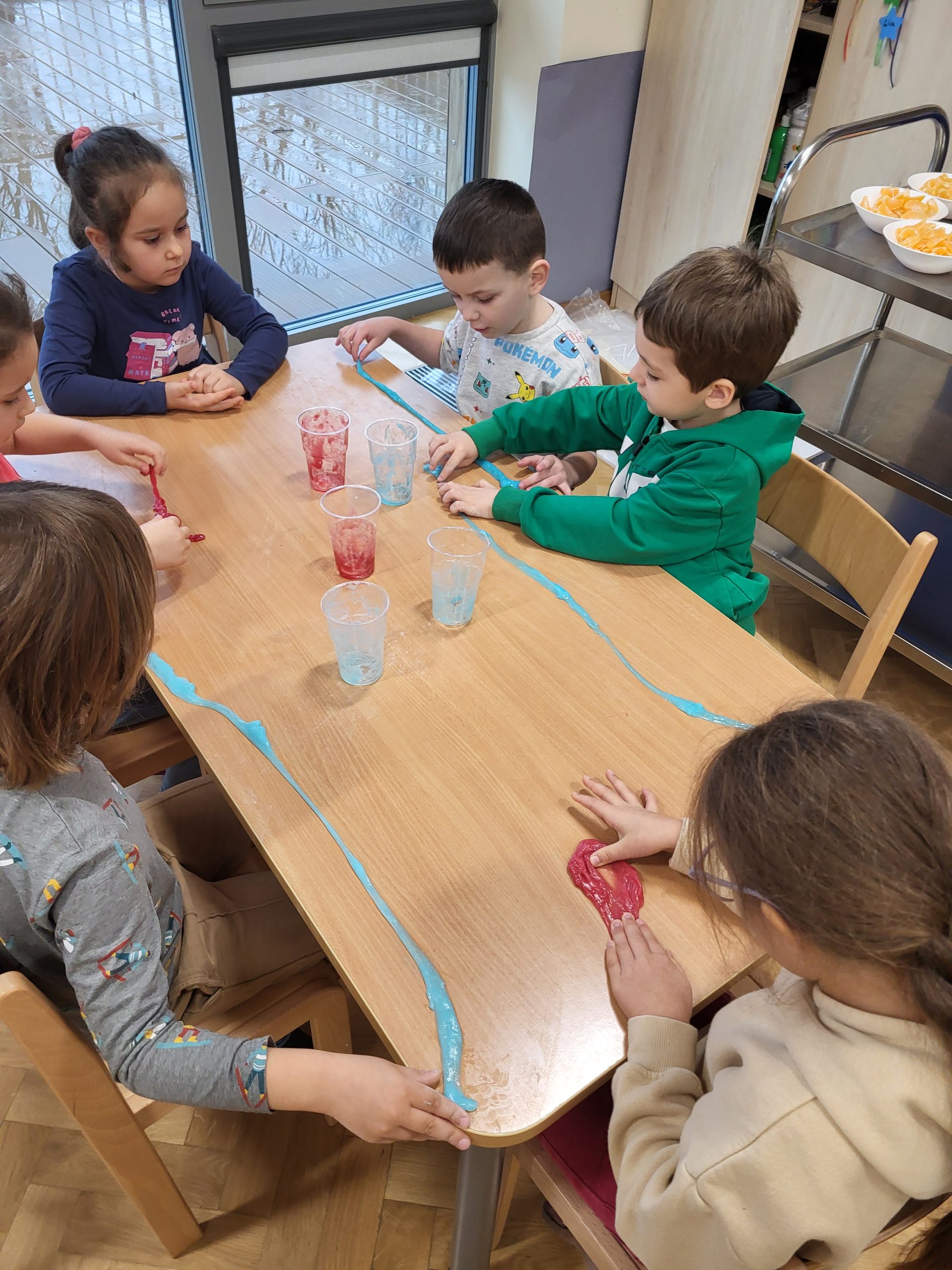 W dniu 28 listopada w naszej grupie robiliśmy slimy w ramach Ogólnopolskiego Projektu Edukacyjnego „Gramy zmysłami”. Slime, to plastyczna masa, która służy do zabawy sensorycznej oraz rozwija percepcję zmysłową. Zabawa nim stymuluje przede wszystkim rozwój zmysłu dotyku i motoryki małej. Przedszkolaki z entuzjazmem i zaciekawieniem podeszły do tego zadania. Zajęcie wymagało koncentracji oraz cierpliwości. Wszystkim dzieciom udało się stworzyć własnego rozciągliwego slima, wspaniale się przy tym bawiąc. Zabawa slimami wywołała u dzieci wiele radości.