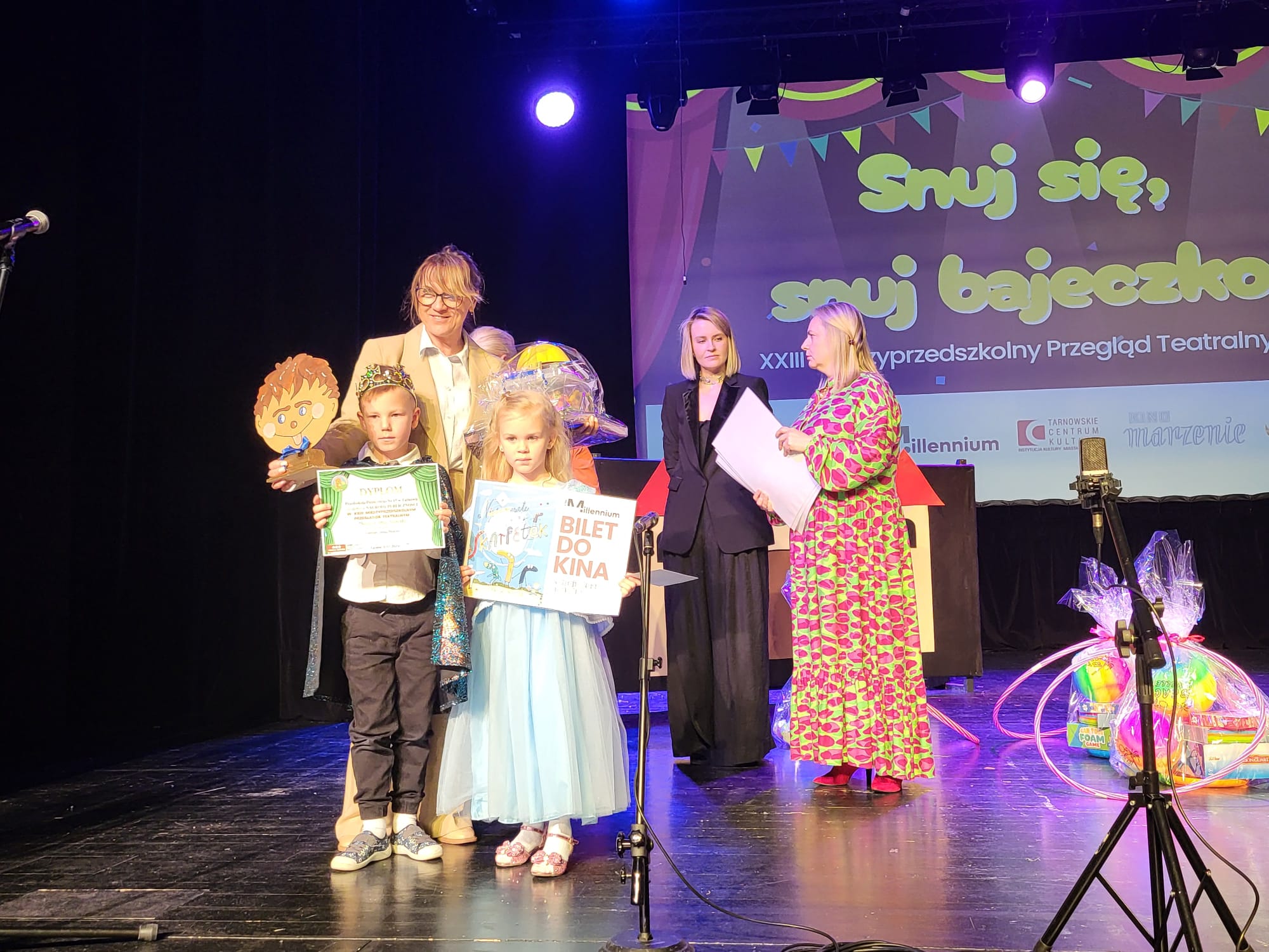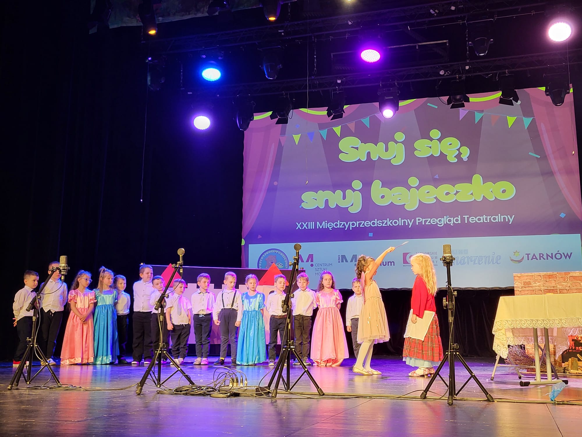 W czwartek 8 maja odbył się Finał XXIII Międzyprzedszkolnego Przeglądu Teatrzyków „Snuj się, snuj bajeczko”… Celem wydarzenia była promocja dziecięcej twórczości oraz popularyzacja różnorodnych form teatralnych. Podczas finału zaprezentowały się dzieci z grupy „Liski” . Wcielając się z wielkim zaangażowaniem w swoje role w przedstawieniu ” Bajka o Kopciuszku” Dzięki swojej znakomitej grze zdobyli Nagrodę Publiczności dziecięcego jury. Otrzymali również dwie indywidualne nagrody za rolę Macochy i Rycerza Króla. Po zakończeniu prezentacji odbyło się tradycyjne wręczenie nagród, statuetek i dyplomów — zarówno zwycięzcom, jak i wszystkim przedszkolom uczestniczącym w tegorocznej edycji konkursu. Wśród gości specjalnych obecny był Jakub Kwaśny – Prezydent Tarnowa.