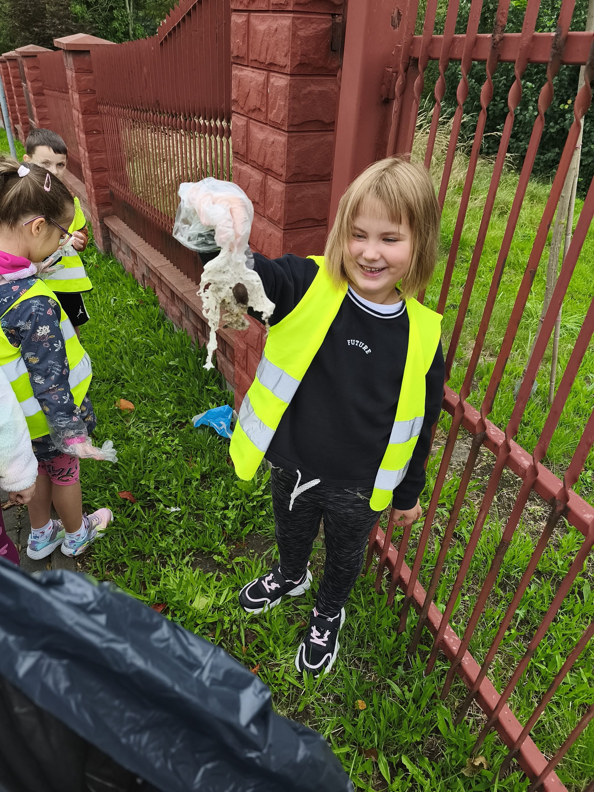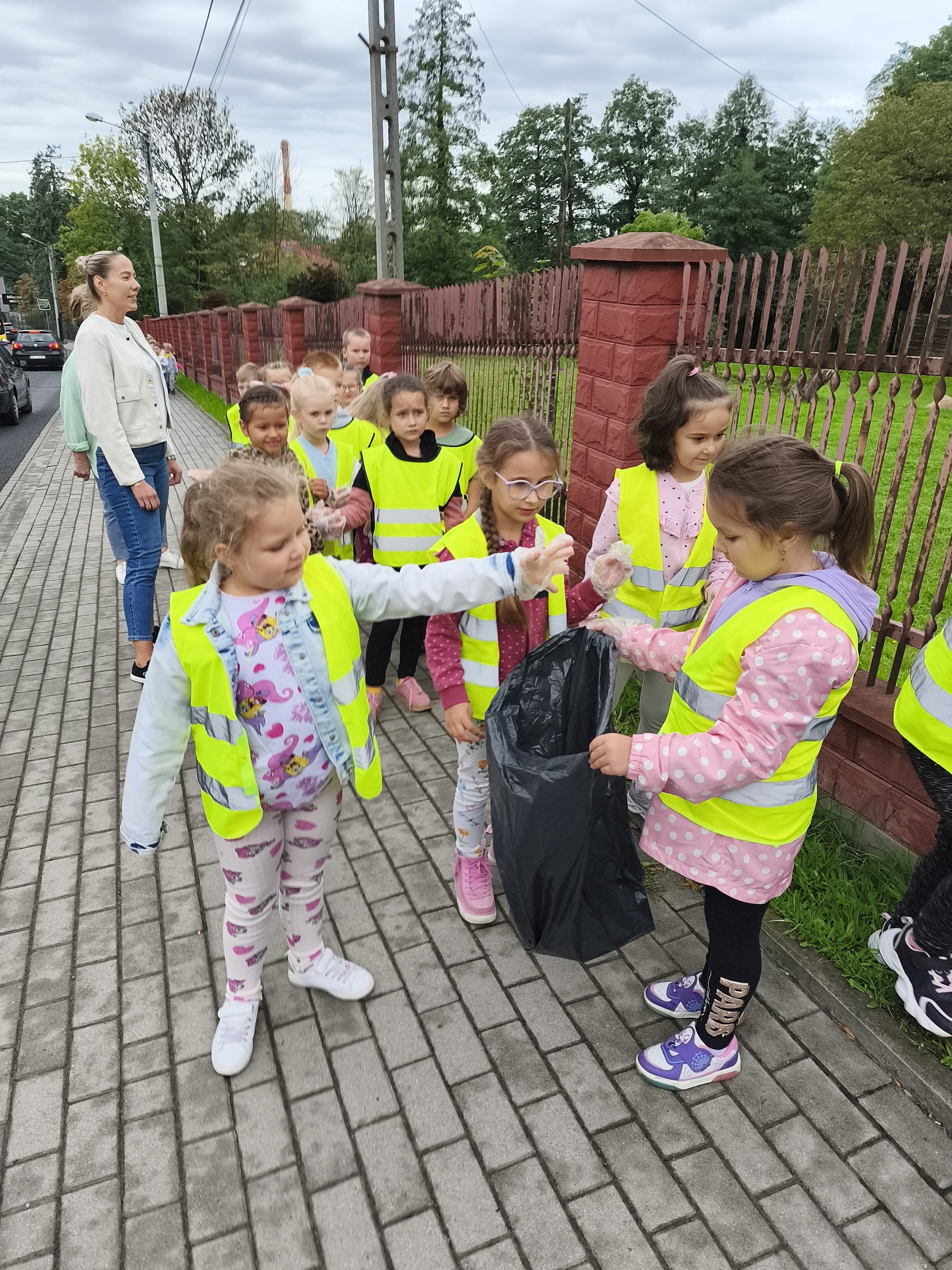 W dniu 19 września br. roku dzieci z naszej grupy po raz kolejny wzięły udział w sprzątaniu okolicy wokół naszego przedszkola. Jednocześnie włączyli się w ten sposób w ogólnopolską akcje „Sprzątania świata” organizowaną przez Fundację Nasza Ziemia. Udział naszych przedszkolaków w takie przedsięwzięcie z pewnością przyczyni się do ukształtowania wrażliwości na potrzeby środowiska naturalnego oraz nawyku dbałości o nie.