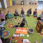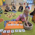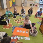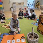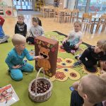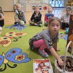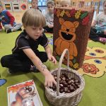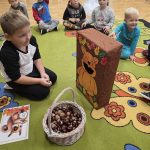 Dzieci z grupy Lisków powitały w sali wiewiórkę. Najpierw przedszkolaki opisały jej wygląd, opowiadały o tym, gdzie mieszka i co je. Następnie dzieci przeliczały ile orzechów i kasztanów zjada wiewiórka. Wielką radość sprawiło dzieciom również karmienie głodnej wiewiórki.