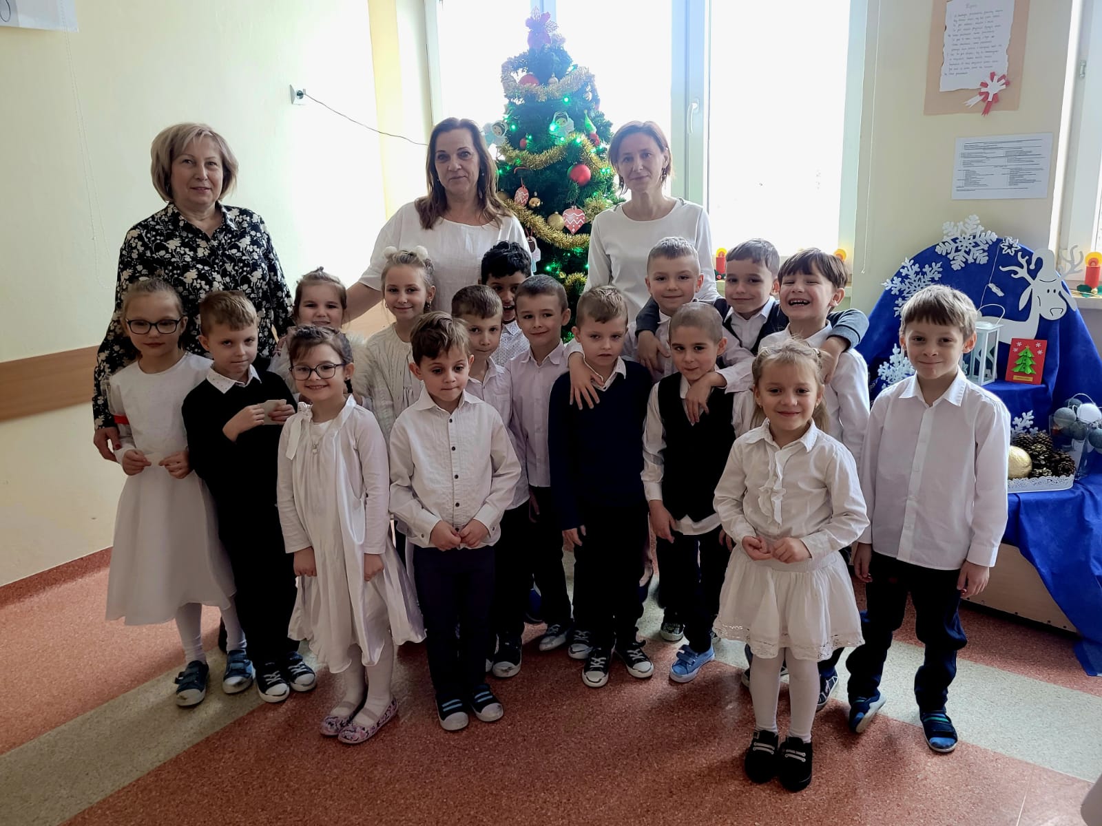 W czwartek 22 grudnia odbyło się w naszej grupie spotkanie wigilijne na którym gościliśmy Panią Dyrektor Annę Stańczyk i przedstawicieli rodziców. Święta Bożego Narodzenia to magiczny czas spędzony w gronie najbliższych. „Zajączki” ubrane odświętnie zaprezentowały wiersze i piosenki przy pięknie udekorowanej choince. Wszyscy składaliśmy sobie życzenia, łamiąc się opłatkiem. Nie zabrakło również wspólnego śpiewania kolęd i pastorałek. Czas upłyną w miłej i serdecznej atmosferze. Wszyscy poczuli zbliżające się Święta Bożego Narodzenia.