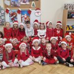 i podekscytowaniem powitały wyjątkowego gościa. Przedszkolaki zaprezentowały przygotowaną piosenkę a Mikołaj z uwagą ich wysłuchał i pochwalił za piękny występ.