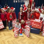 Po części artystycznej nadszedł najważniejszy moment – rozdanie prezentów. Każde dziecko odebrało upominek a na twarzach „Misiów” pojawiły się szerokie uśmiechy. Mikołaj chętnie pozował również do wspólnych zdjęć, dzięki czemu spotkanie pozostawiło wiele miłych wspomnień.