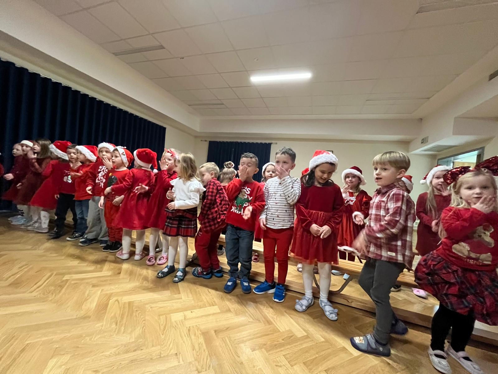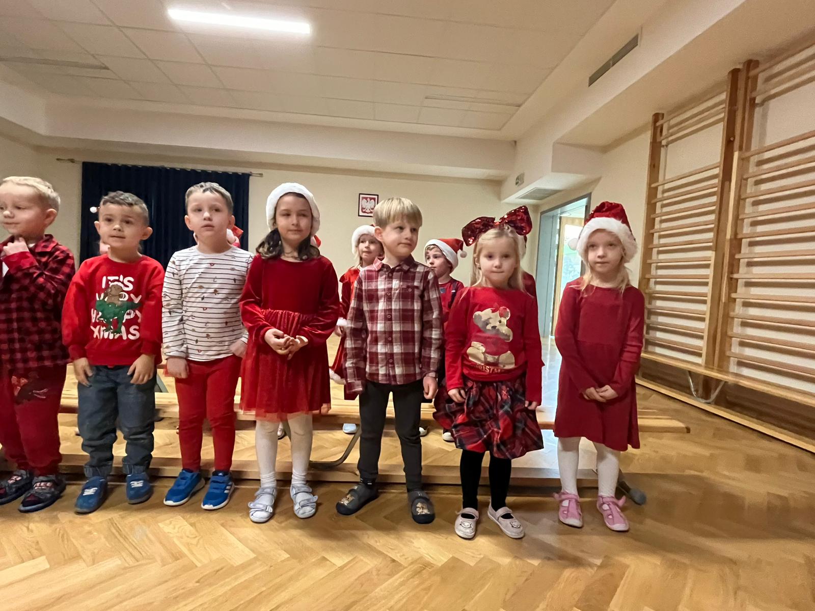 i podekscytowaniem powitały wyjątkowego gościa. Przedszkolaki zaprezentowały przygotowaną piosenkę a Mikołaj z uwagą ich wysłuchał i pochwalił za piękny występ.