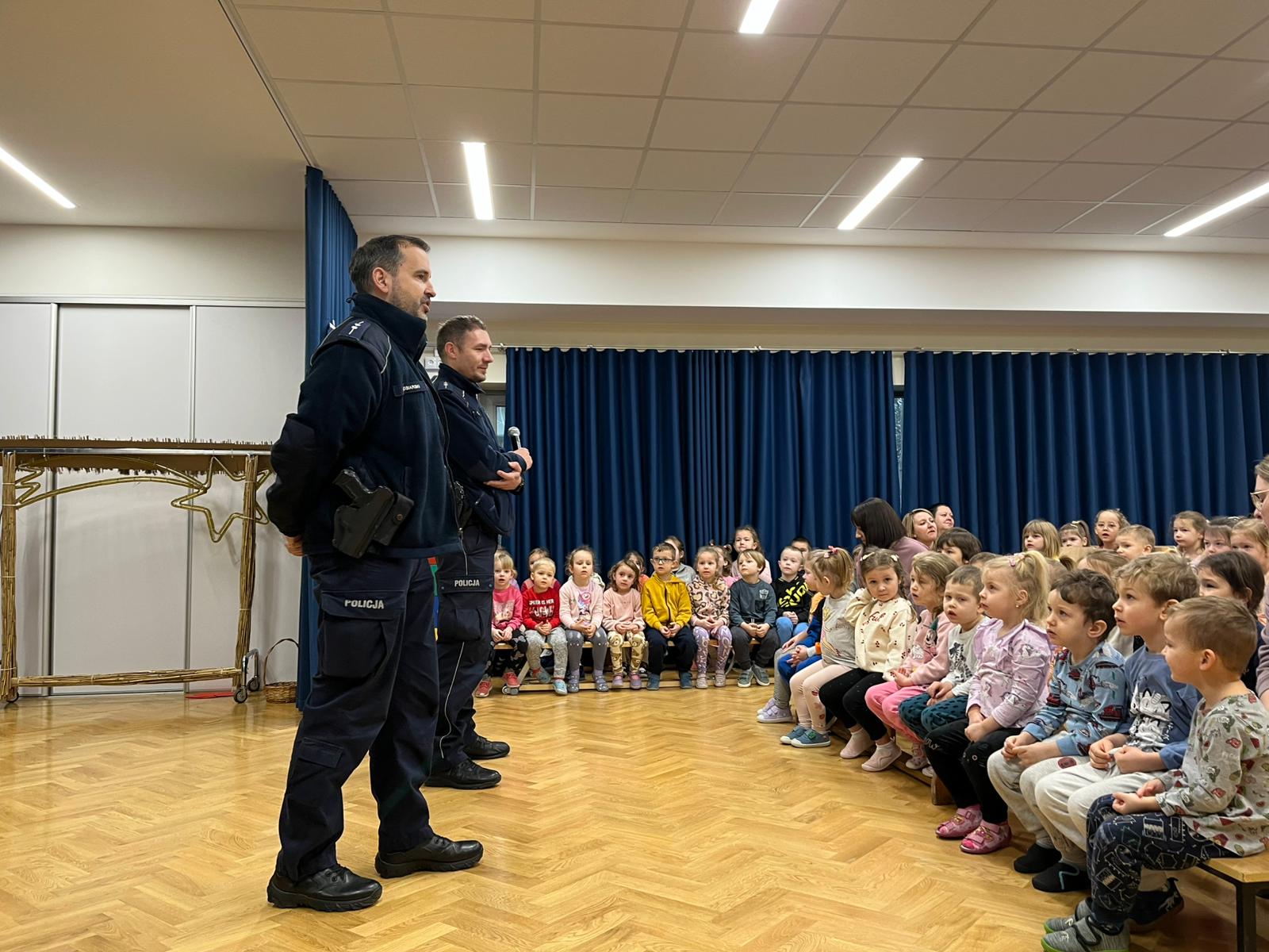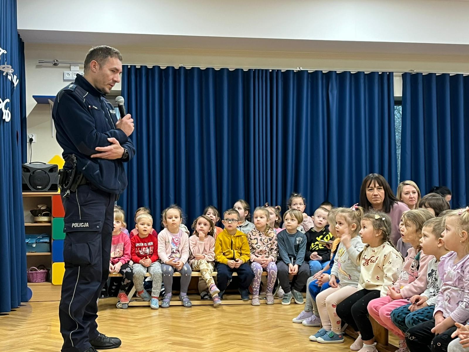 o pomoc w przypadku zgubienia się w obcym miejscu, np. na stoku narciarskim. Przypomnieli również jak dbać o bezpieczeństwo własne i innych oraz do kogo zwracać się o pomoc w sytuacji zagrożenia. Dzieci z dużym zainteresowaniem słuchały rad i wskazówek zaproszonych gości.
