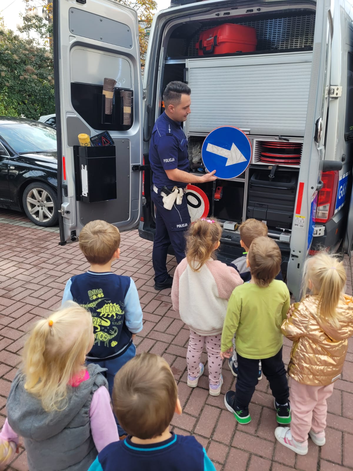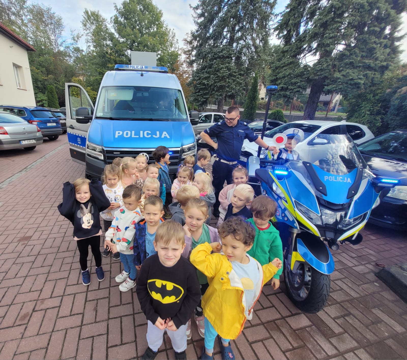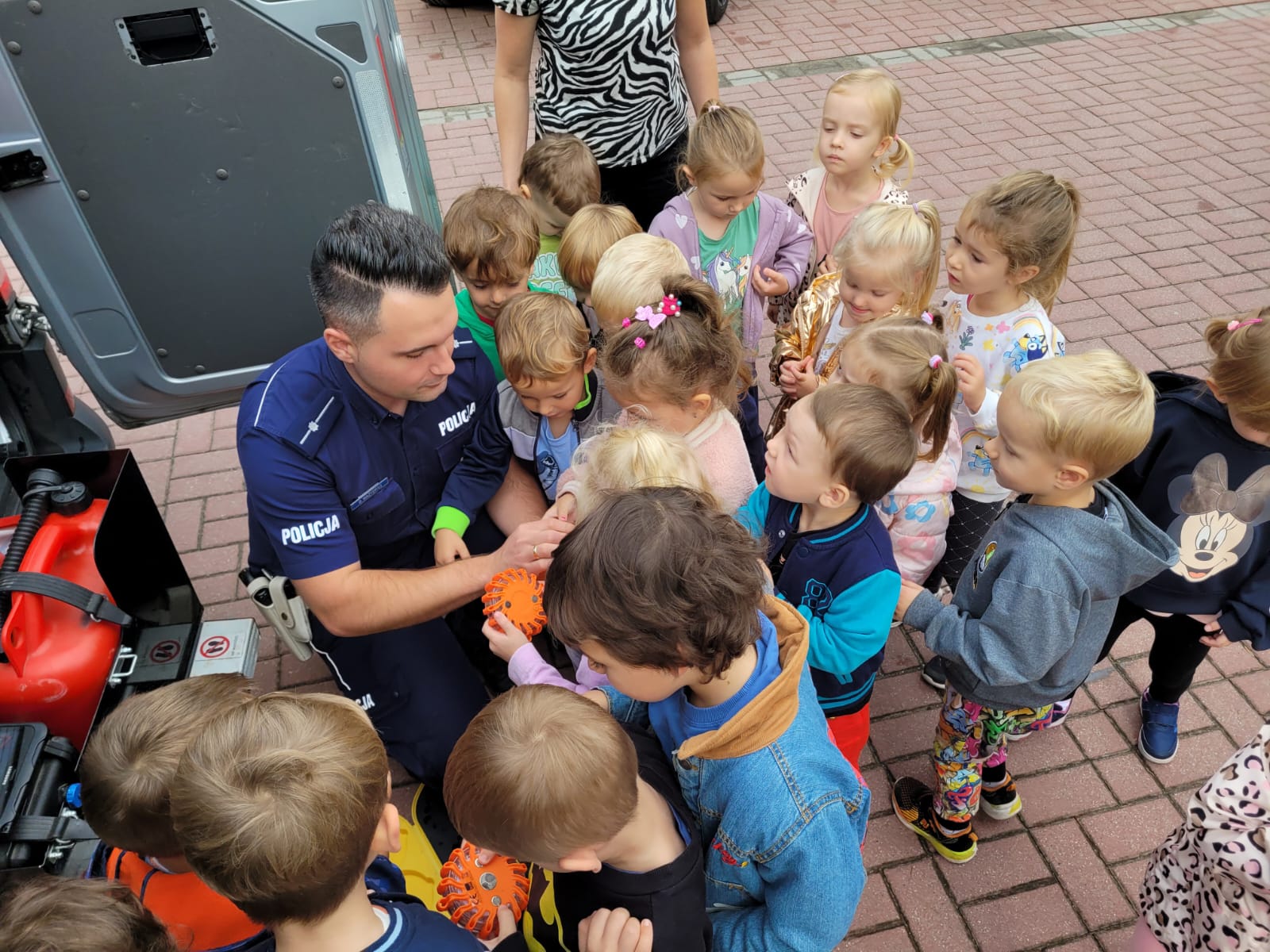 25 września nasza grupa miała okazję uczestniczyć w spotkaniu z Policjantem, na którym dzieci dowiedziały się jak bezpiecznie przechodzić przez jezdnię, a także jak bezpiecznie podróżować samochodem. Dzieci miały okazję zobaczyć policyjną furgonetkę, przymierzyć policyjną czapkę, a także usiąść na policyjnym motocyklu. Teraz każdy „Zajączek” wie, jak być bezpiecznym na drodze!