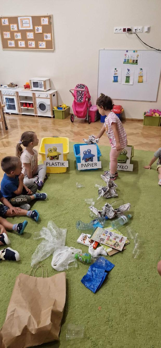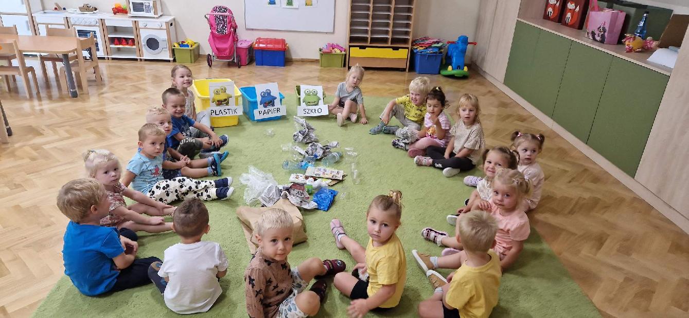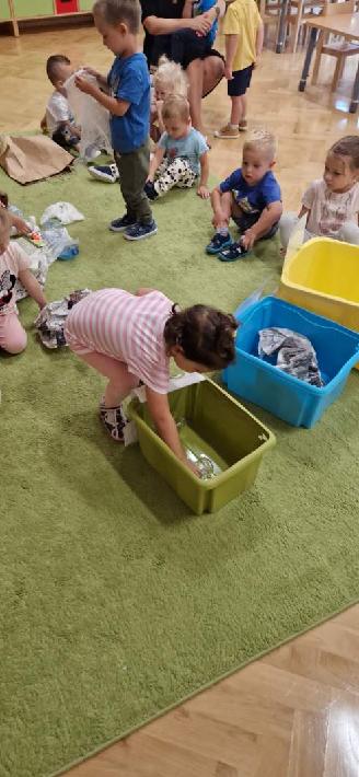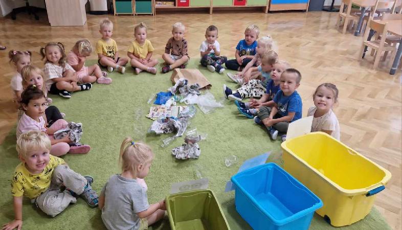 18 września w ramach Akcji Sprzątania Świata „Jeżyki” uczyły się zasad segregacji śmieci, poznawały kolory pojemników oraz próbowały samodzielnie segregować śmieci. Poznanie owych zasad z pewnością przyczyni się do ukształtowania wrażliwości dzieci na potrzeby środowiska naturalnego oraz nawyku dbałości o nie.