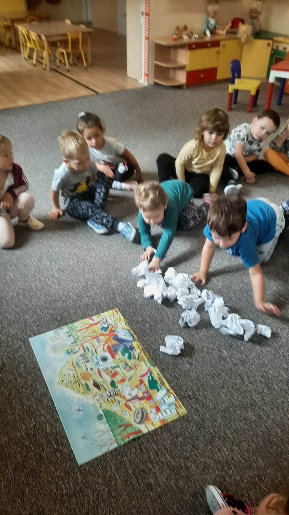 Jak co roku we wrześniu Nasze przedszkole wzięło udział w Akcji Sprzątania Świata, celem tej akcji jest promowanie i nauka zasad dbania o środowisko, a także zasad segregacji odpadów. Udział 3-latków w akcji był symboliczny. Na zajęciach rozmawialiśmy o konieczności przestrzegania porządku w najbliższym otoczeniu.