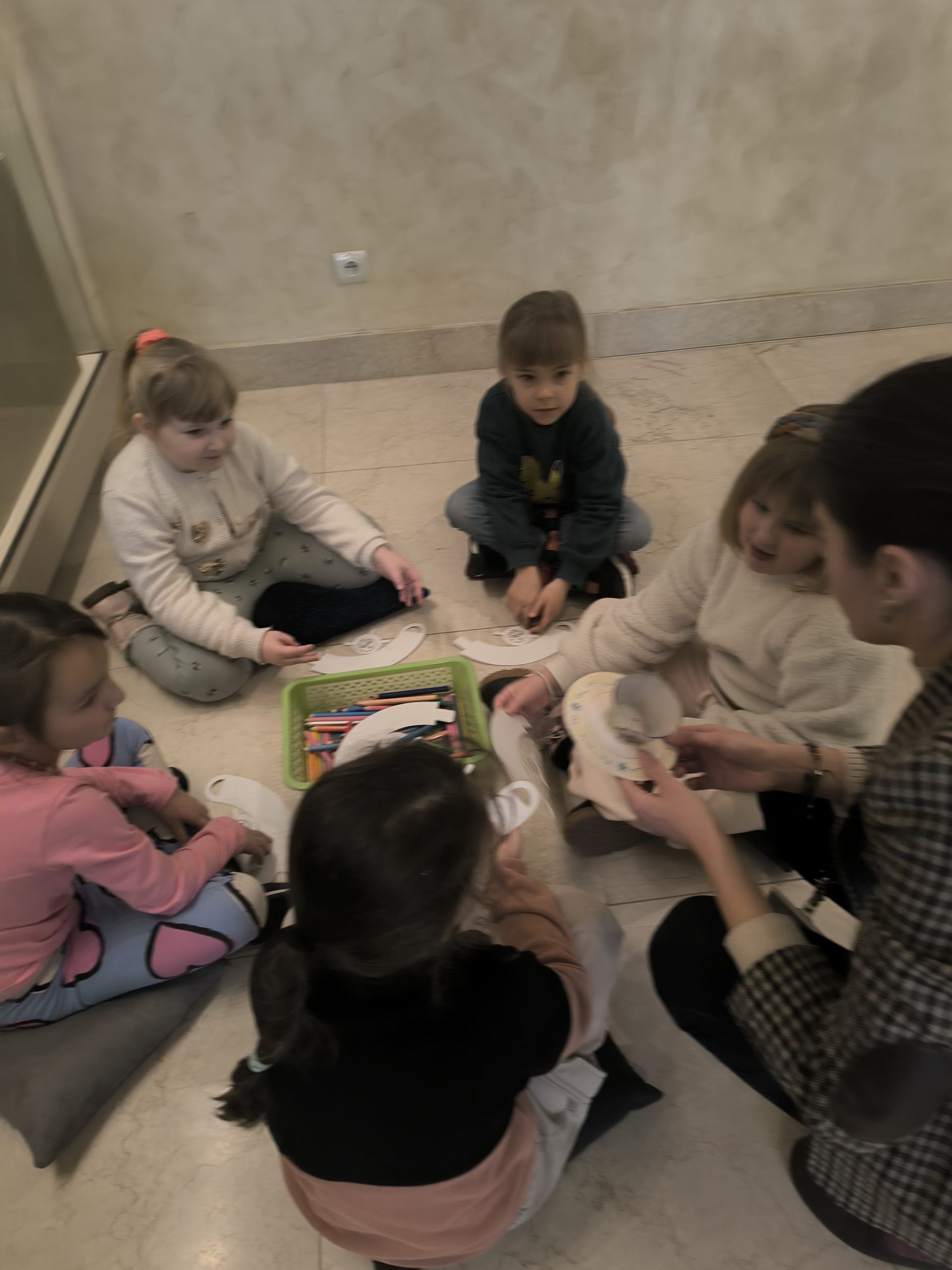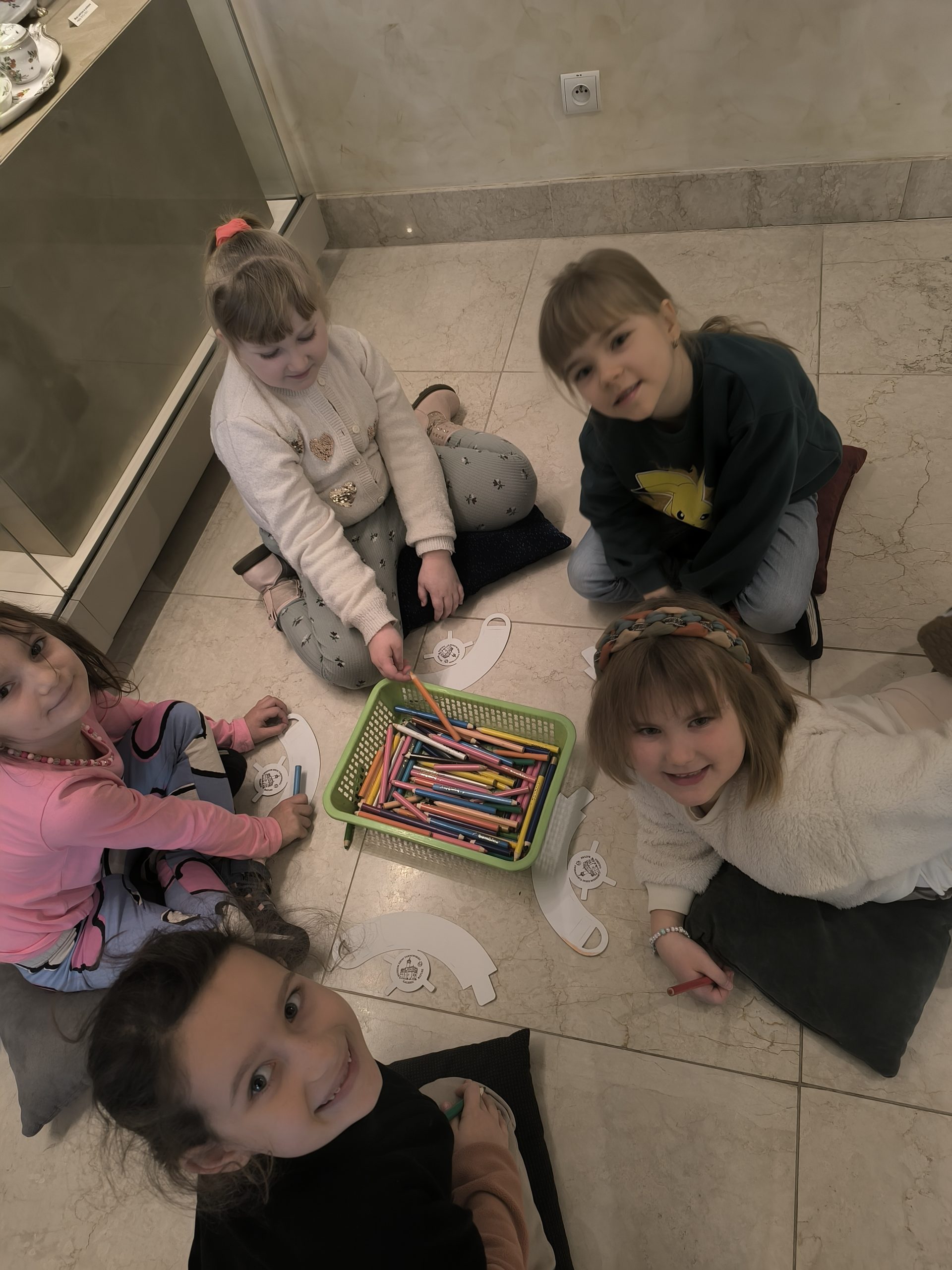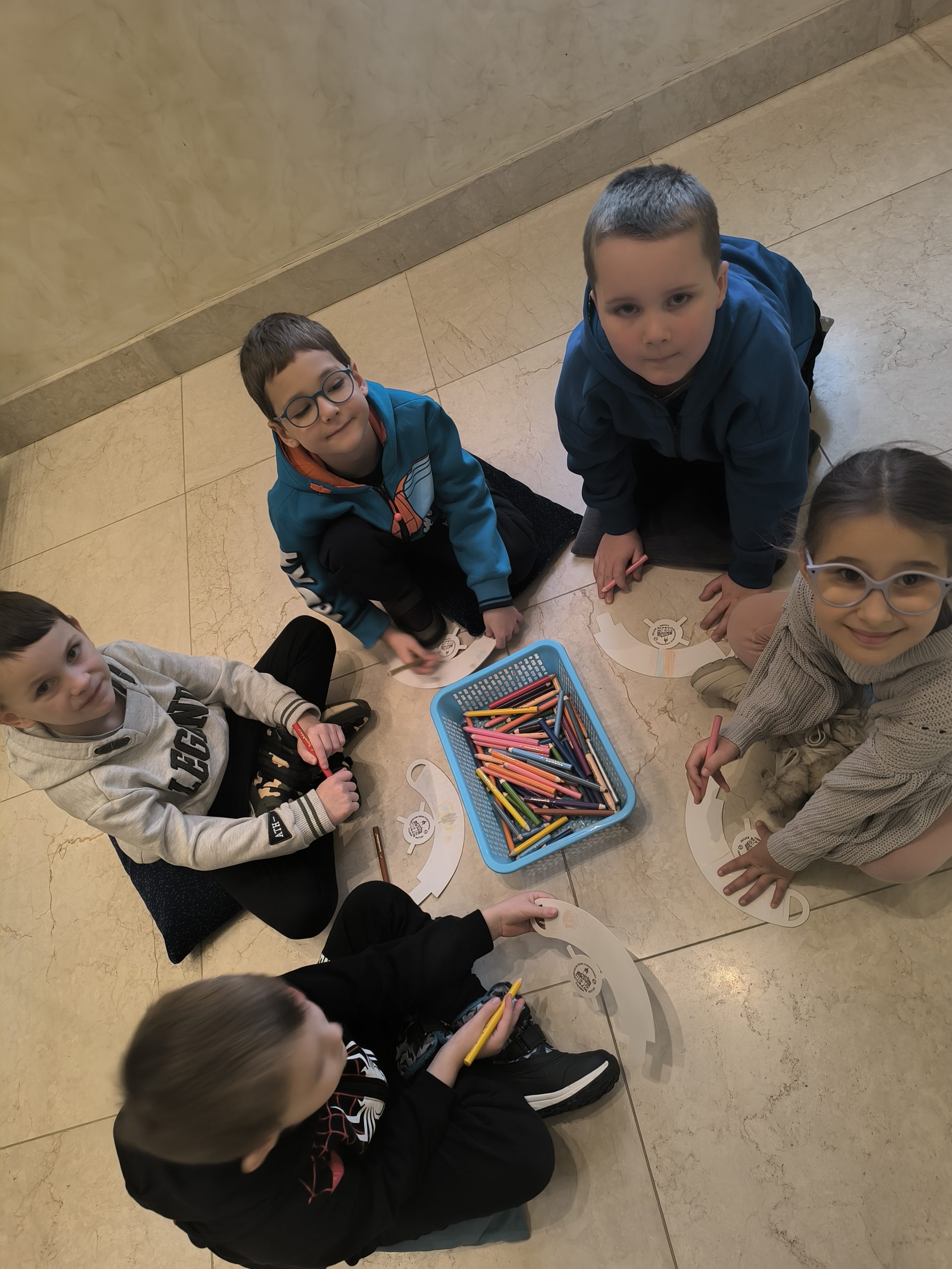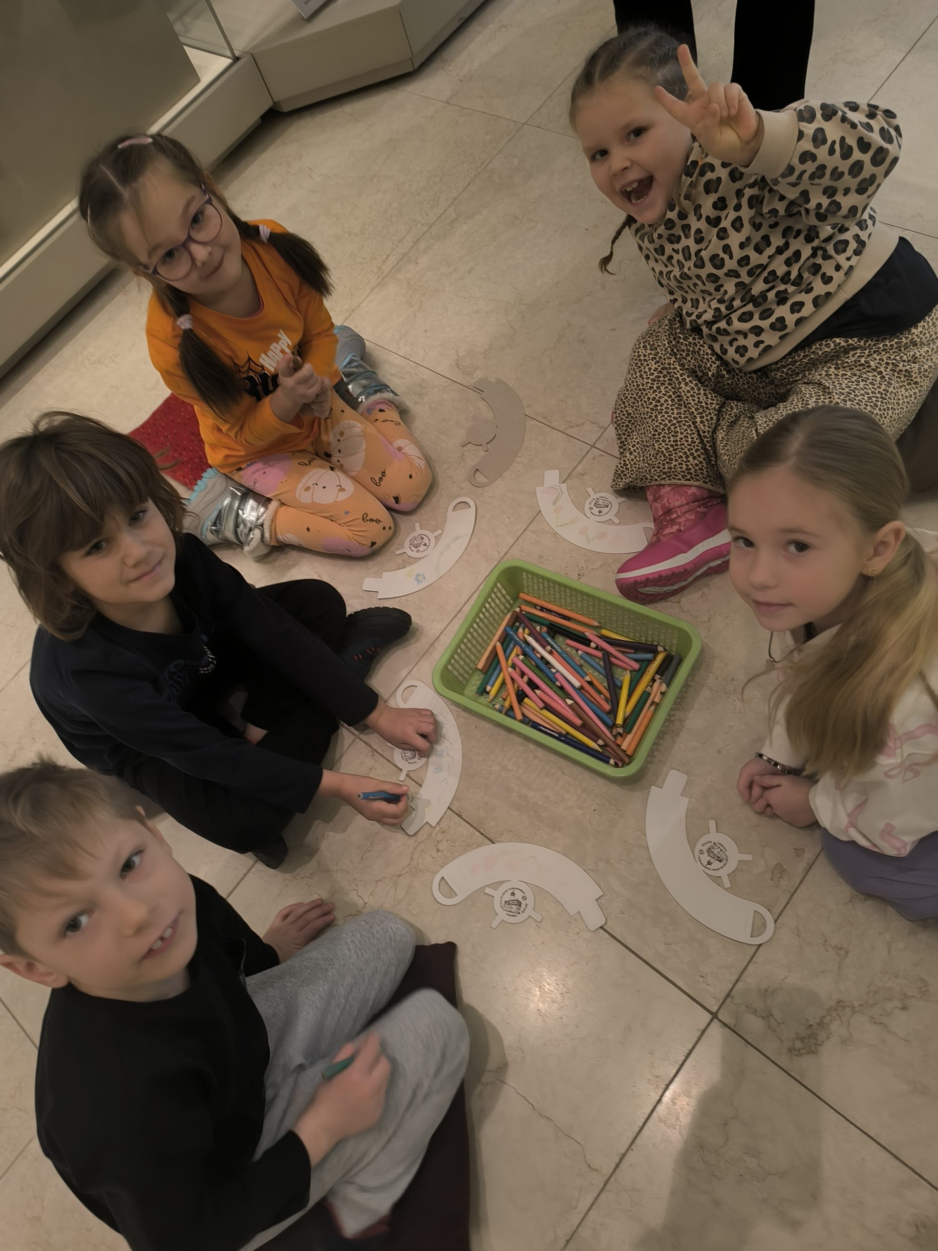 Na zakończenie wycieczki na dzieci czekała twórcza i radosna atrakcja. Każdy uczestnik mógł zaprojektować własny, niepowtarzalny wzór na kubeczku. Dzieci z zaangażowaniem tworzyły kolorowe motywy, inspirując się obejrzanymi zastawami. To było świetne podsumowanie wizyty – połączenie historii, sztuki i kreatywnej zabawy.