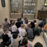 Kolejnym etapem zwiedzania była wystawa zastaw z porcelany. Dzieci usłyszały, że porcelana była kiedyś materiałem luksusowym, sprowadzanym z dalekich krajów, dlatego posiadanie porcelanowej zastawy świadczyło o wysokim statusie rodziny. Przedszkolaki dowiedziały się również, że dawniej bardzo dbano o każdą filiżankę