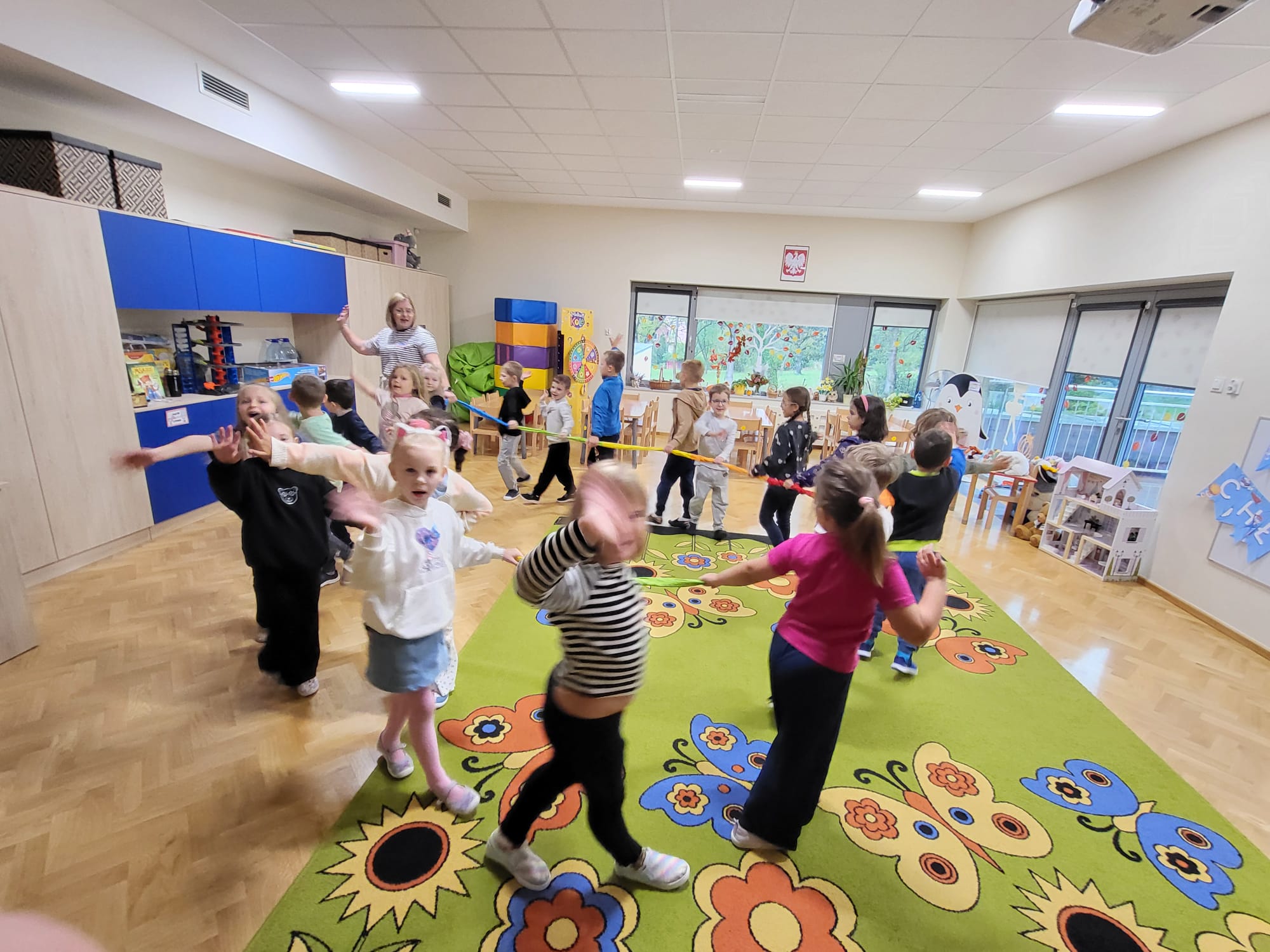 Po części oficjalnej wszyscy bawiliśmy się razem przy wesołej muzyce. Tańce, zabawy ruchowe i wspólny śmiech sprawiły, że ten dzień był naprawdę wyjątkowy. Dzieci spędziły czas w atmosferze radości, życzliwości i koleżeństwa, ucząc się przy tym, jak ważne jest okazywanie sobie nawzajem sympatii i szacunku.