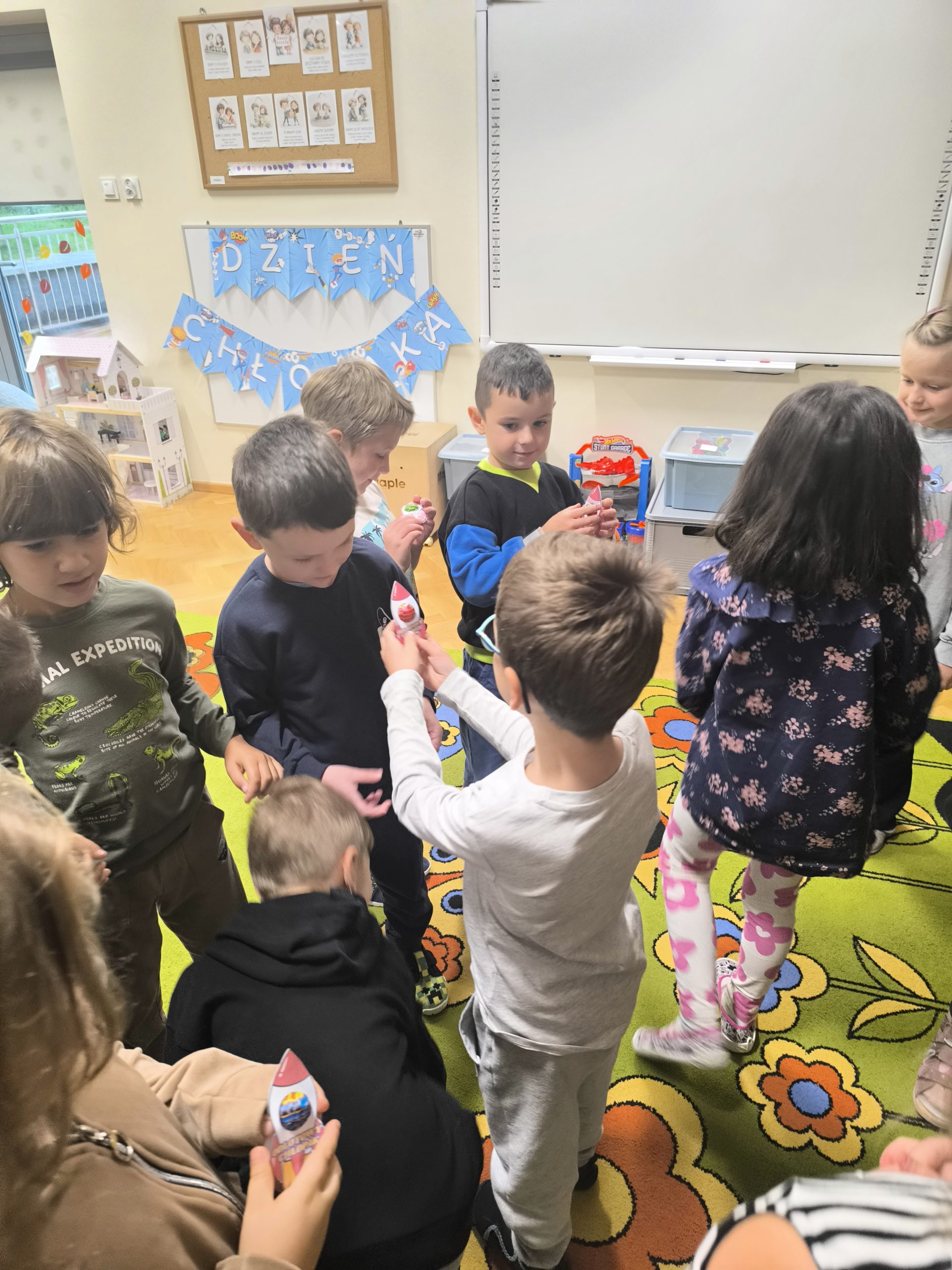 W piątek, 30 września, w naszej grupie obchodziliśmy radosne święto – Dzień Chłopaka. Z tej okazji dziewczynki przygotowały dla swoich kolegów miłą niespodziankę. Najpierw z wielkim zaangażowaniem odśpiewały uroczyste Sto lat, a następnie złożyły chłopcom serdeczne życzenia. Nie zabrakło też upominków – każdy z chłopców otrzymał drobny prezent, który wywołał uśmiech na twarzy.
