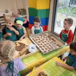 W ramach przygotowań do Świąt Bożego Narodzenia dzieci wspólnie przygotowały pierniki. Z dużym zaangażowaniem wałkowały ciasto, wykrawały świąteczne kształty, a następnie dekorowały je kolorowym lukrem i posypkami. Zajęcia sprawiły dzieciom wiele radości i wprowadziły wszystkich w świąteczny nastrój.