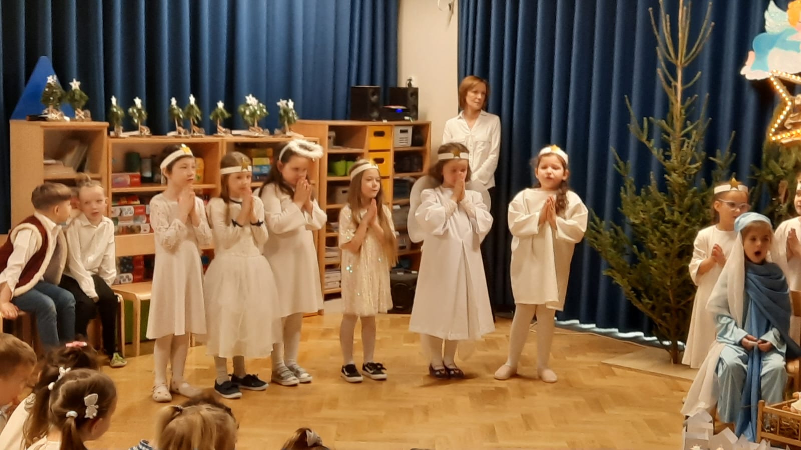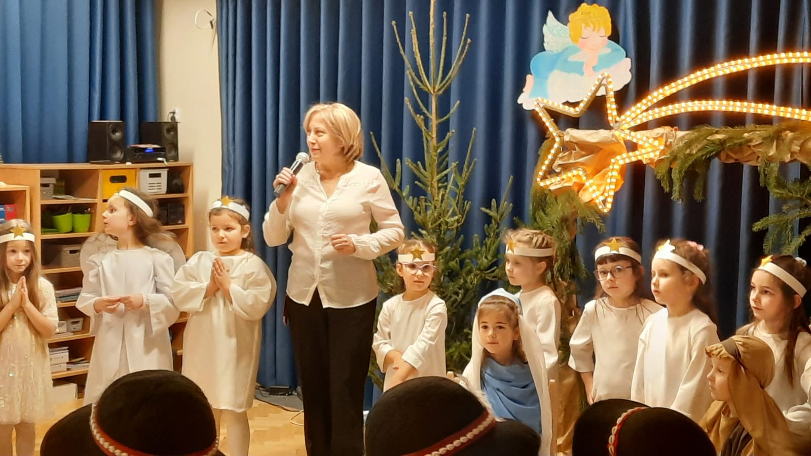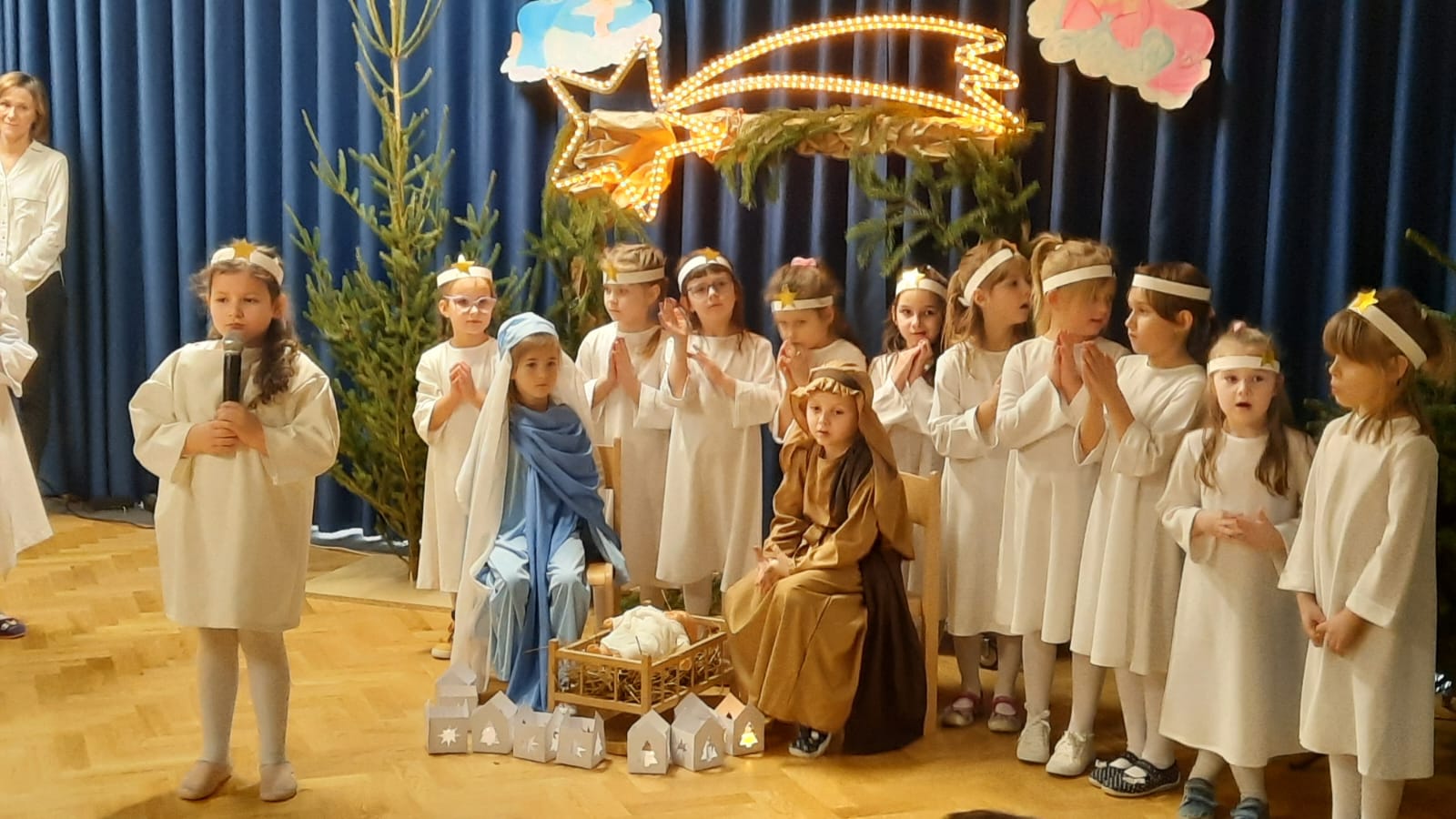 W czwartek 21 grudnia 2023 r. w naszym przedszkolu jak co roku odbyły się długo wyczekiwane Jasełka i przedszkolna Wigilia. W dobrym przeżyciu Bożego Narodzenia pomaga świadome pielęgnowanie tradycji i zwyczajów świątecznych. Jednym z nich są Jasełka, czyli przedstawienie o Bożym Narodzeniu, którego treścią jest historia narodzenia Pana Jezusa. Z tej okazji dzieci z grupy V i VI przygotowały Przedstawienie Jasełkowe, które wprowadziło nas w nastrój oczekiwania na wyjątkowe, niecodzienne wydarzenie.