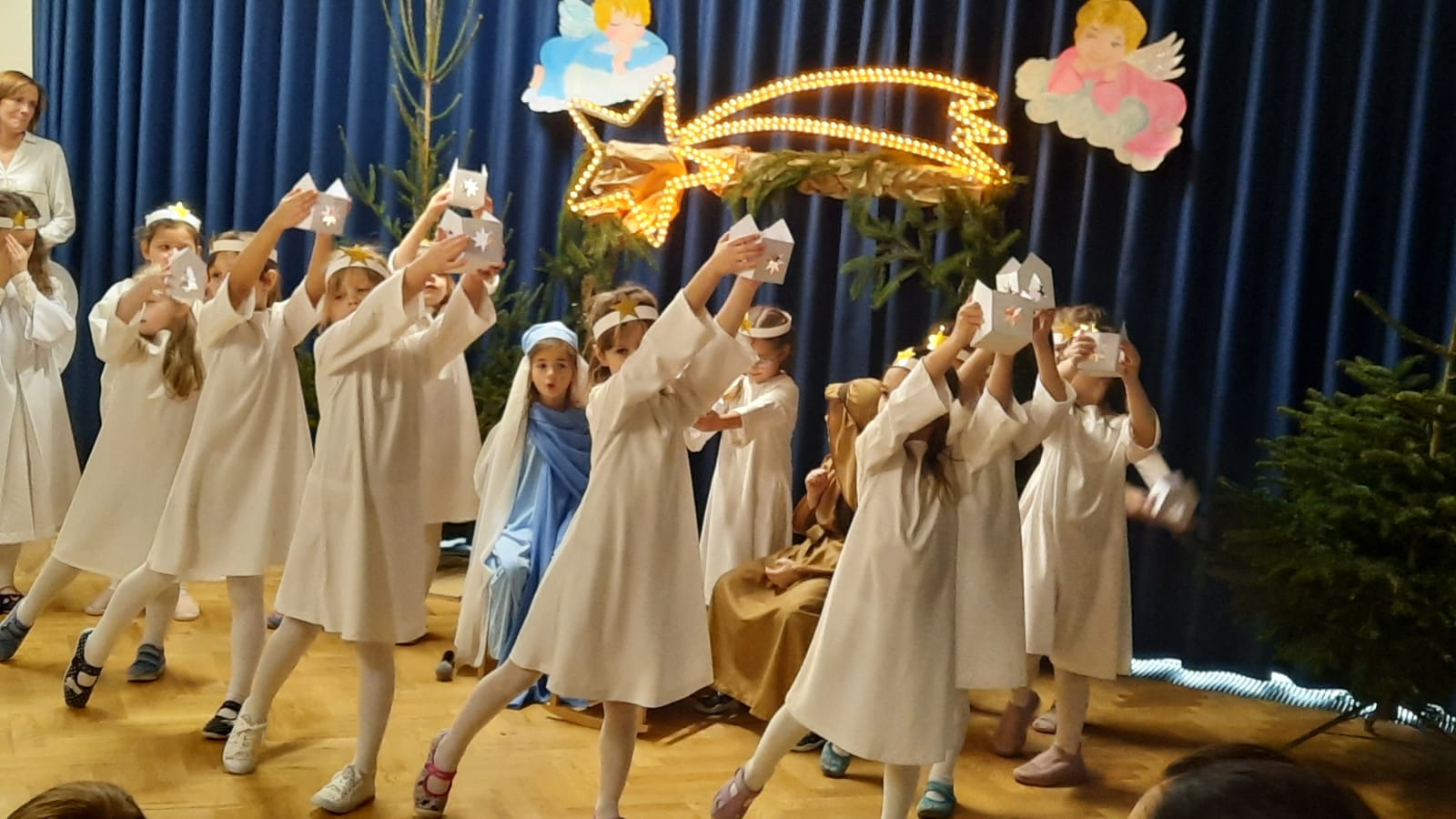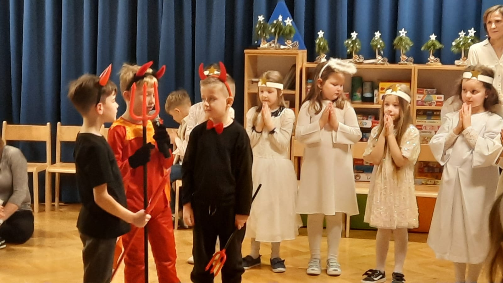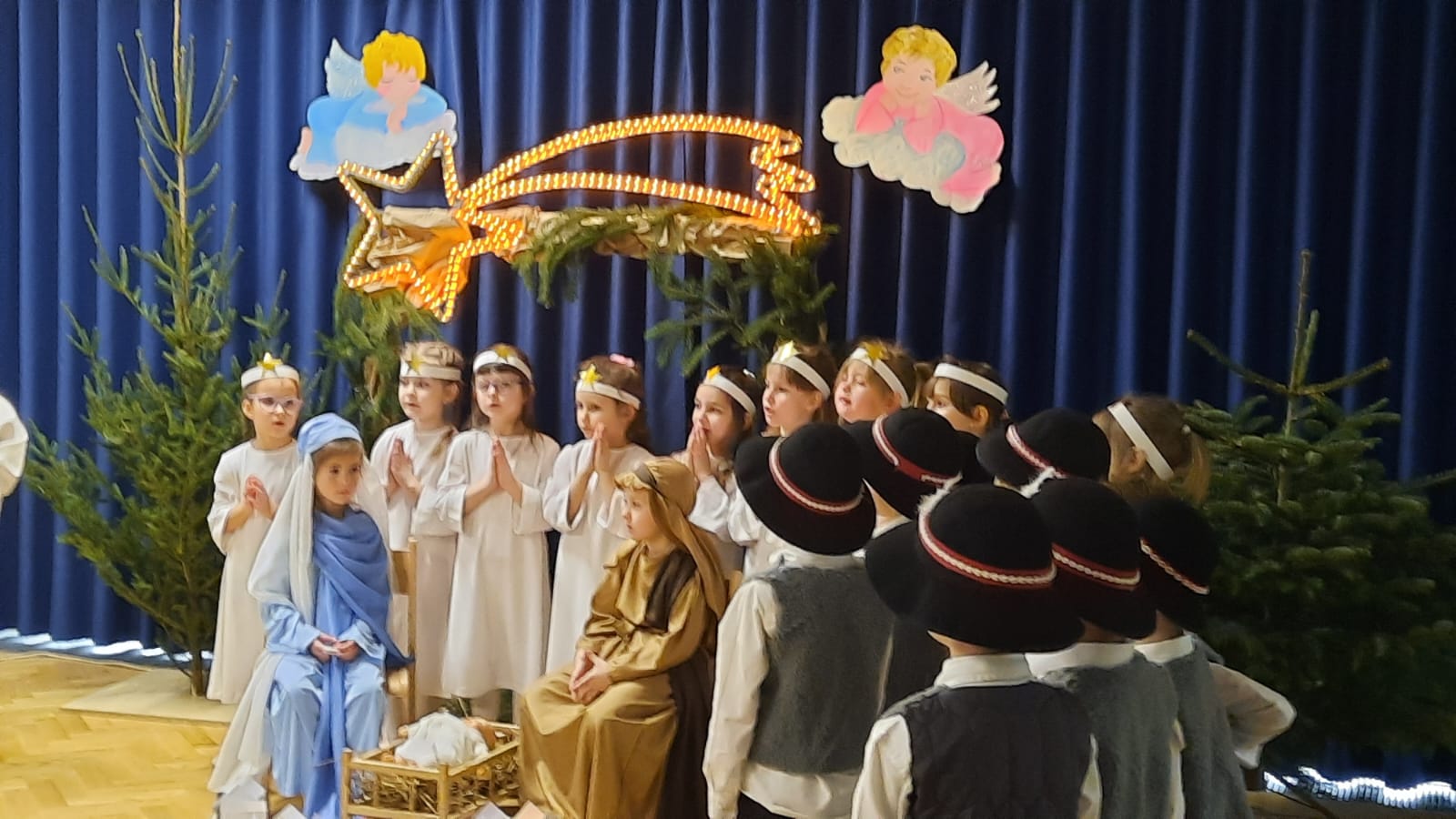 W czwartek 21 grudnia 2023 r. w naszym przedszkolu jak co roku odbyły się długo wyczekiwane Jasełka i przedszkolna Wigilia. W dobrym przeżyciu Bożego Narodzenia pomaga świadome pielęgnowanie tradycji i zwyczajów świątecznych. Jednym z nich są Jasełka, czyli przedstawienie o Bożym Narodzeniu, którego treścią jest historia narodzenia Pana Jezusa. Z tej okazji dzieci z grupy V i VI przygotowały Przedstawienie Jasełkowe, które wprowadziło nas w nastrój oczekiwania na wyjątkowe, niecodzienne wydarzenie.