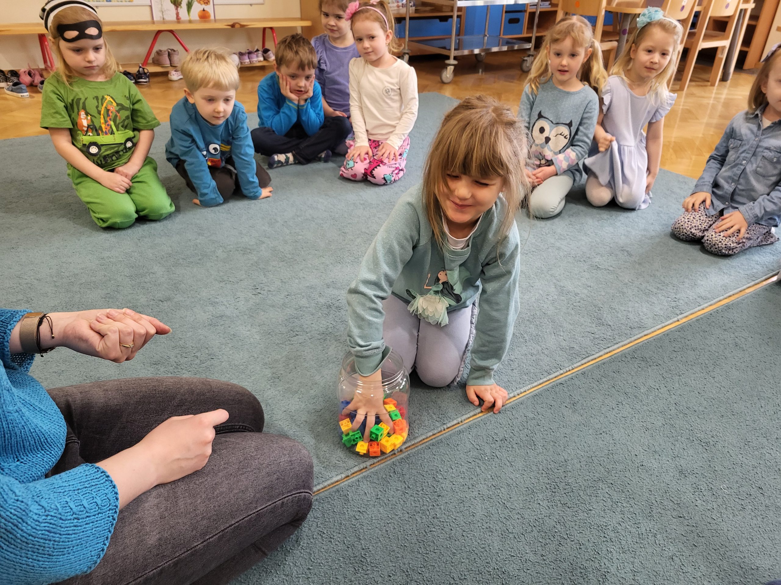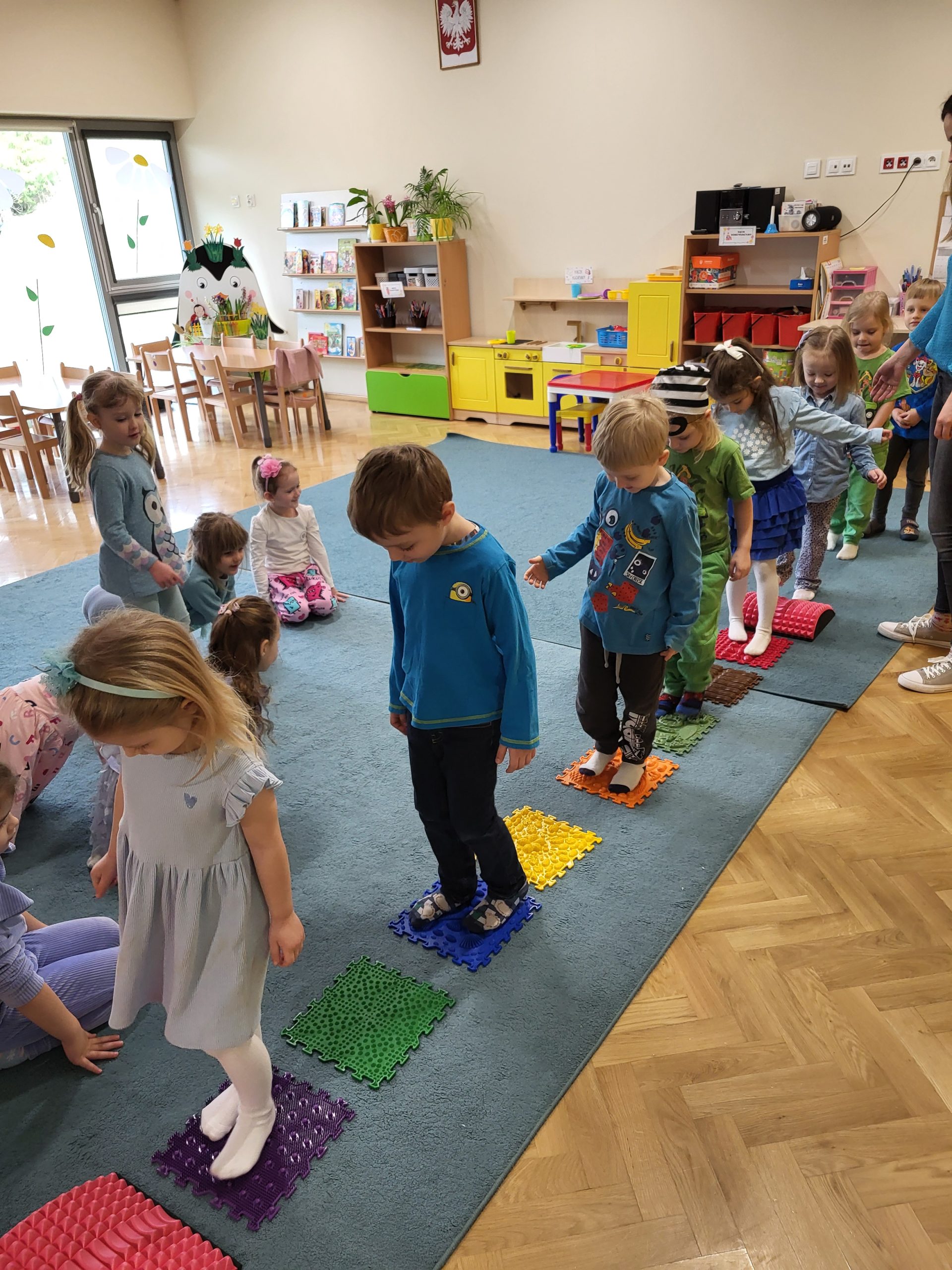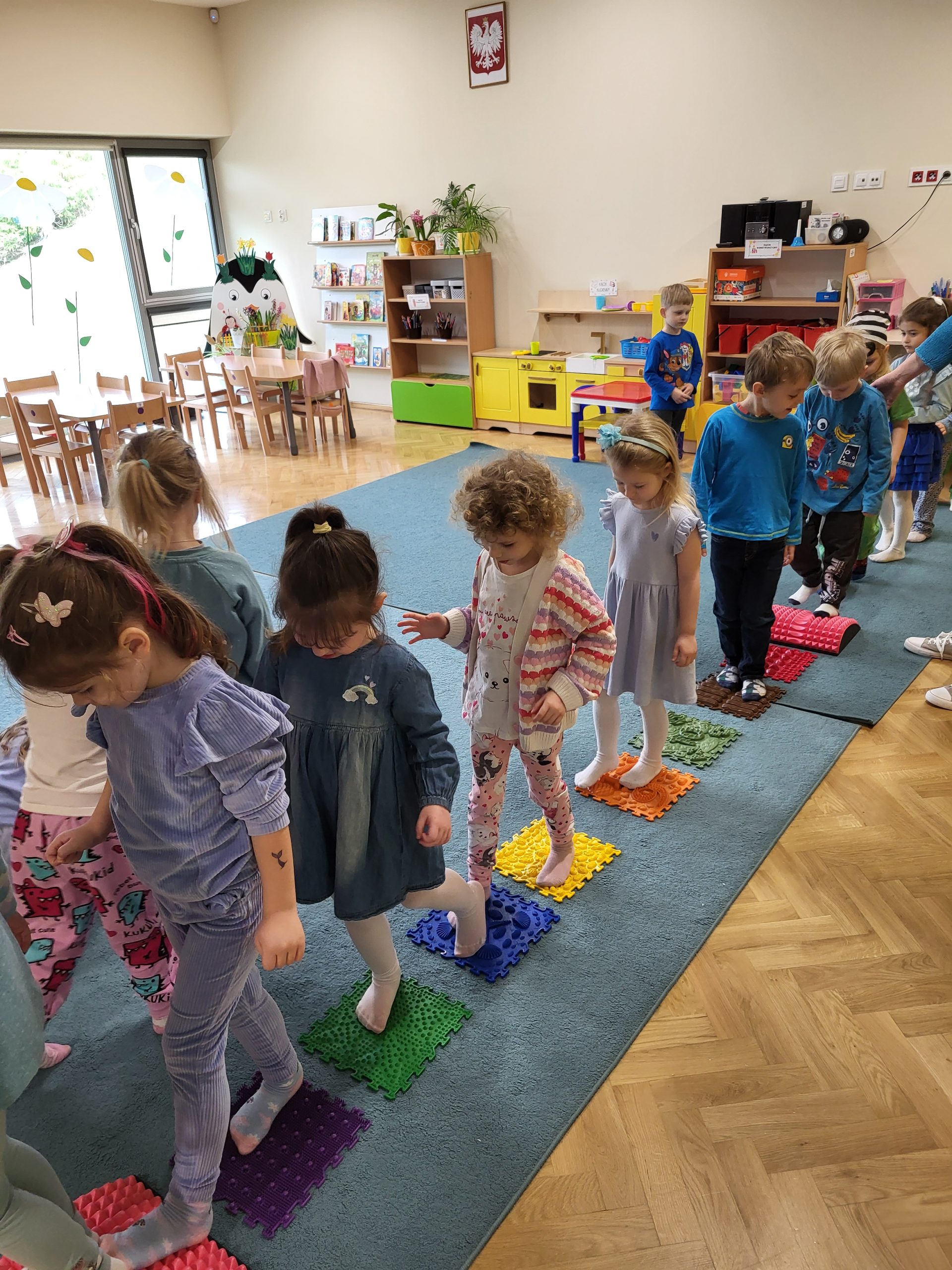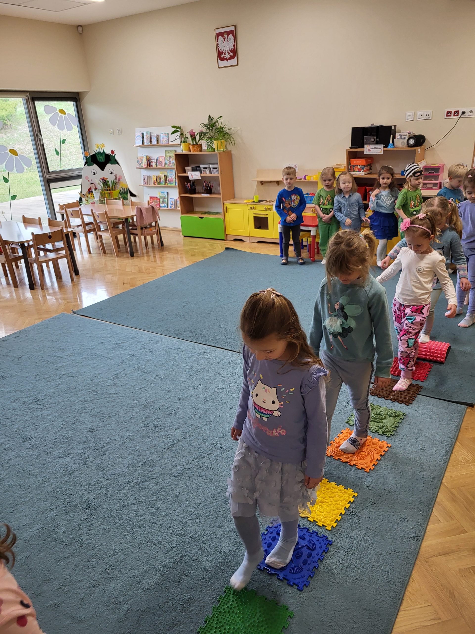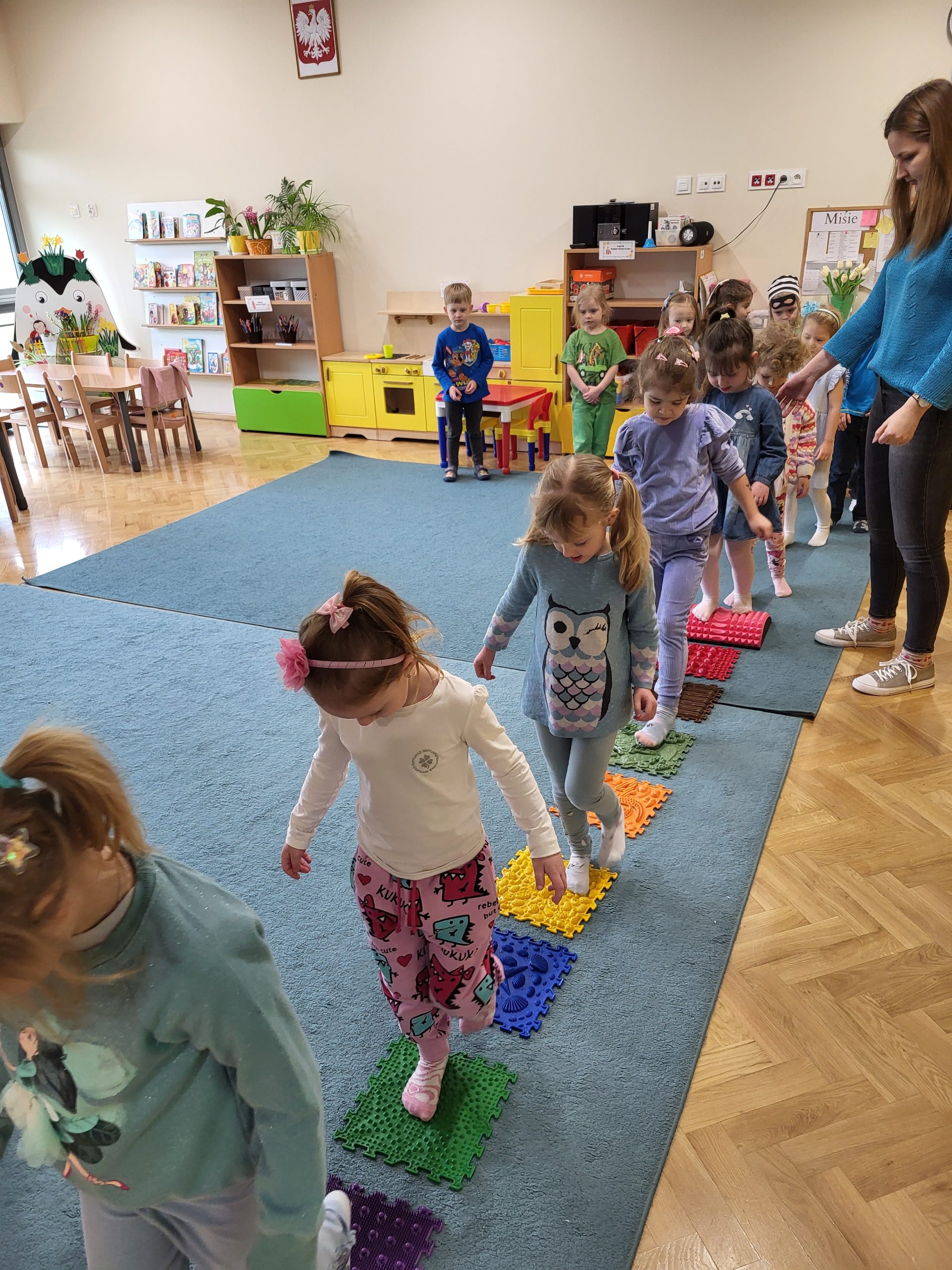 Światowy Dzień Świadomości Autyzmu został ustanowiony przez ONZ w 2007 roku, aby zwiększyć wiedzę o autyzmie i promować akceptację osób w spektrum. Autyzm to sposób, w jaki niektóre dzieci i dorośli odbierają świat. Mogą widzieć, słyszeć i czuć rzeczy inaczej niż inni. Każda osoba z autyzmem jest wyjątkowa. Z racji tego dnia 31 marca w naszym przedszkolu odbyły się zajęcia, których celem było zapoznanie dzieci z pojęciem „autyzm”, stymulacja sensoryczna i uświadomienie dzieciom, że każdy może inaczej odczuwać bodźce dotykowe. Podczas zajęć dzieci zapoznały się z filmem „Jaś i niebieskie motyle”. Miały możliwość przejścia po ścieżce sensorycznej i szukania kuleczek w klockach, co dostarczyło dzieciom niezapomnianych wrażeń dotykowych.