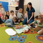 Do naszego przedszkola została zaproszona Pani położna Agnieszka, mama Emilki i Frania, która opowiedziała i pokazała dzieciom, jak dba się o noworodki od pierwszych chwil życia, w tym o wcześniaki. Dowiedzieliśmy się jak zmierzyć, zważyć, ubrać noworodka, jak zakłada się pampersa, karmi oraz jak podaje się leki najmłodszym pacjentom. Dzieci z ogromnym zainteresowaniem obserwowały i samodzielnie wykonywały wszystkie czynności, zadawały mnóstwo pytań i chętnie brały udział w pokazie. Przedszkolaki dowiedziały się, jak ważna jest troska o najmniejszych pacjentów.