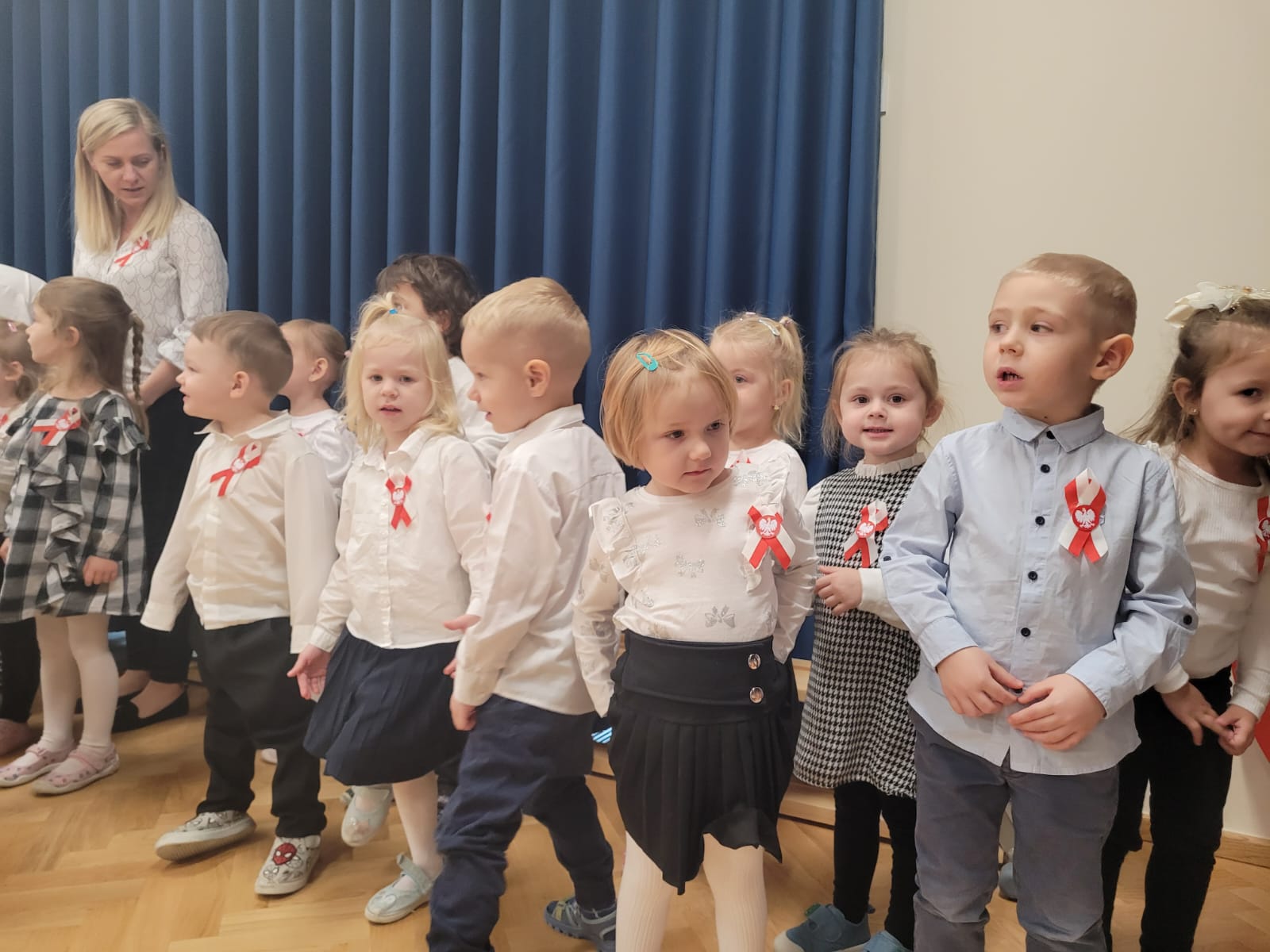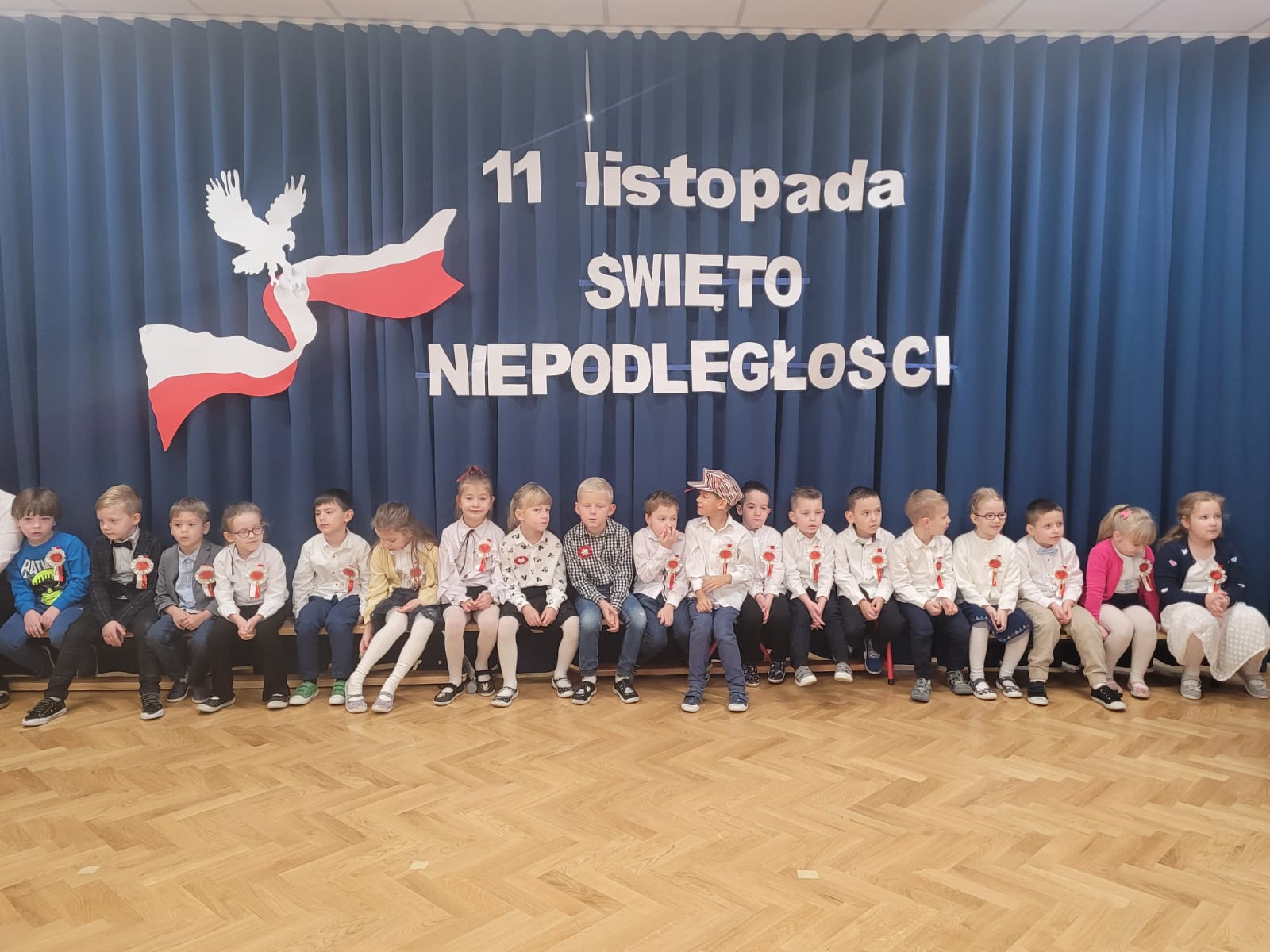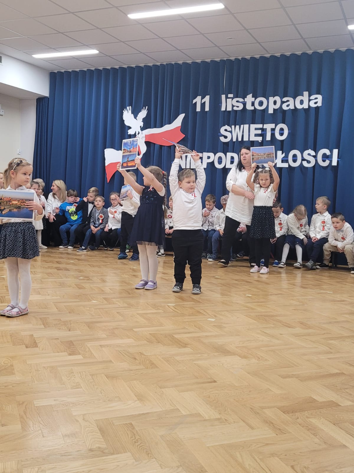 Z okazji obchodów 106 rocznicy odzyskania przez Polskę Niepodległości, w dniu 08 listopada 2024 r. odbyła się w naszym przedszkolu uroczysta akademia, przygotowana przez dzieci z grupy „Sówek” i „Wiewiórek”. Przeżywając lekcję patriotyzmu i miłości do Ojczyzny, pragnęliśmy w ten sposób uczcić Święto Niepodległej Polski. Przedszkolaki z dumą zaprezentowały wiersze patriotyczne, przedstawiły rys historyczny minionych wydarzeń, a także zaśpiewały wzruszające pieśni, które odzwierciedlały wagę tego wyjątkowego Święta Wszystkich Polaków. Ważnym i uroczystym akcentem akademii było wspólne wykonanie Hymnu Polski. Nie obyło się bez ogromnego wzruszenia.