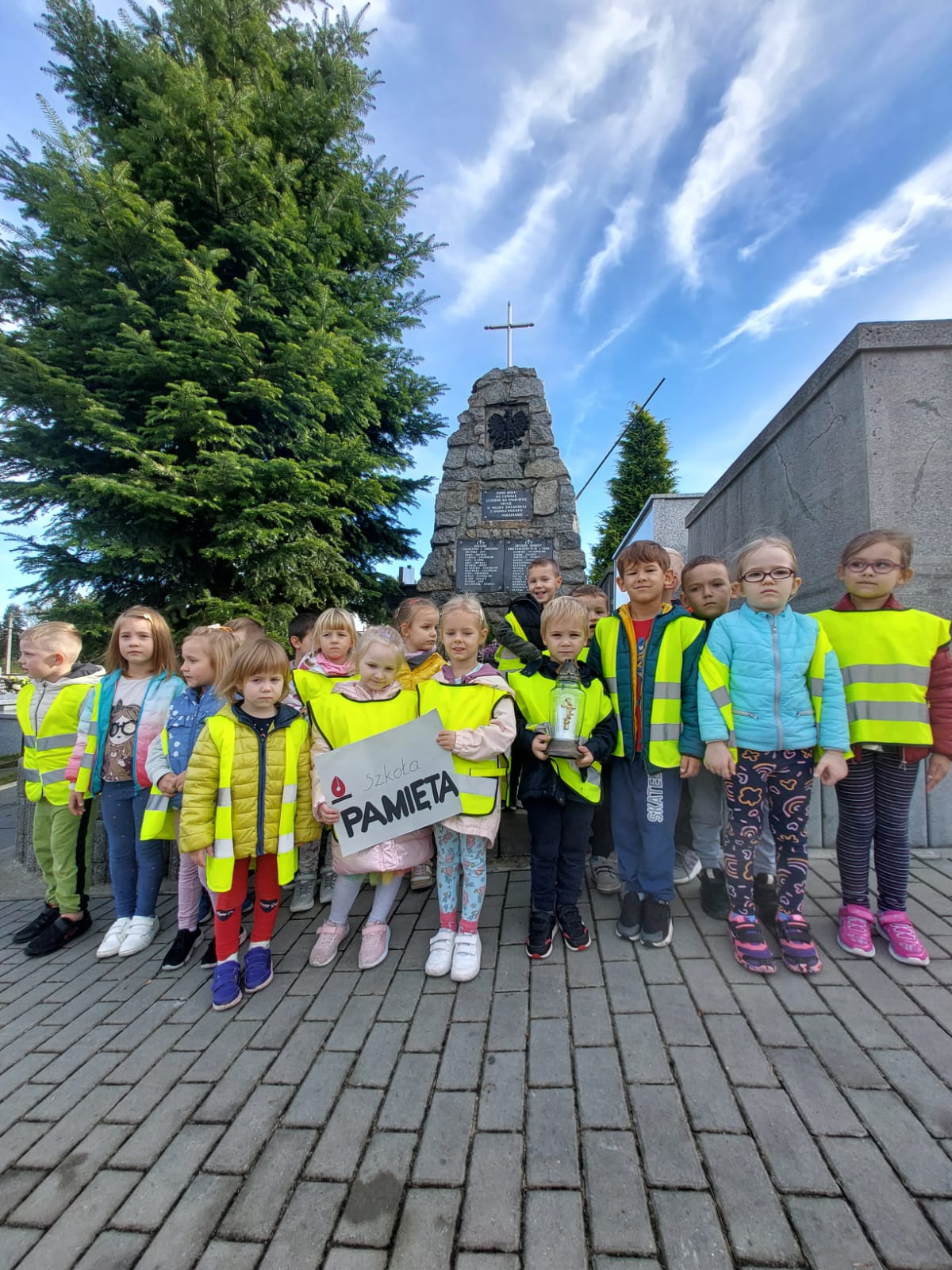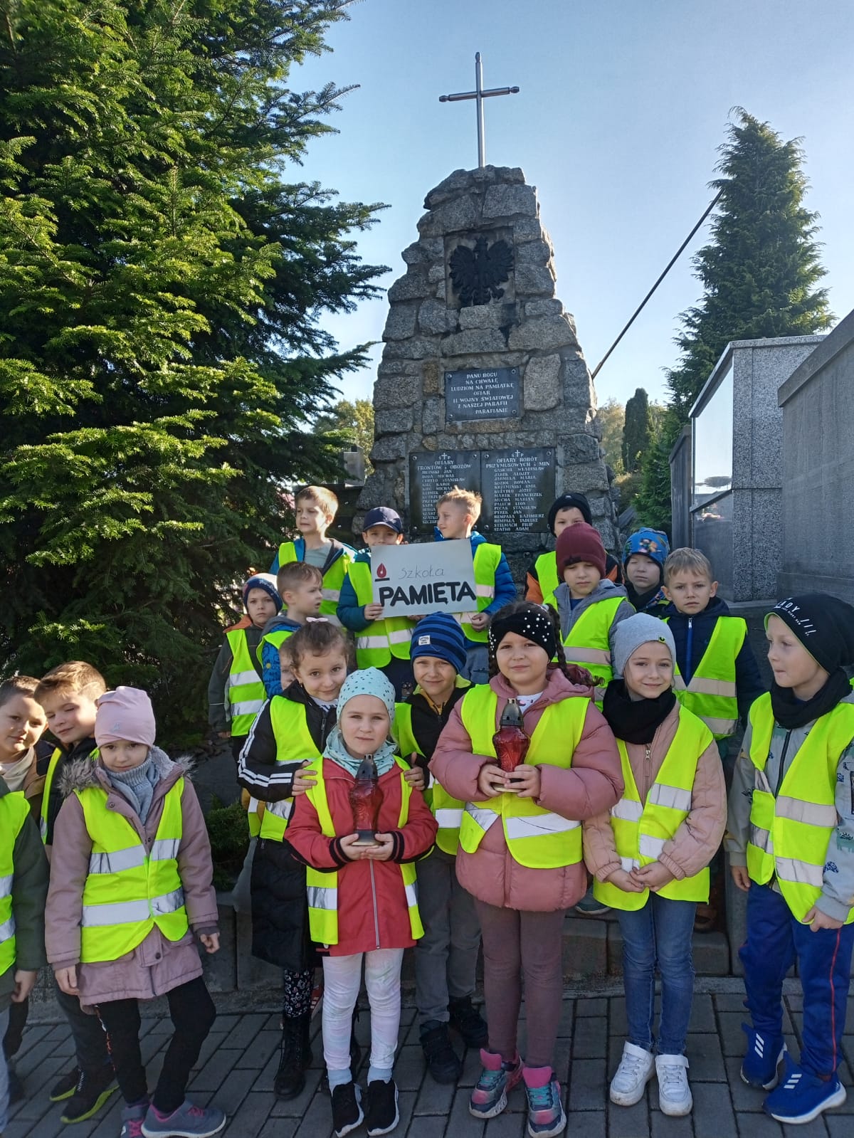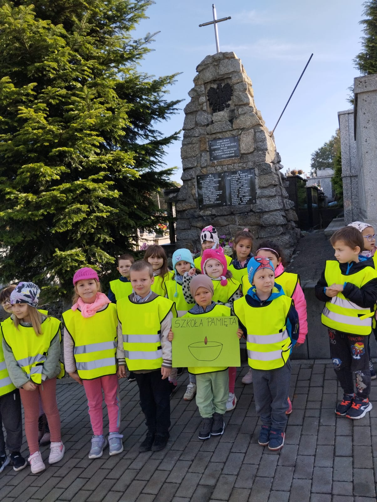 Nasze przedszkole po raz kolejny wzięło udział w akcji Ministerstwa Edukacji i Nauki „Szkoła pamięta”. Podobnie jak w ubiegłych latach przedszkolaki oddały hołd tym, którzy polegli w obronie Ojczyzny. Akcja odbyła się przed Uroczystością Wszystkich Świętych i Dniem Zadusznym, kiedy w szczególny sposób pamiętamy o zmarłych. Dzieci odwiedziły lokalne miejsca pamięci, m.in.: Cmentarz Parafialny w Krzyżu. Dzieci na cmentarzu porządkowały groby nieznanych żołnierzy oraz zapalały na nich znicze.